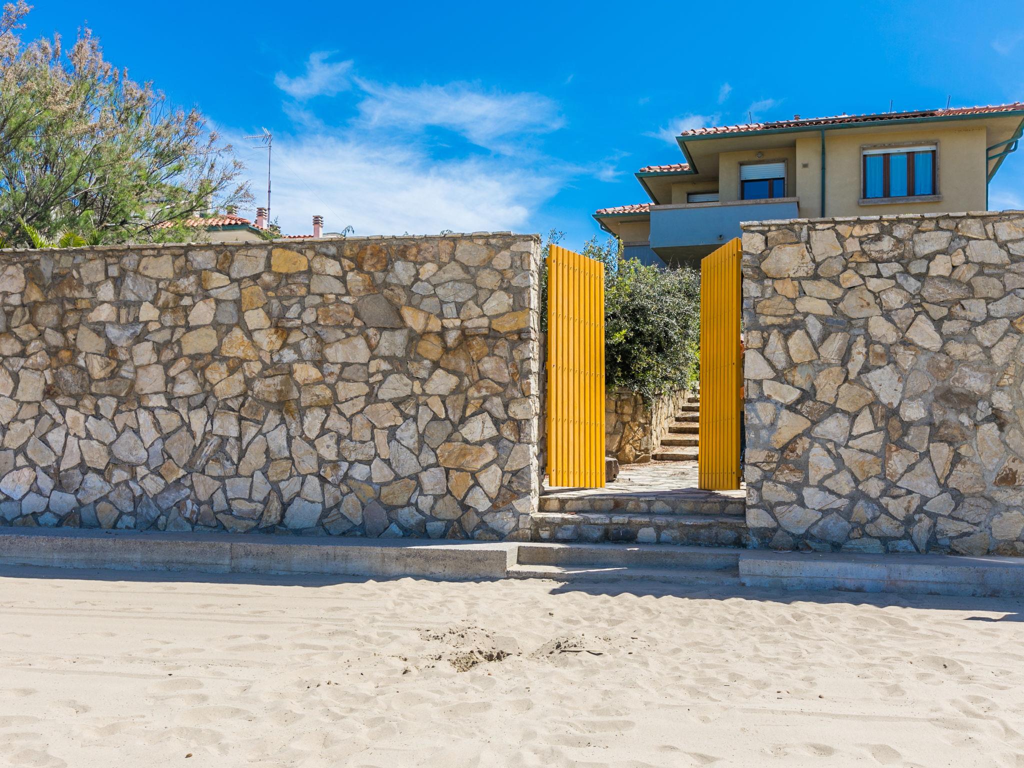 Unique location directly on the fine sandy beach with direct access to the sea, south of San Vincenzo. Apartment house, 2 storeys. 5 apartments in the property. On the outskirts, 1.5 km from the centre of San Vincenzo, in a central position in the residential district, 20 m from the sea, direct access to the beach. Public parking 50 m on the road. Shop 500 m, supermarket 1.3 km, restaurant 400 m, café 300 m, pedestrian zone 1.5 km, bus stop "Bagno Venere W" 200 m, railway station "San Vincenzo" 2 km, sandy beach 20 m, thermal baths "Calidario" 10 km. Marina 2 km. Nearby attractions: Suvereto 18 km, Piombino 21 km, Grosseto 75 km, Siena 100 km. Parasol and 2 loungers included in the beach resort about 50m away.