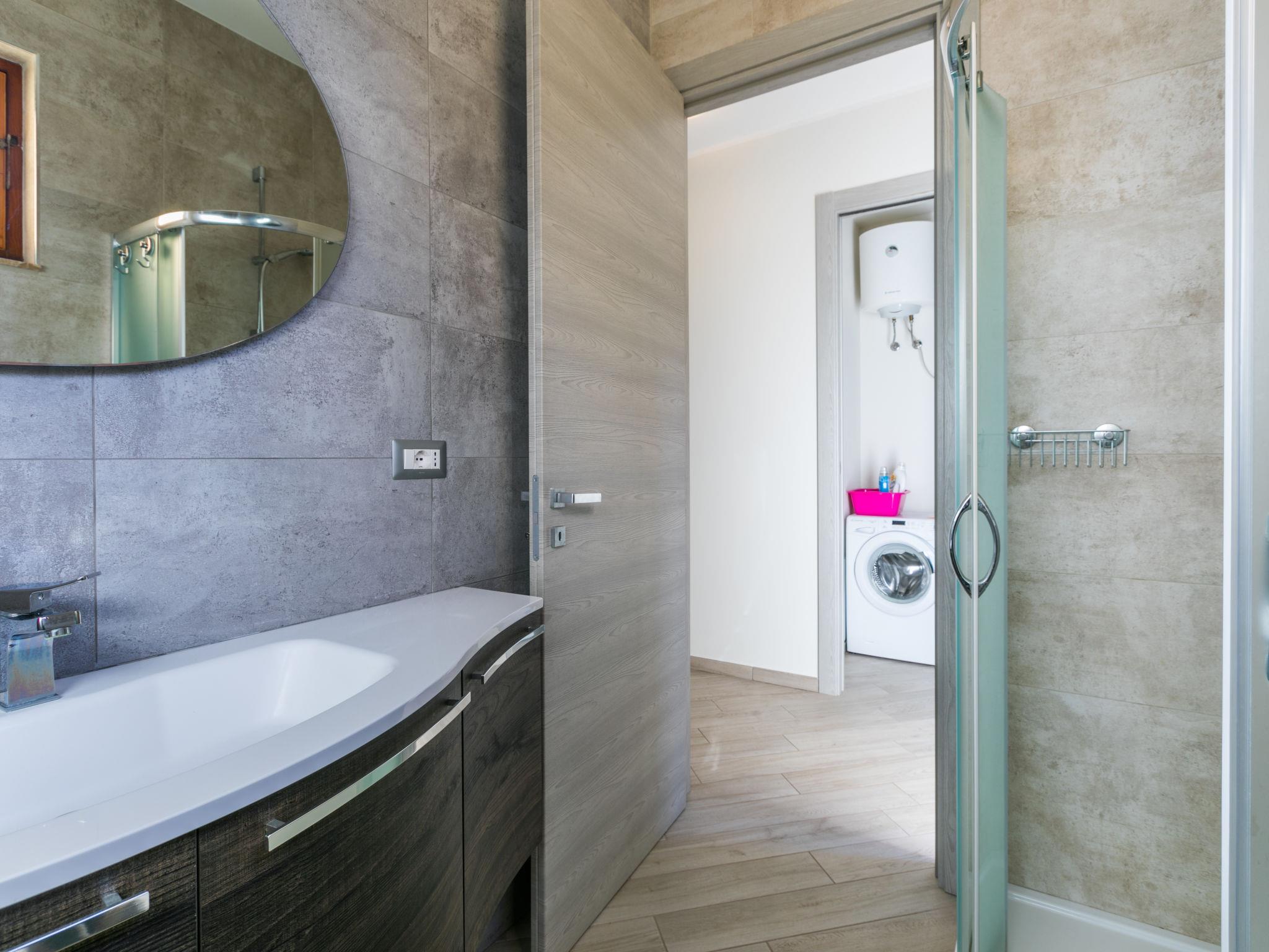 "Sole e mare", 3-room apartment 70 m2 on 2nd floor. Fully renovated, beautiful and modern furnishings: 2nd upper floor: (exterior staircase) living/dining room. Exit to the balcony. 2 rooms, each room with 1 bed, 1 double bed and air conditioning. Open kitchen (oven, dishwasher, 4 induction hot plates, toaster, kettle, electric coffee machine) with dining table and satellite TV. Shower, shower/bidet/WC. Electric heating, air-conditioning. Balcony 12 m2, small balcony 8 m2. Balcony furniture. Facilities: washing machine, iron, hair dryer. Internet (WiFi, free). Parking (fenced). Please note: private entrance, fire extinguisher, no lift. IT049018C2QLNM2UF3