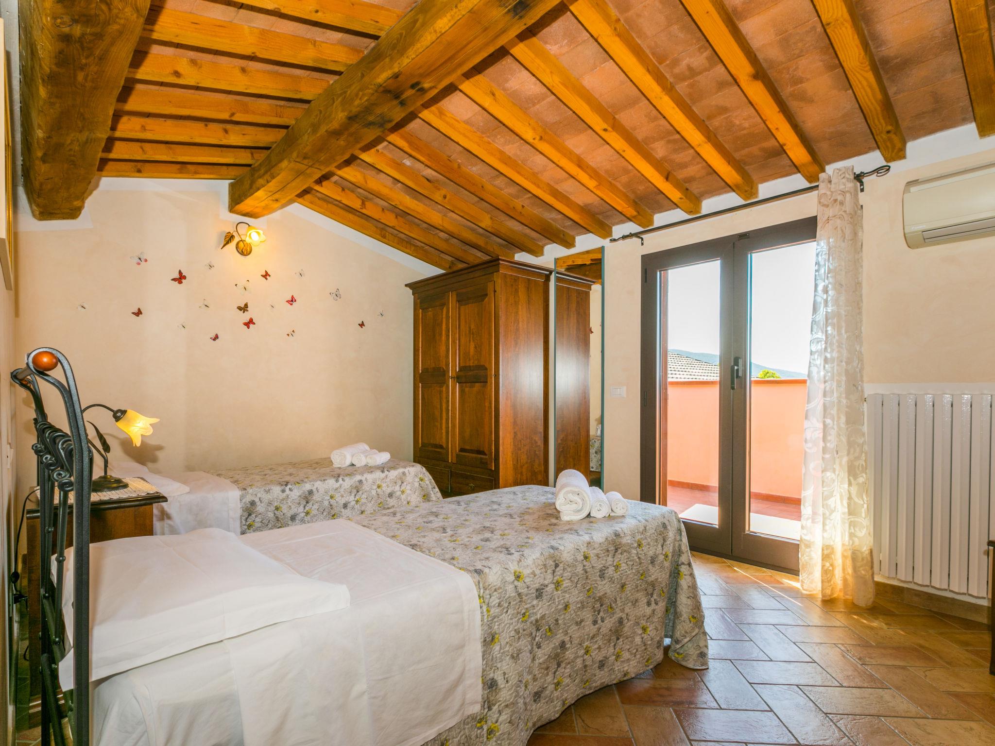 4-room terraced house 80 m2 on 2 levels. Rustic furnishings: 1 room with 1 french bed (160 cm, length 180 cm). Kitchen-/living room (oven, dishwasher, 4 gas rings, electric coffee machine) with dining table and satellite TV. Exit to the loggia. Shower/WC. Upper floor: 1 room with 2 beds (80 cm, length 180 cm). Exit to the terrace. 1 children's room with sloping ceilings, ceiling height 40 - 150 cm with 2 beds. Shower/WC. Gas heating (extra), air-conditioning (extra). Terrace. Terrace furniture, covered balcony. Panoramic view of the sea. Facilities: safe, baby cot. Internet (WiFi, free). IT049018B5E2AETKNN