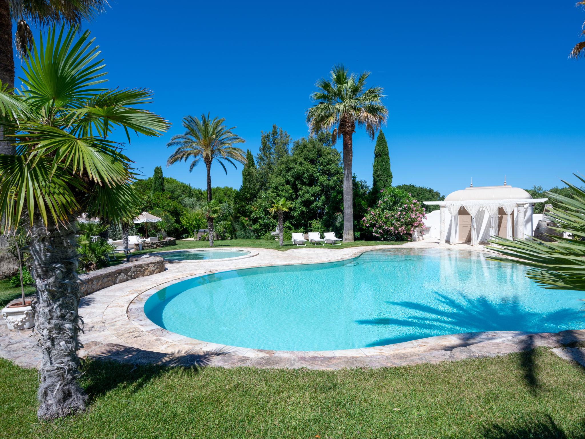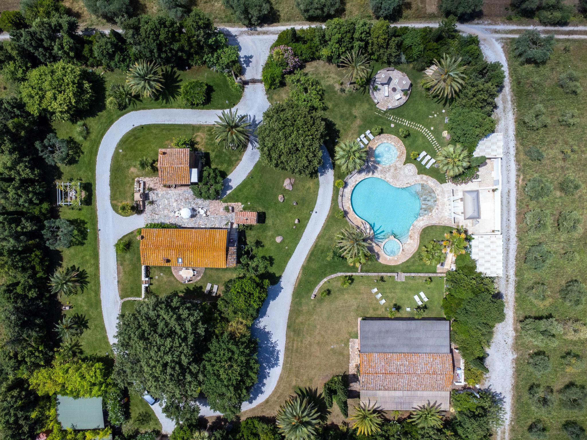 9-room villa. Very comfortable and tasteful furnishings: living/sleeping room with 1 double bed, dining table, kitchen corner, satellite TV, flat screen, electric heating and air conditioning. Exit to the garden. Living room with open-hearth fireplace, kitchen corner and satellite TV. Exit to the garden. Living/sleeping room with 1 double bed, shower/bidet/WC, satellite TV, electric heating and air conditioning. Exit to the garden. Large living/dining room with dining table, kitchen corner, shower/bidet/WC, satellite TV, flat screen, Home cinema electric heating and air conditioning. Exit to the terrace. Open kitchen (oven, dishwasher, 4 gas rings, kettle, freezer, electric coffee machine). Exit to the garden. 4 showers/bidet/WC. Gas heating. Upper floor: 1 room with 1 double bed, electric heating and air conditioning. 1 room with 1 bed, 1 double bed, hand-basin, electric heating and air conditioning. Exit to the loggia. 1 room with 1 french bed (150 cm), electric heating and air conditioning. Exit to the garden. Shower/bidet/WC. 4 terraces partly covered, patio. Terrace furniture, barbecue electric barbecue, deck chairs (12), box-room. Facilities: washing machine, iron, mosquito net, children's high chair, baby cot, hair dryer. Internet (WiFi, free). Please note: suitable for families. Non-smokers only. Maximum 2 pets/ dogs allowed. Fire extinguisher. No internal connecting door between the separated properties. The entire country estate with the main house and 3 outbuildings for exclusive use, a total of approx. 290m² of living space. 3-room main house, 2 floors, approx. 130 m². Annex house: 2-room house, 2 floors, approx. 35 m². Garden house: 1-room house, approx. 25 m². Pool house: approx. 70 m² with living room with sofa bed, games and TV area, carom billiards. Bedlinen, towels, final cleaning and all energy costs are included. IT049002C212U652F3