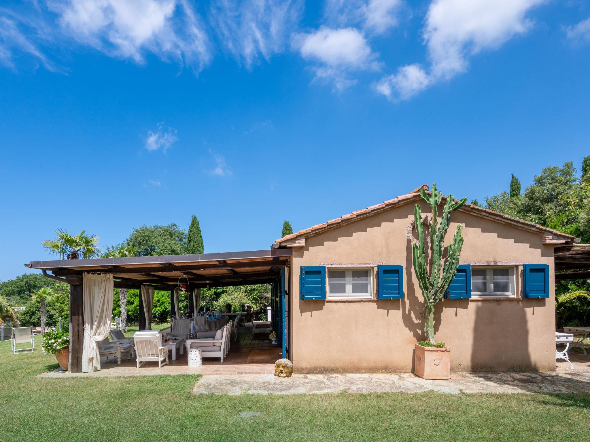 This private country estate is the epitome of a southern dream, palm trees, large pool and beautiful garden to enjoy in close proximity to the sea. Comfortable country house "Villa delle Stelle", detached, surrounded by trees and fields. Property composed of main house and outbuilding, in the hamlet Campalto 5 km from the centre of San Vincenzo, 5 km from the centre of Venturina, in a quiet, sunny position, 5 km from the sea, 5 km from the beach, in the countryside. Private: park 6'000 m2 (fenced) with lawn and trees, beautiful garden to relax, swimming pool kidney shaped (150 m2, depth 150 - 150 cm, seasonal availability: 29.Apr. - 04.Oct.). Shower/WC in the pool area, paddling pool, slide, hot tub, pool house with fridge and cooking stove, patio, arbour, barbecue, pool maintenance by the owner/gardener. In the house: WiFi, hot tub (all included), table tennis, billiard table, playroom, bicycles available (extra). Linen change weekly. Towel change weekly. Parking (for 5 cars) on the premises. Shop 5 km, supermarket 4 km, restaurant 600 m, bus stop "Palmentello" 1 km, railway station "Campiglia Marittima" 7 km, sandy beach "Dog Beach, Rimigliano" 5 km, grass beach "Golfo di Baratti" 12 km, thermal baths "Calidario" 5 km. Marina 7 km, golf course (18 hole) 40 km, riding stable 16 km. Nearby attractions: Golfo di Baratti 12 km, Bolgheri 25 km, Pisa 90 km, Firenze 160 km. Please note: baby equipment (included). The owner does not accept any youth groups.