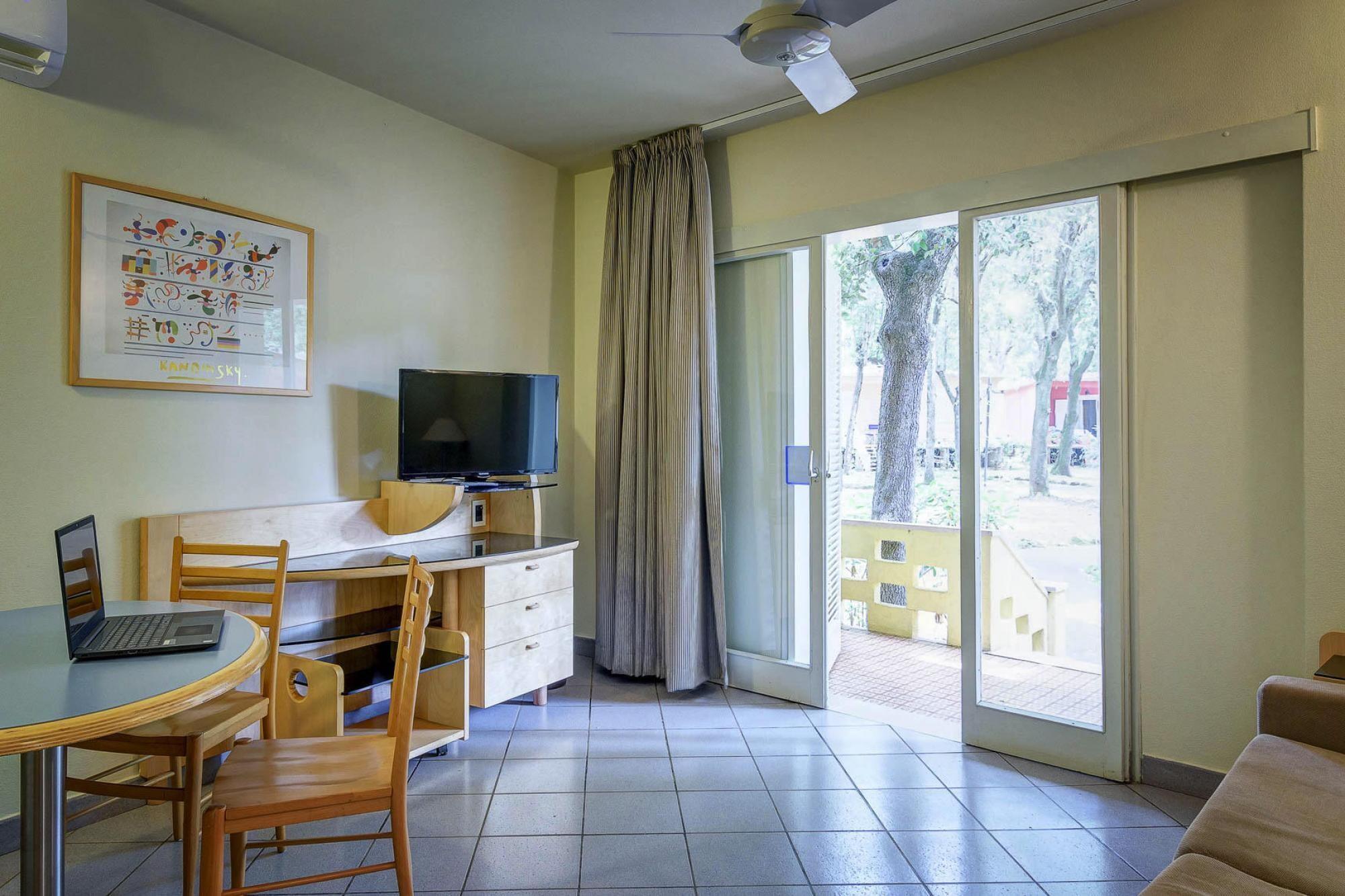 Stue(Fjernsyn(parabol, Tyske TV-kanaler)), tekøkken(spisebord, kogeplade(induktion), køle-fryseskab), soveværelse(dobbeltseng), soveværelse(enkeltseng, enkeltseng), badeværelse(bruser, toilet, bidet), Kiosk, Hæveautomat, Reception, Butik, Minimarked, Fitness, Cykeludlejning, Snackbar, bruser med lysterapi, sauna(paid), balkon, klimaanlæg, terrasse, havemøbler, solstole, parkering, Parasol, swimmingpool(deles med andre gæster, udendørs), swimmingpool(deles med andre gæster, udendørs), tennisbane, bordtennisbord, barnestol, baby crib(paid)
