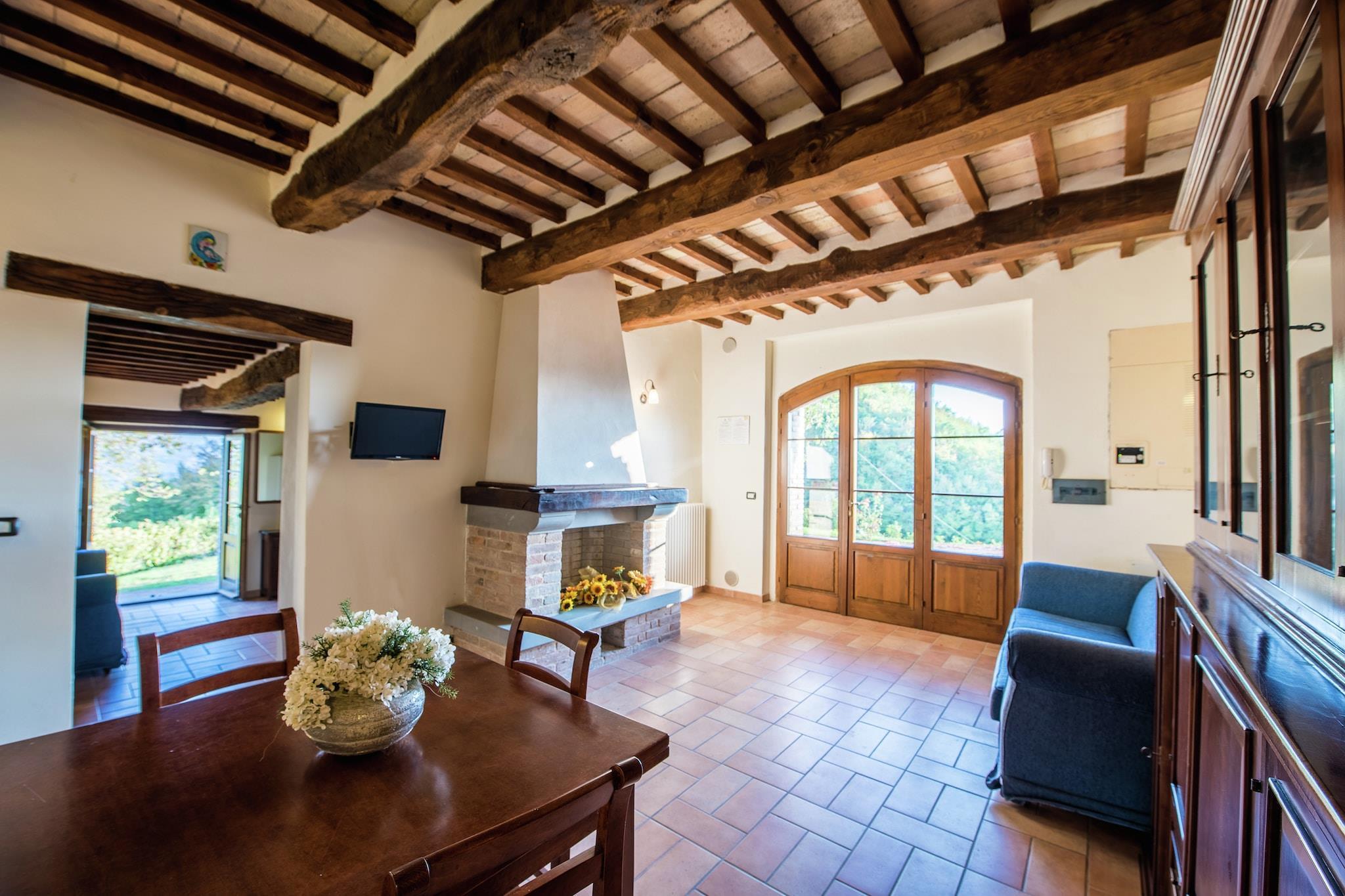 Denne lille landsby med 5 etager og lille pool/spabad ligger midt i uberørt natur og i et roligt område midt på Appenninerne. Landskabet er smukt og solnedgangen er imponerende. Landsbyen ligger for enden af en vej på en bakke, og fra den har du en spektakulær udsigt over Metauro-dalen. Landsbyen var beboet af en familie af bønder, der arbejdede på det omkringliggende land. Alle gulve er blevet fuldstændig renoveret med bevarelse af de originale detaljer, herunder synlige loftsbjælker og terracotta fliser. Lejlighederne er smagfuldt indrettede og har en rustik og hyggelig atmosfære. På plænen er der en bane til futsal og volleyball. Der er mulighed for at lave lokal vinsmagning, trøffeljagt med guider og trænede hunde, besøg på hestefarmen med udvalgte prestigefyldte racer, guidede quad-udflugter og praktisk og sportsfiskeri. I omgivelserne kan du tage på vandreture, mountainbike eller ride, og der er en flod, hvor du også kan svømme, og stranden ligger 1 times kørsel derfra. Området er rigt på smukke middelalderbyer at besøge, herunder Urbino. For alle fans af mountainbiking og vandreture tilbyder agriturismo en service af miljøguider til udflugter på cykel eller til fods gennem stierne og skovene, der omgiver ejendommen. Sant'Angelo ligger 9 km fra Vado, en smuk middelalderby, hvor du kan nyde en aperitif på pladsen eller en cappuccino i baren. Blot en times kørsel væk finder du de mest berømte forlystelses- og vandlande i det centrale Italien, såsom Acquafan, Oltremare, Fiabilandia, Mirabilandia, Italien i miniature og Falconara Zoopark, for at tilbringe en sjov dag med venner eller familie. Havet ligger 60 km væk, med de kendte badebyer Rimini, Riccione, Cattolica, Pesaro og Fano.
