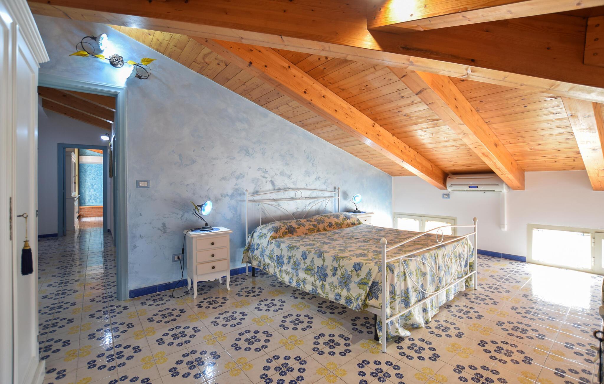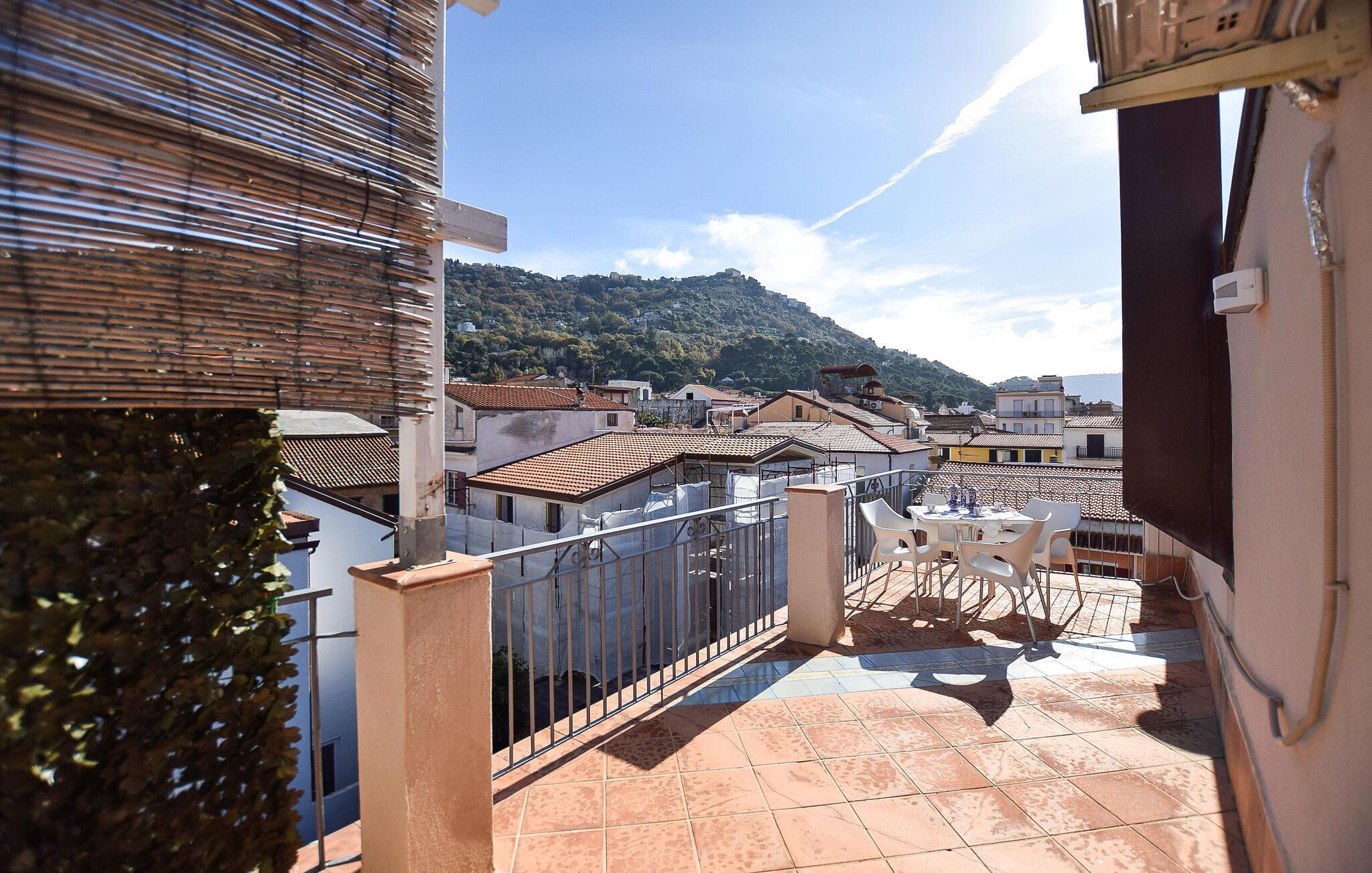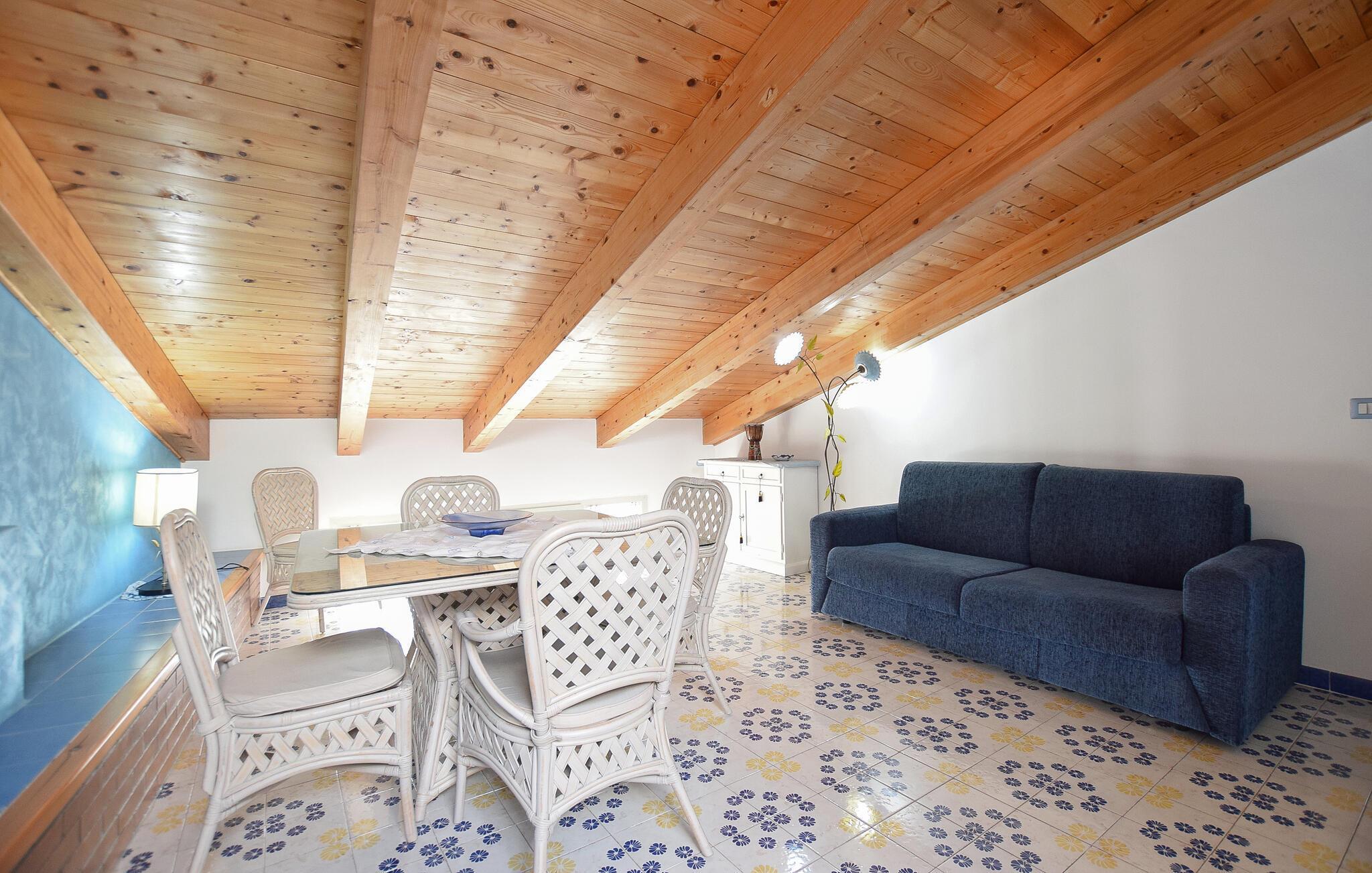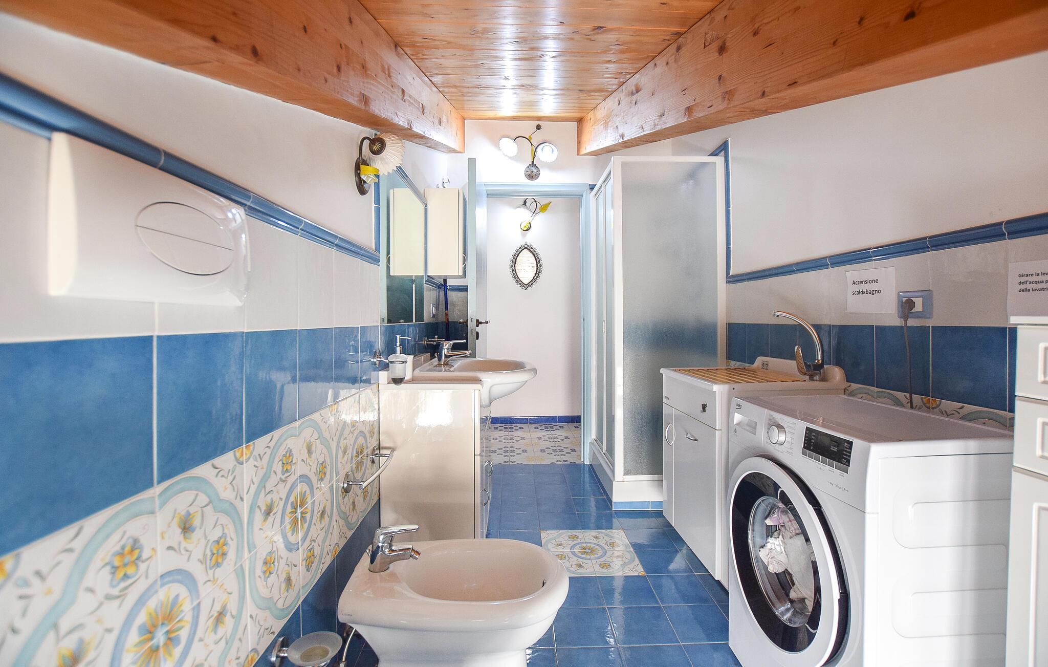 Denne rummelige ferielejlighed i Santa Maria di Castellabate tilbyder alt, hvad I behøver for en afslappende ferie. Den smagfulde indretning og gode faciliteter skaber en stilfuld og hyggelig atmosfære, hvor I vil føle jer hjemme fra første øjeblik. Højdepunkterne er den store tagterrasse med en imponerende udsigt over det glitrende hav – perfekt til morgenmad med udsigt eller afslappende aftener i solnedgangen. Terrassen er det ideelle sted at afslutte jeres feriedage i ro og fred.