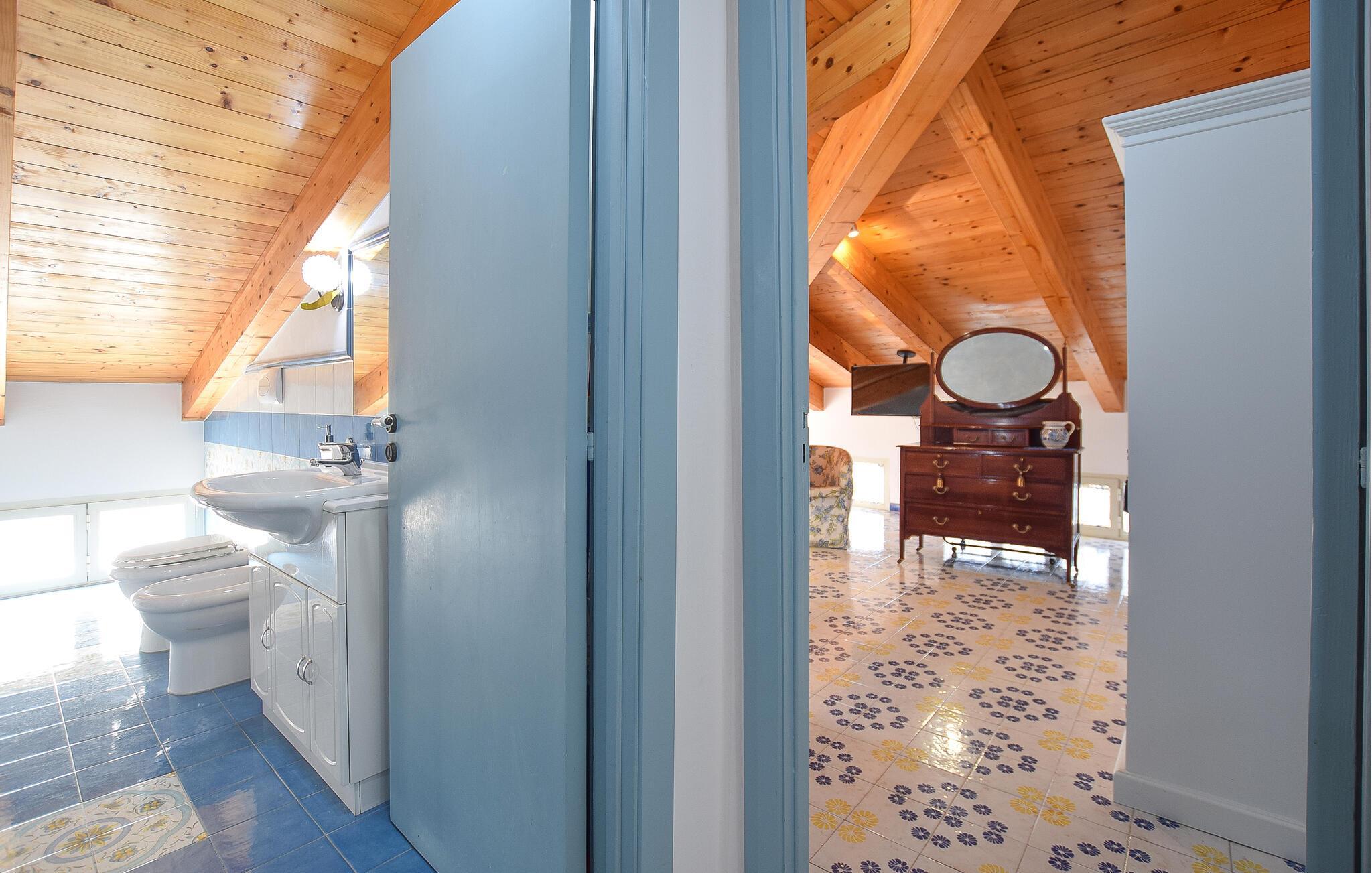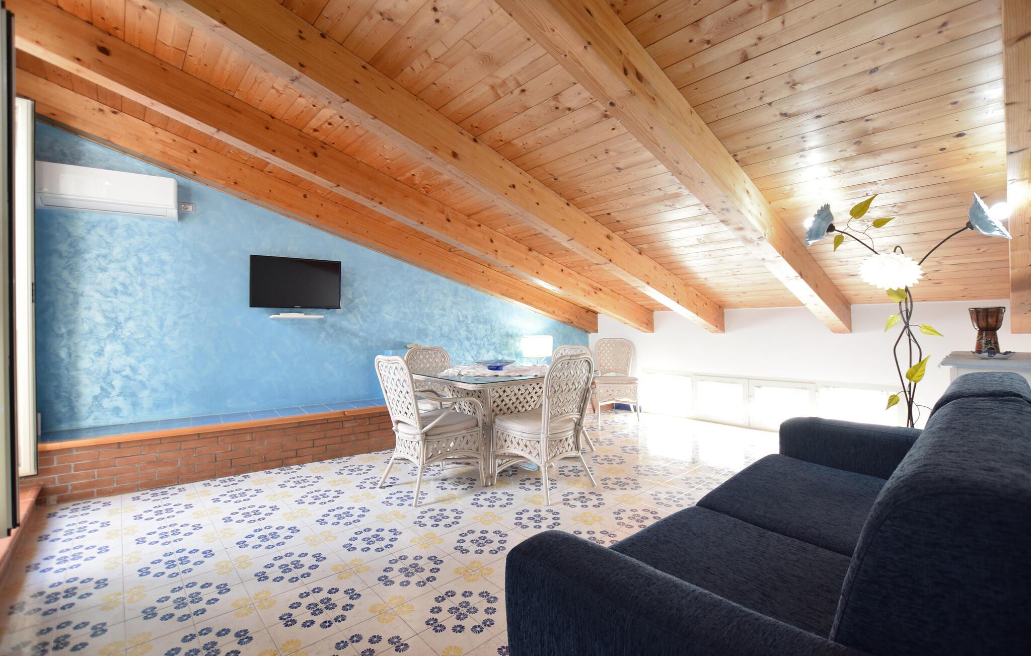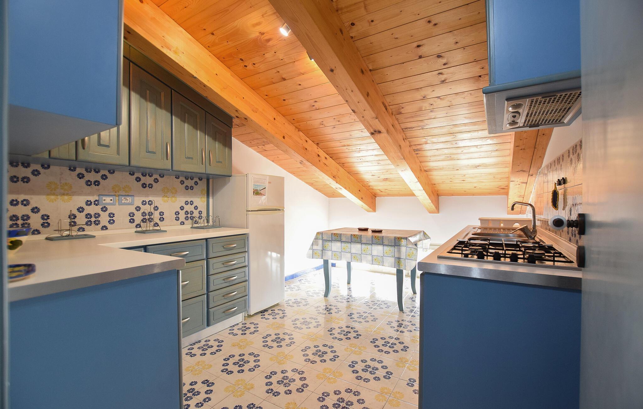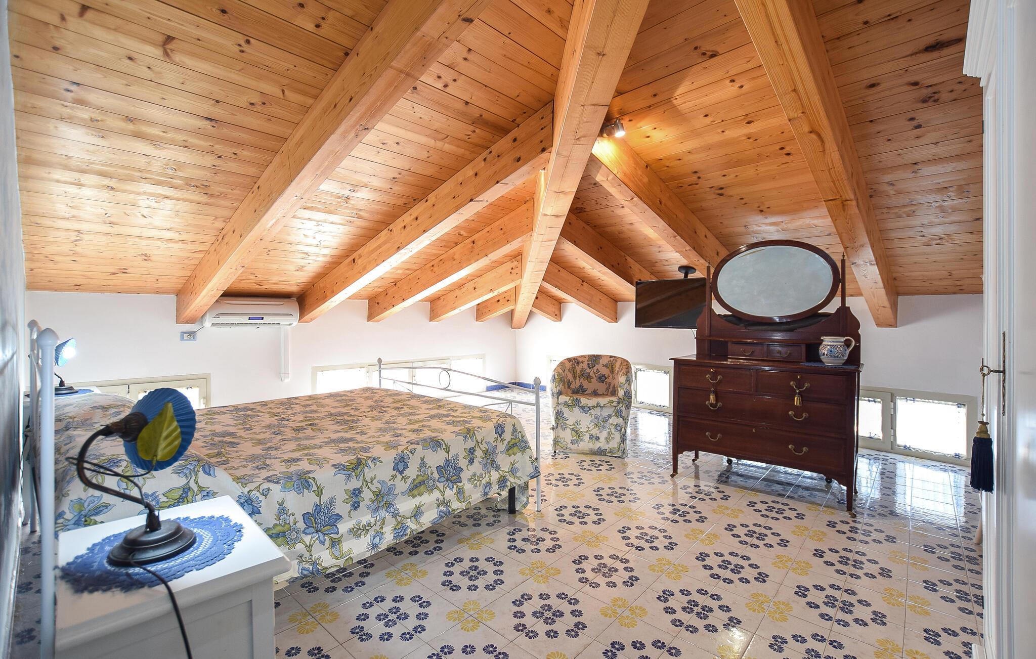 Denne rummelige ferielejlighed i Santa Maria di Castellabate tilbyder alt, hvad I behøver for en afslappende ferie. Den smagfulde indretning og gode faciliteter skaber en stilfuld og hyggelig atmosfære, hvor I vil føle jer hjemme fra første øjeblik. Højdepunkterne er den store tagterrasse med en imponerende udsigt over det glitrende hav – perfekt til morgenmad med udsigt eller afslappende aftener i solnedgangen. Terrassen er det ideelle sted at afslutte jeres feriedage i ro og fred.