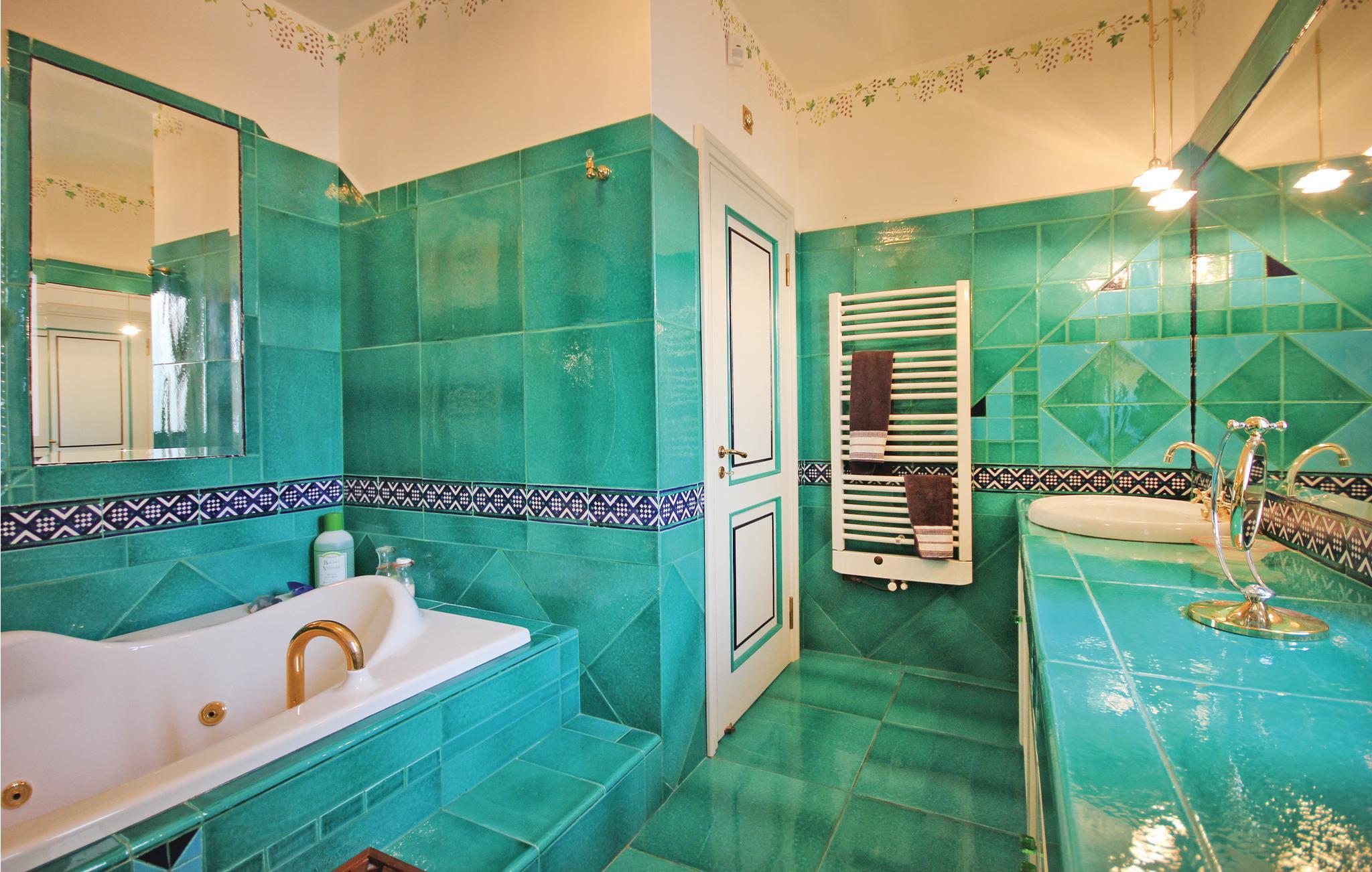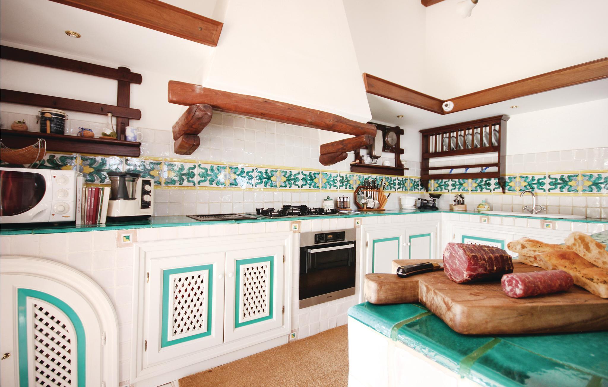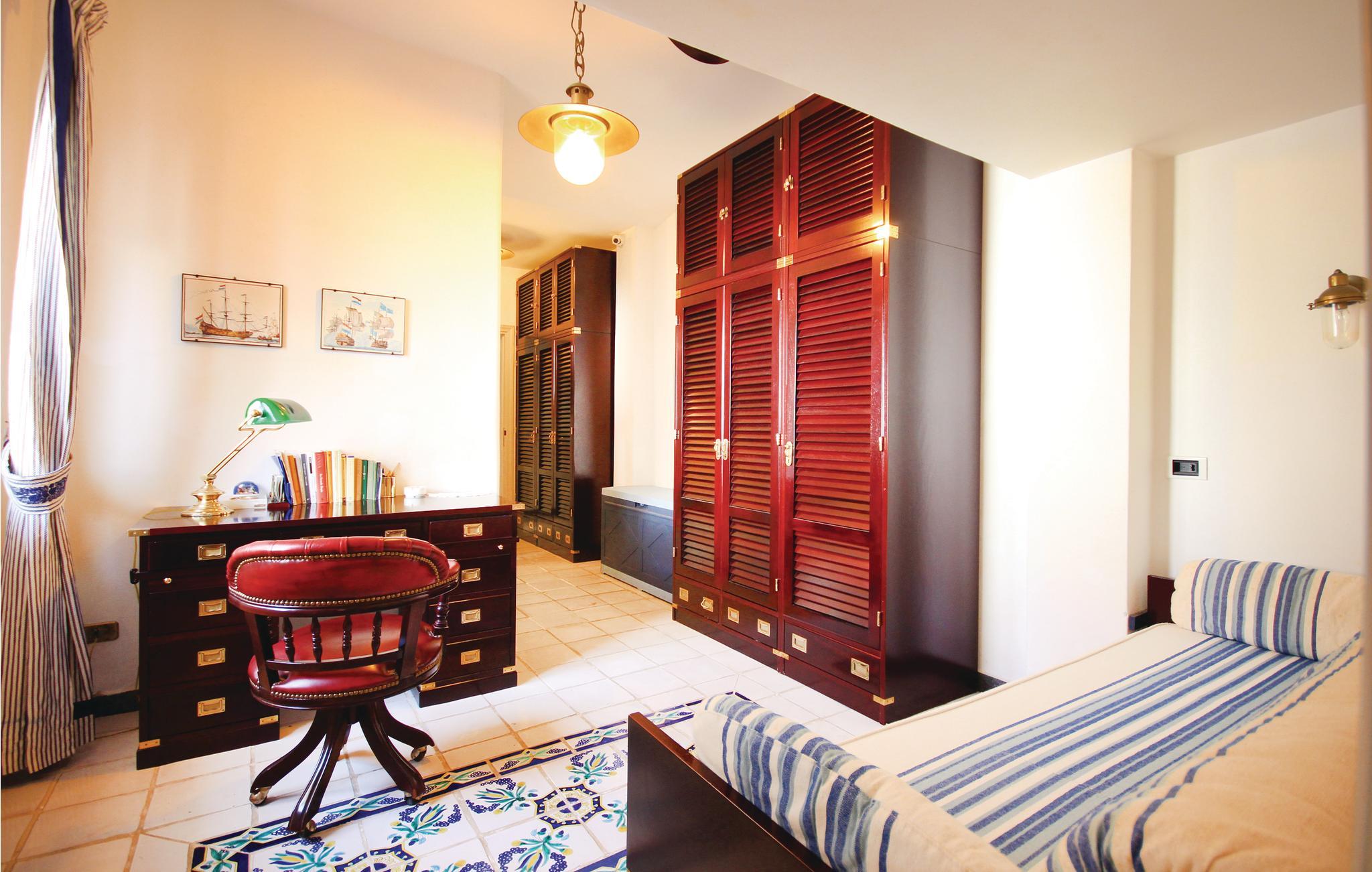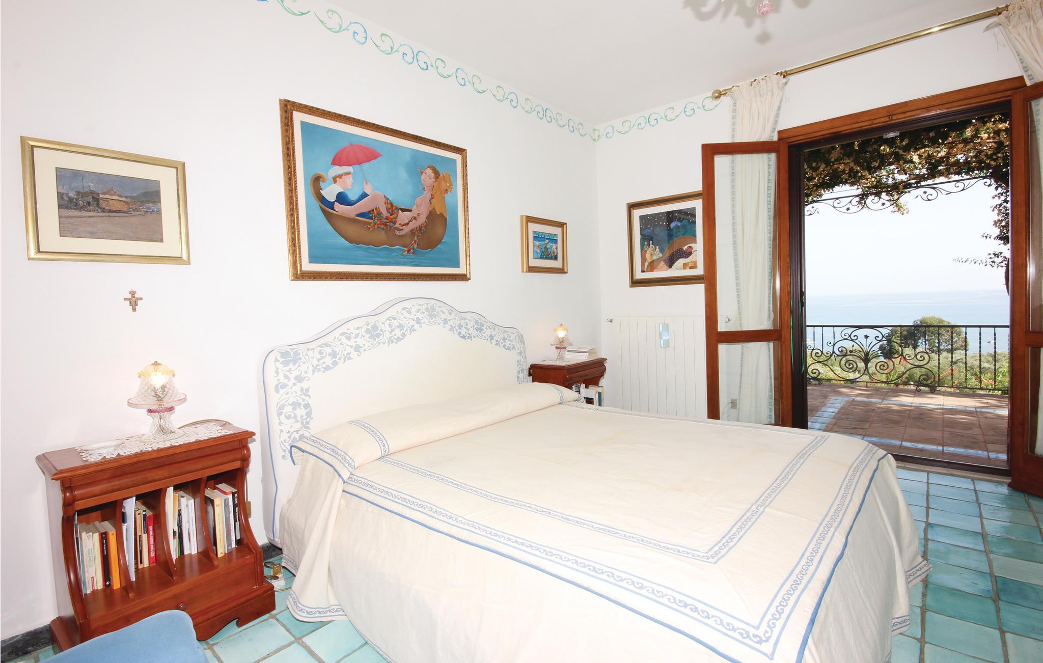 En vidunderlig villa med udsigt til golfen af Policastro i nationalparken Cilento, 2 km fra fiskerlandsbyen Scario. Feriehuset er fordelt over tre etager, der kun er forbundet med ydertrapper. Det byder jer på en stor pool med afrundede linjer, havudsigt og belysning i aftentimerne. Haven og de tilstødende udendørsområder er terrasseformet anlagt og rige på oliventræer og mediterrane planter. Bygningen er præget af materialer af høj kvalitet og fint håndværk. Hovedindgangen ligger i stueetagen, hvor også den store dagligstue, et køkken, fire soveværelser og endnu et værelse venter på jer. Fra forældresoveværelset råder I over eget, stort badeværelse med massagekar, og I kan træde ud på terrassen med udsigt til havet. Rundt om huset er der flere udstyrede områder, en veranda og generøse terrasser. I østsiden er der vaskerum og bordtennis. På første sal er der stue med køkkenhjørne, soveværelse og badeværelse med mosaikgulv og massagekar. Udenfor er der to terrasser med herlig havudsigt. På anden sal er der et soveværelse, badeværelse og køkkenhjørne. Soveværelse 3 har en enkeltseng og en åben hems (adgang via vindeltrappe) med to enkeltsenge. På den ene side af hemsen findes en vandret åbning (uden glas), som har udsigt over soveværelse 2, der ligger i stueetagen. Fra huset kommer I nemt til sandstranden, der kun ligger få hundrede meter herfra, hvor der er snackbar og pizzeria. I Scario kan I finde alle slags services som supermarked, restauranter, bar og postkontor. Fra havnen i landsbyen kommer I ad havvejen til mange flotte bugter langs kysten mod nord helt til Marina di Camerota. God beliggenhed til besøg i nationalparken Cilento og andre steder af arkæologisk og kulturel interesse: Karteuserklosteret i Padula i Vallo di Dano ligger 47 km herfra, der er 80 km til de pragtfulde arkæologiske templer i Paestum, 45 km til udgravningerne i Velia ved Cilento-kysten og 30 km til Maratea og den berømte kristusstatue.