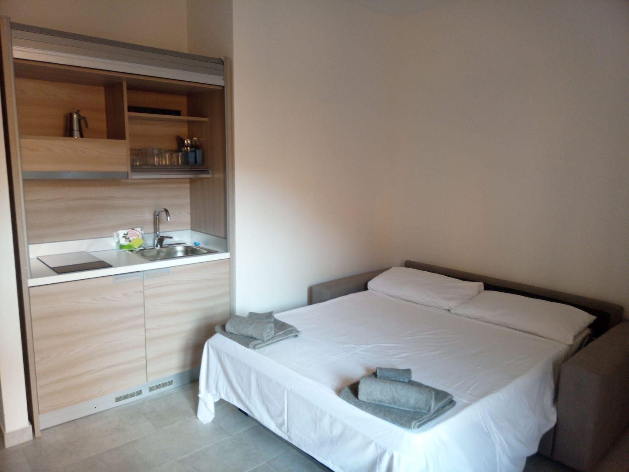 The apartment, brand new and with fine finishes, consists of a single living room with kitchenette and bathroom, able to accommodate two people in the comfortable double sofa bed.
