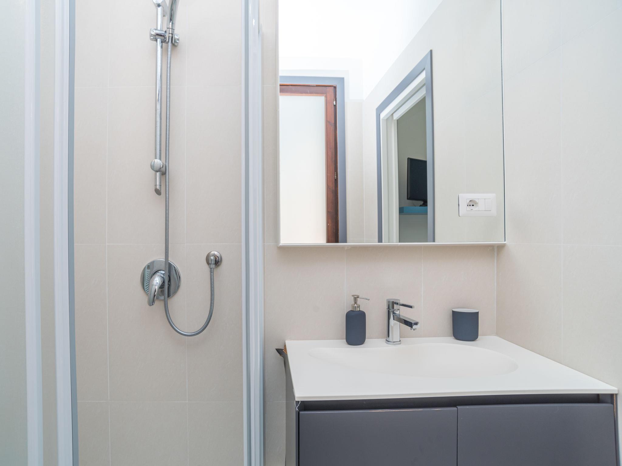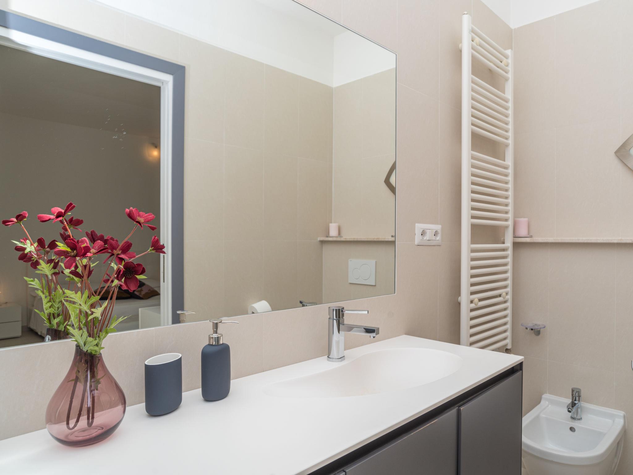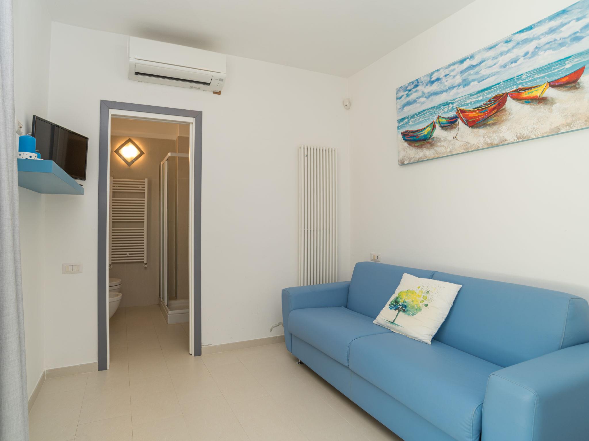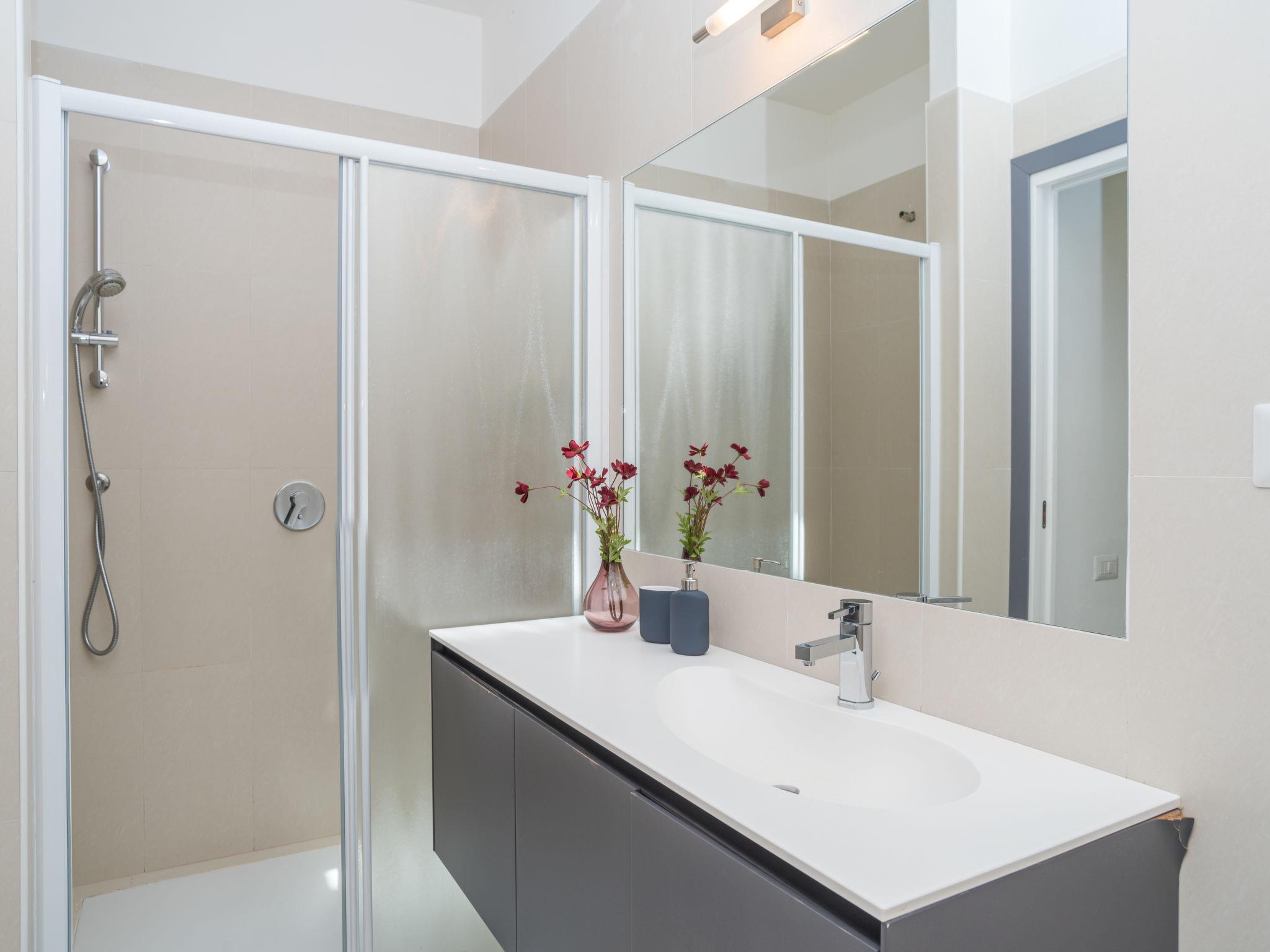 4-room villa 150 m2, on the ground floor. Comfortable and modern furnishings: living/dining room with dining table and satellite TV. Exit to the terrace. 2 double bedrooms, each room with shower/bidet/WC, air conditioning and forced-air heating. Exit to the terrace. 1 room with 1 double sofabed and shower/bidet/WC. Exit to the veranda. Open kitchen (oven, dishwasher, 5 gas rings, kettle, microwave, freezer, electric coffee machine). Sep. WC. Air-conditioning, forced-air heating (extra). Terrace roofed, large terrace. Terrace furniture, deck chairs (2), sitting area. Facilities: washing machine, iron. Please note: non-smokers only. Maximum 1 pet/ dog allowed. The handrail of the outer staircase which leads up to the roof terrace is not suitable for infants. IT090063C2000S9739