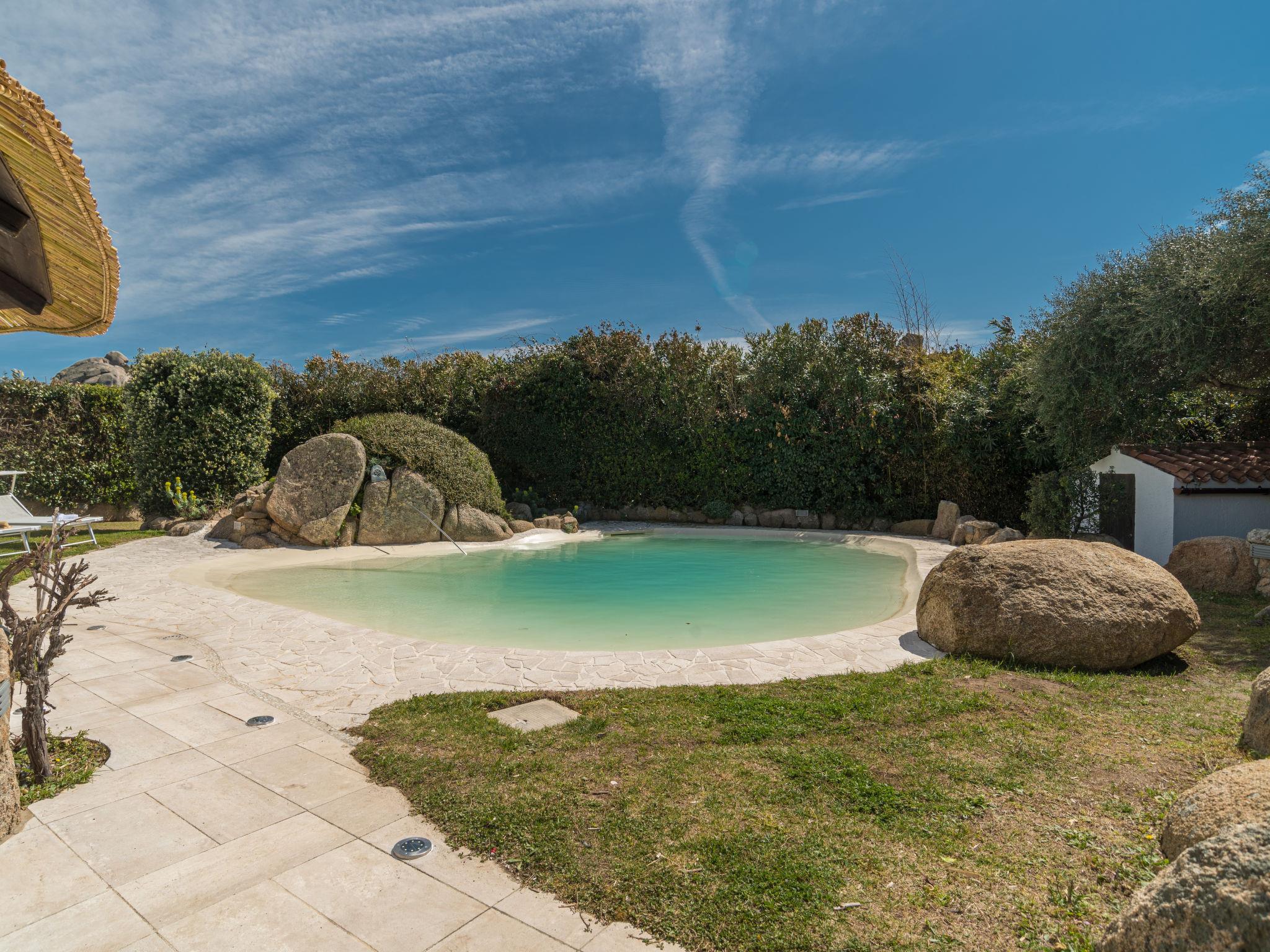 Cosy, comfortable villa "La Dolce Vita". In the district of Santa Reparata 4 km from the centre of Santa Teresa di Gallura, 1.2 km from the sea. Private: property 1'000 m2 (fenced), garden with lawn and wildlife garden, swimming pool (4 x 3 m, depth 20 - 160 cm, seasonal availability: 01.Apr. - 31.Oct.). Outdoor shower, hot tub, pool house with fridge and cooking stove, barbecue. In the house: roof terrace. 30 m long narrow motor access. Parking (for 2 cars) at 60 m. Shop 1 km, supermarket 4 km, bus stop 4 km, sandy beach "Santa Reparata" 1.2 km. Nearby attractions: Palau 28 km, Porto Cervo 57 km. Please note: car recommended. Hydromassage (unheated water - room temperature) from 01.04. until 31.10.