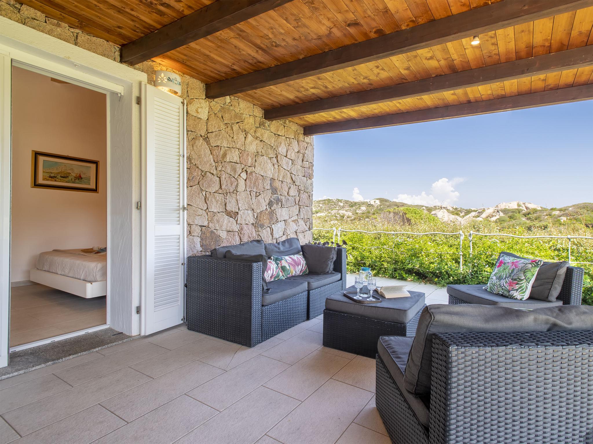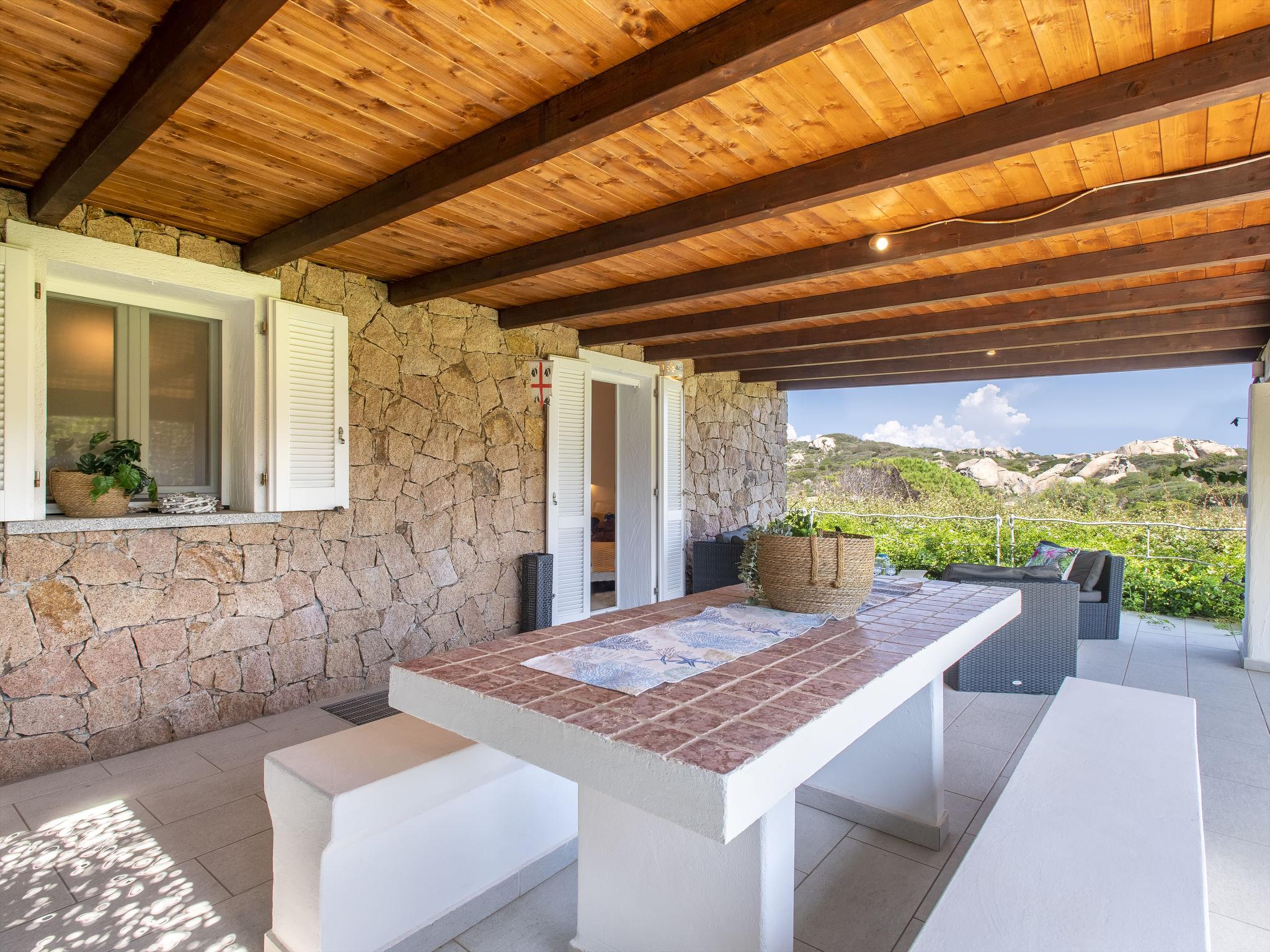 Cosy, comfortable house "Shardana". In the district of Baia Santa Reparata 3 km from the centre of Santa Teresa di Gallura, 700 m from the sea. Private: property 800 m2 (fenced), garden with lawn and trees, swimming pool (above ground) (3 x 2 m, depth 60 cm, seasonal availability: 01.May. - 31.Oct.). Outdoor shower. Motor access to 25 m from the house. Parking (for 2 cars) on the premises. Supermarket 3 km, restaurant 1 km, bar 1 km, bus stop 3 km, sandy beach "Santa Reparata" 700 m. Nearby attractions: Palau 28 km, La Maddalena island 38 km. Please note: car recommended. Object suitable for 4 adults + 2 children.