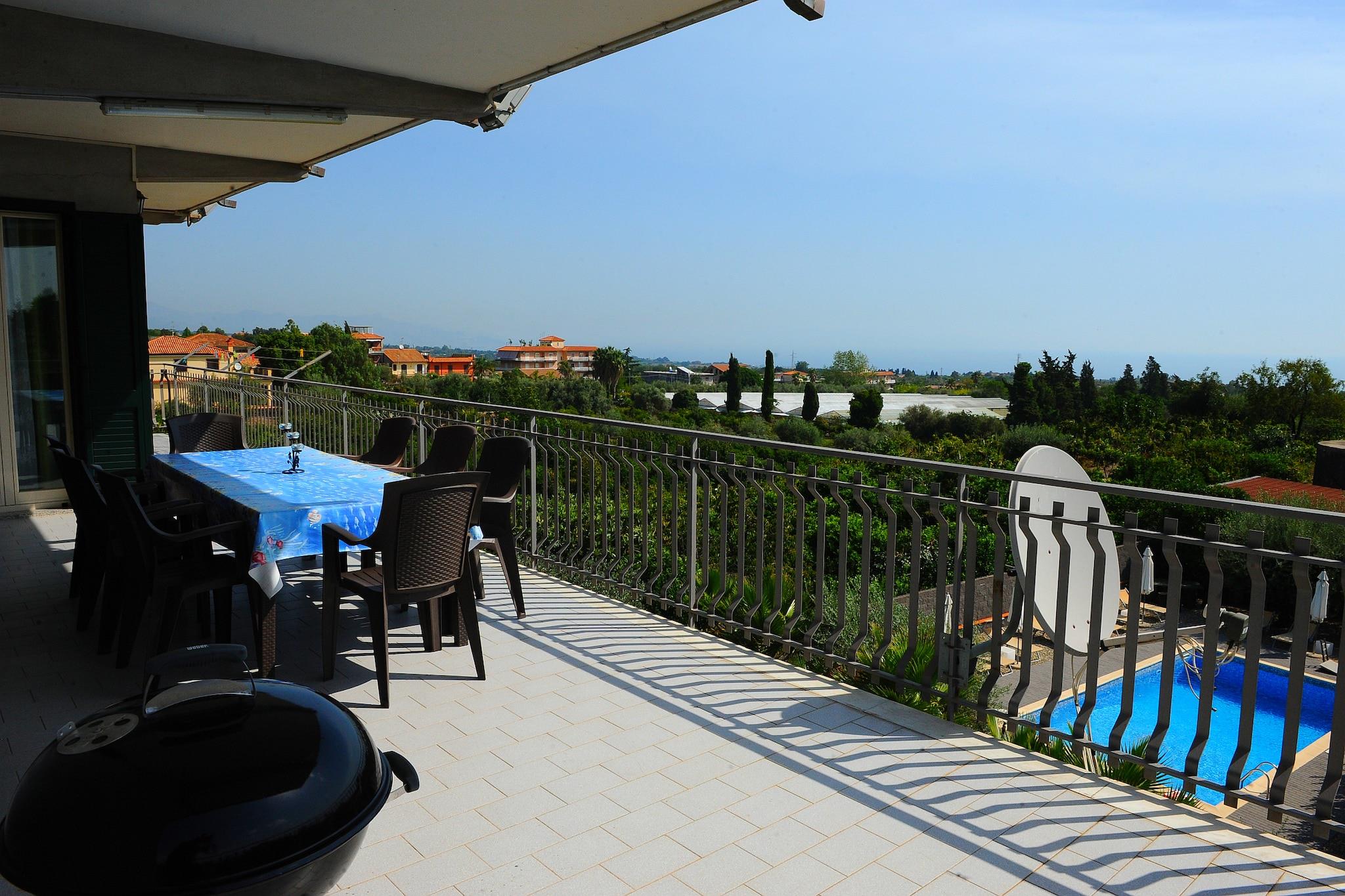 Afslappet ophold i hjertet af Sicilien Gemt på skråningerne af Etna, tilbyder denne smukt airconditionerede lejlighed et fredeligt tilflugtssted med en rummelig terrasse, en have til afslapning og en saltvandsswimmingpool, der kun deles med to andre enheder. Uanset om du spiser udendørs ved grillen eller slapper af med et spil billard, skaber hjemmets hyggelige indretning og solbeskinnede stemning de perfekte rammer for par, venner eller små familier. Gæsterne har også adgang til en sæsonbestemt grøntsagsplads og privat parkering. Udforsk Etna, havet og barokskønhed Fra dit dørtrin kan du nå Acireale (5 km) for at udforske fantastisk barokarkitektur og det livlige karneval, eller kør 9 km til de dramatiske lavastenstrande Stazzo og Pozzillo. Zafferana Etnea, der er berømt for sin honning og håndværksmæssige charme, ligger kun 7 km væk. Naturelskere kan vove sig 15 km til Etna Park for kratervandringer og panoramaudsigt, mens Catania (20 km) og den klippehøjde by Taormina (34 km) sørger for exceptionelle dagsture. Smag af Santa Venerina Denne region er berømt for sin rige kulinariske arv - gå ikke glip af lokale kager og verdenskendte spiritus produceret lige i Santa Venerina. Nyd det sicilianske køkken på nærliggende perler som La Nuova Quercia eller Antica Pizzeria La Tana, kun få minutter væk. For vinelskere er det nemt at arrangere vingårdsture og smagsprøver, som tilbyder en ægte smag af Etnas vulkanske terroir. Kæledyr er velkomne, og nærliggende stier byder på naturskønne gåture for lodne ledsagere.