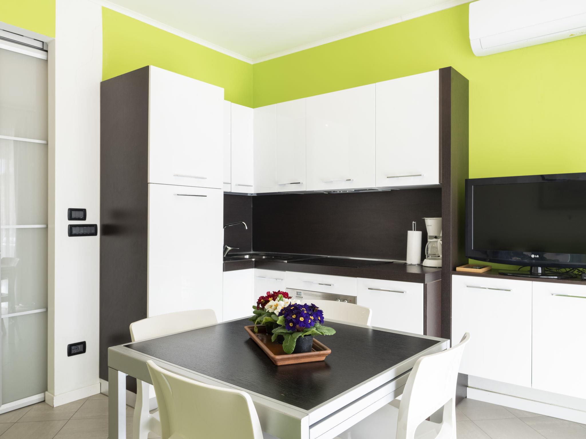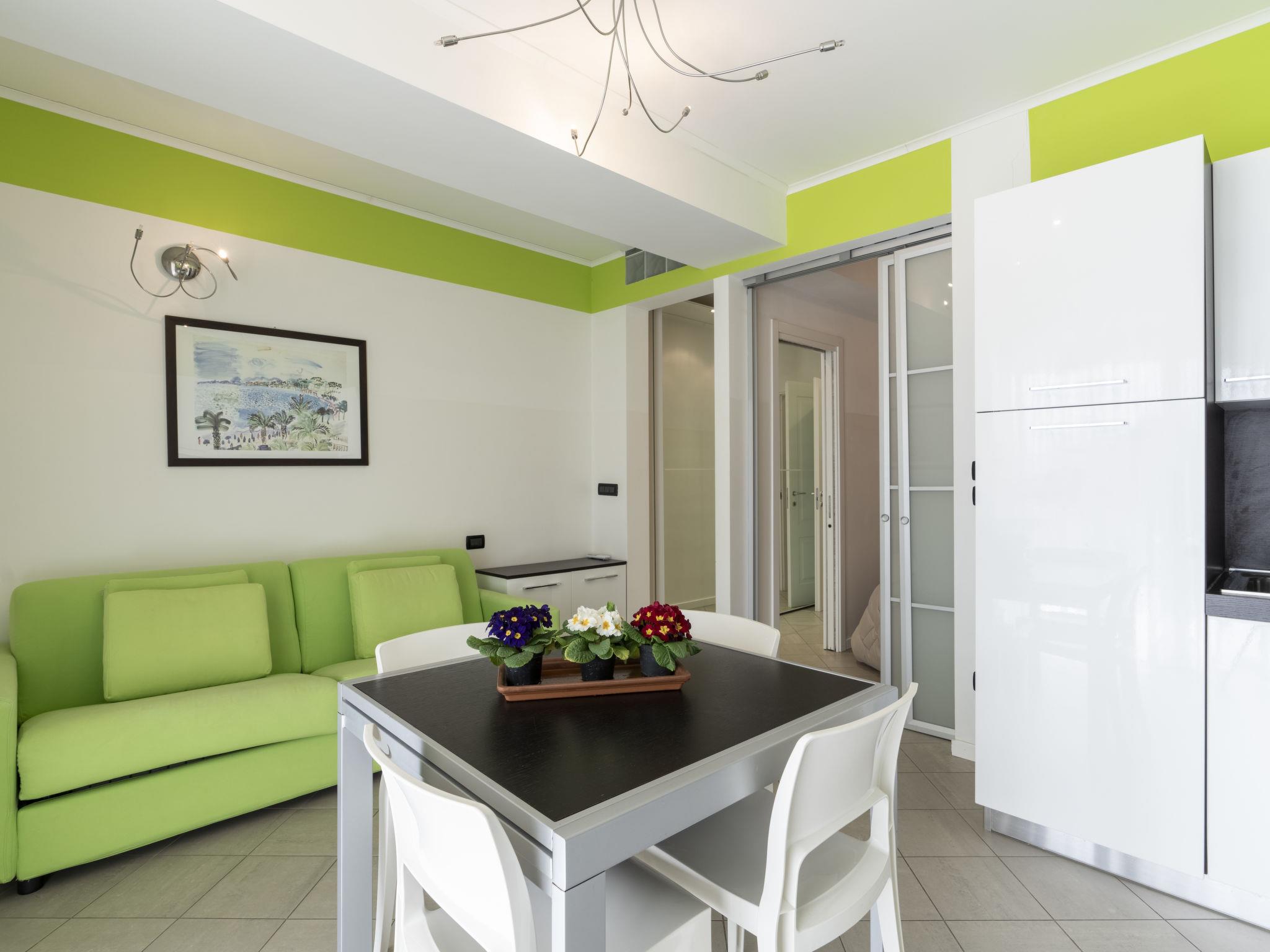 "Verde", 2-room apartment 75 m2, on the upper floor. Modern and stylish furnishings: living/sleeping room with 1 double sofabed (140 cm), dining table and TV. Exit to the terrace. 1 room with 1 french bed (160 cm). Kitchenette (oven, dishwasher, 4 induction hot plates, toaster, kettle, freezer, electric coffee machine). Shower/bidet/WC. Electric heating, air-conditioning. Terrace. Terrace furniture, deck chairs (2). View of the sea and the port. Facilities: washing machine, iron, children's high chair, baby cot. Internet (WiFi, free). Please note: non-smokers only. Private entrance. pool communal on the roof from 15.06-15.09 18x7 m e deep 120cm. IT008056B4A93LTRXR