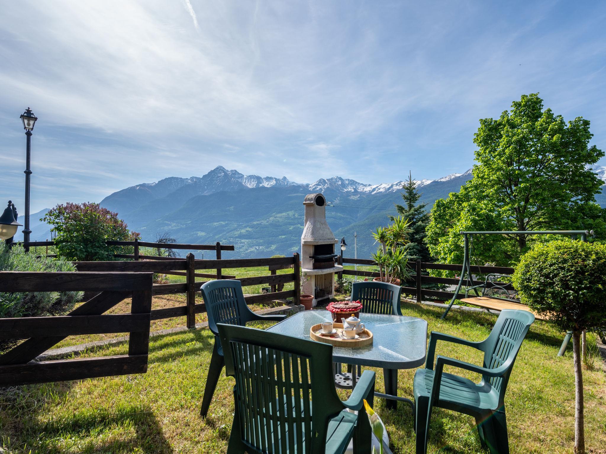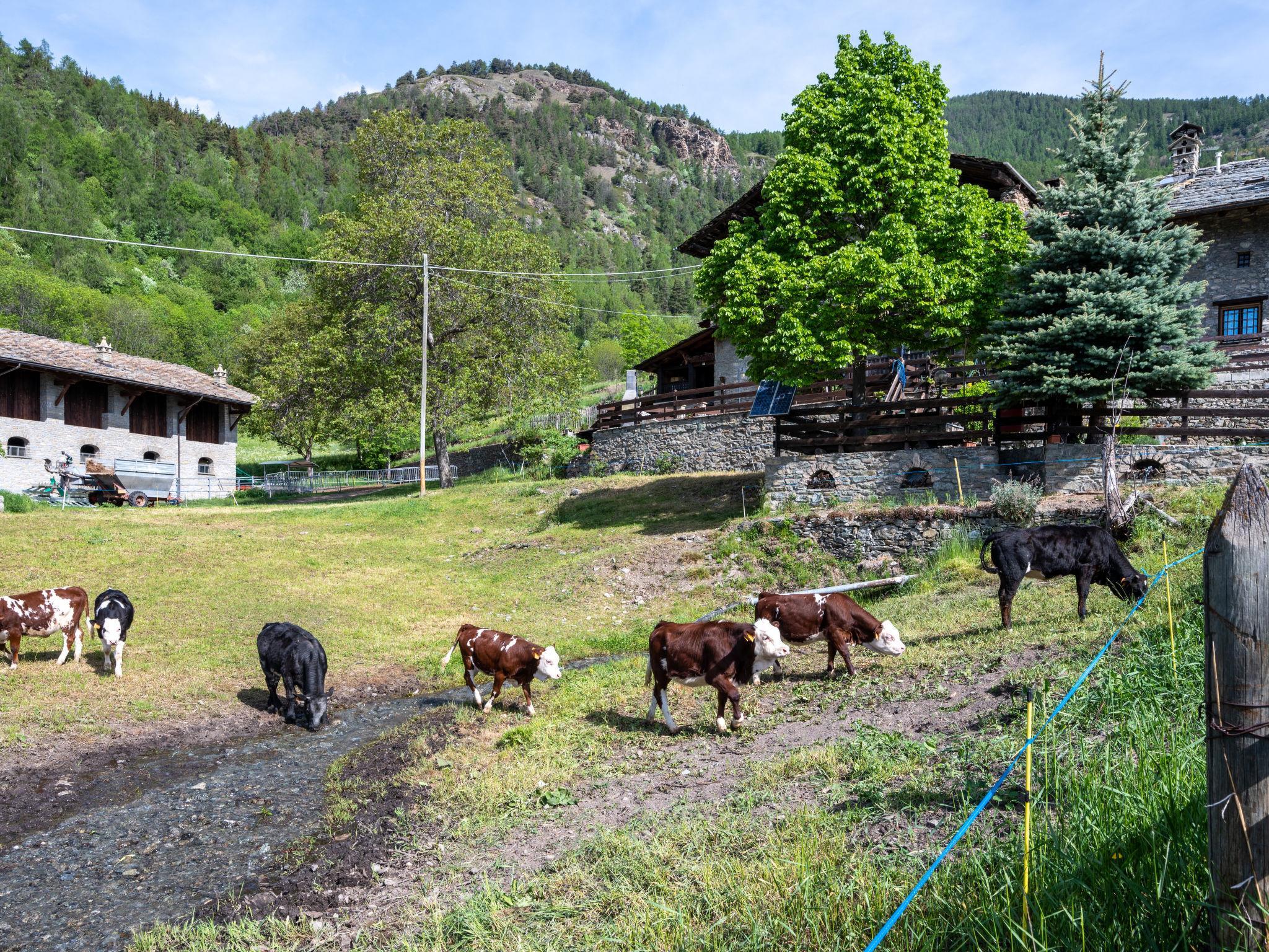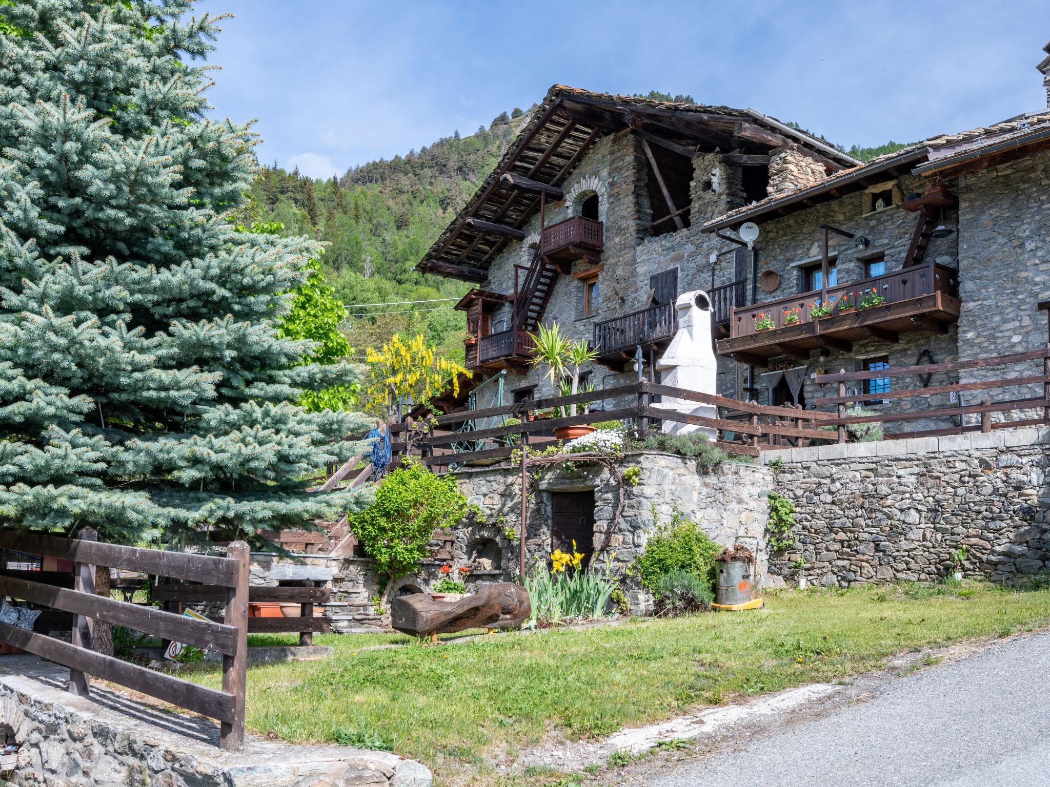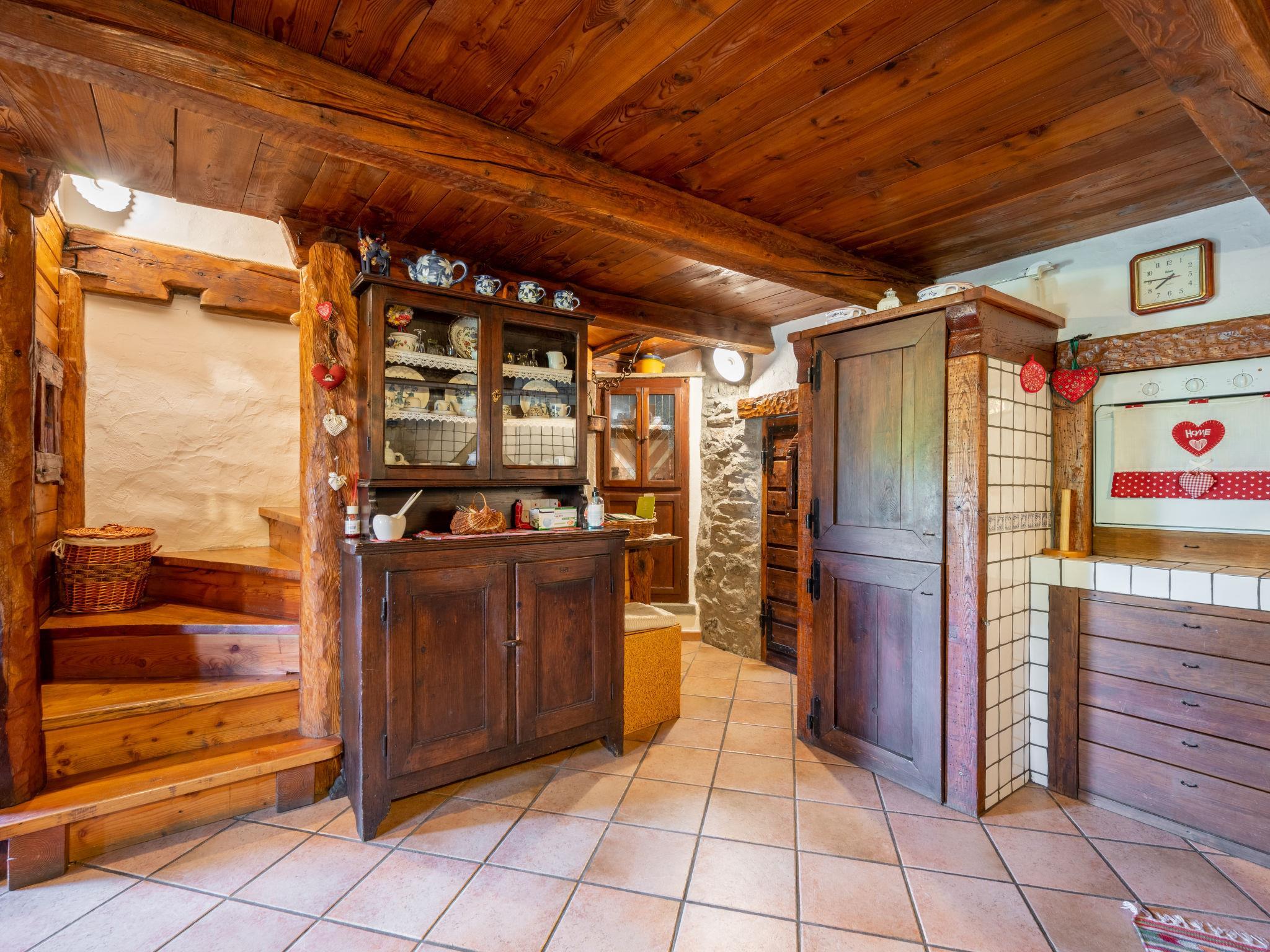 Rustic, historical terraced house "Maison Meynet", 1'200 m a.s.l., 3 storeys, semi-detached. In the hamlet Ville sur Sarre 8 km from the centre of Sarre, in a quiet position, south-east facing position. Private: garden (fenced) with lawn. Garden furniture, barbecue. In the house: storage room for bicycles, storage room for skis. In Winter: please take snow chains. Parking, public parking on the road. Supermarket 8 km, restaurant 8 km, bar 8 km, bus stop "Sarre" 8 km, thermal baths "Pre'-Saint-Didier" 36 km. Nearby attractions: Courmayeur Mont Blanc 36 km, Ovovia Aosta-Pila 12 km, pista di fondo Saint Nicholas 13 km. Please note: car recommended.