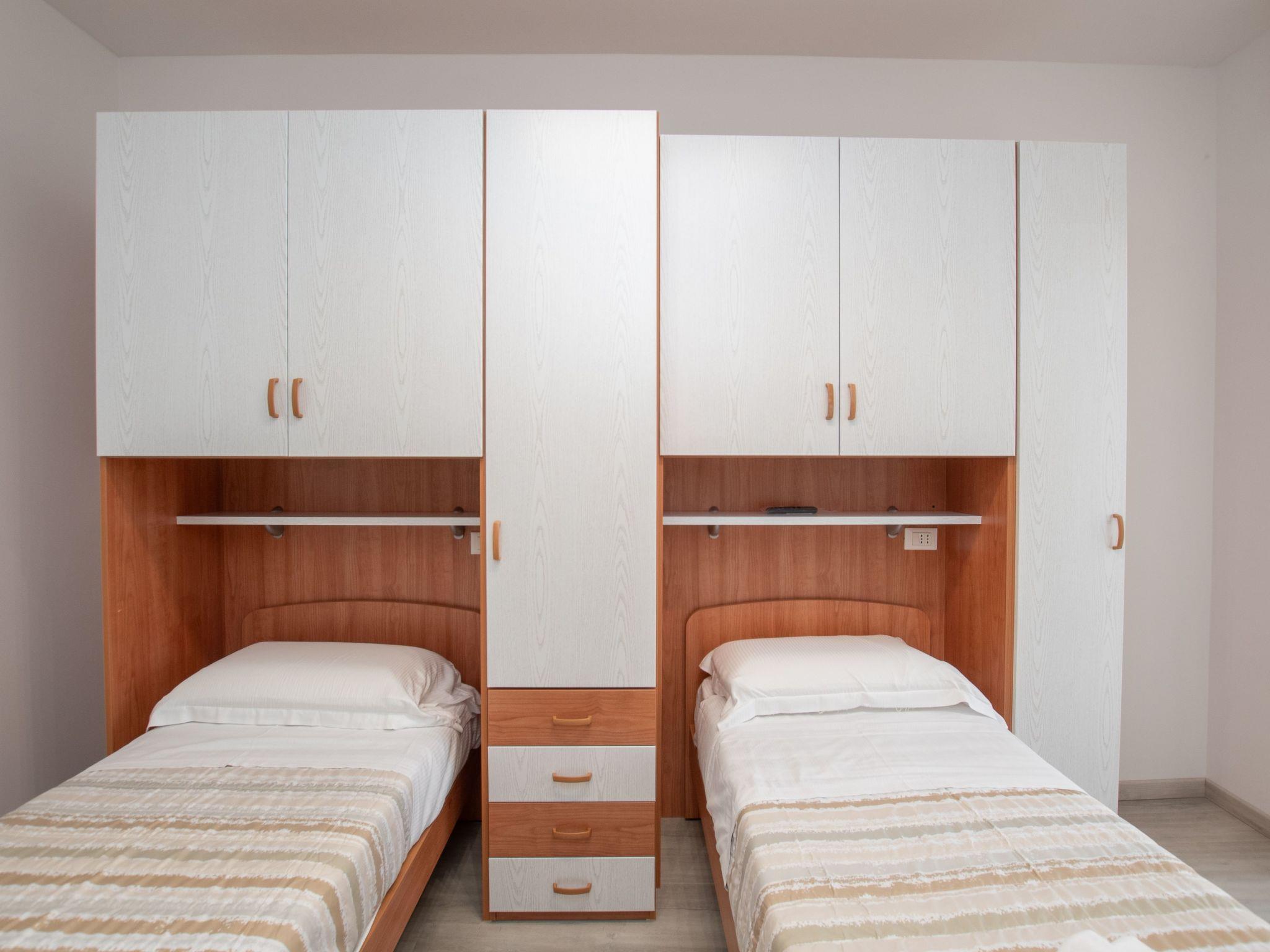 Inside, the flat boasts two bedrooms, each opening onto a private balcony, allowing guests to enjoy the sea breeze and sunlight. The bright and spacious master bedroom is carefully furnished and equipped with a double bed, a large wardrobe and air conditioning to ensure maximum comfort. The second room, ideal for children or other family members, has two single beds, a large wardrobe and a television, perfect for relaxing moments.