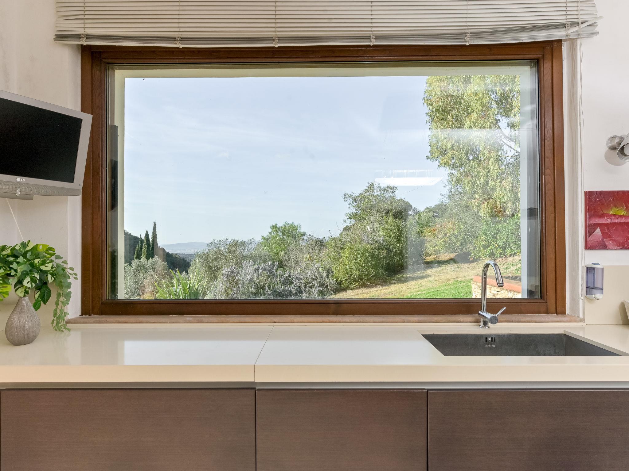 5-room villa 200 m2 on 3 levels. Spacious, comfortable and cosy furnishings: large living/dining room with 1 sofabed and open-hearth fireplace (only for decoration). Exit to the terrace. Kitchen (oven, dishwasher, 1 induction hot plates, 3 gas rings, toaster, kettle, combination microwave) with dining table. Exit to the terrace. Sep. WC. Upper floor: 1 room with 1 double bed. Shower/bidet/WC. 2nd upper floor: 1 large room with Dressing room with 1 double bed, bath/shower/bidet/WC and double hand-basin. Exit to the balcony. 1 double bedroom with shower/bidet/WC. Large terrace roofed, patio, lawn. Terrace furniture, barbecue, deck chairs. Very beautiful panoramic view of the countryside. Facilities: washing machine, baby cot for up to 2 year olds (extra), hair dryer. Internet (WiFi, free). Parking. Please note: non-smokers only. Maximum 2 pets/ dogs allowed. Private entrance, smoke alarm, fire extinguisher. IT053024C29A3FTGOS