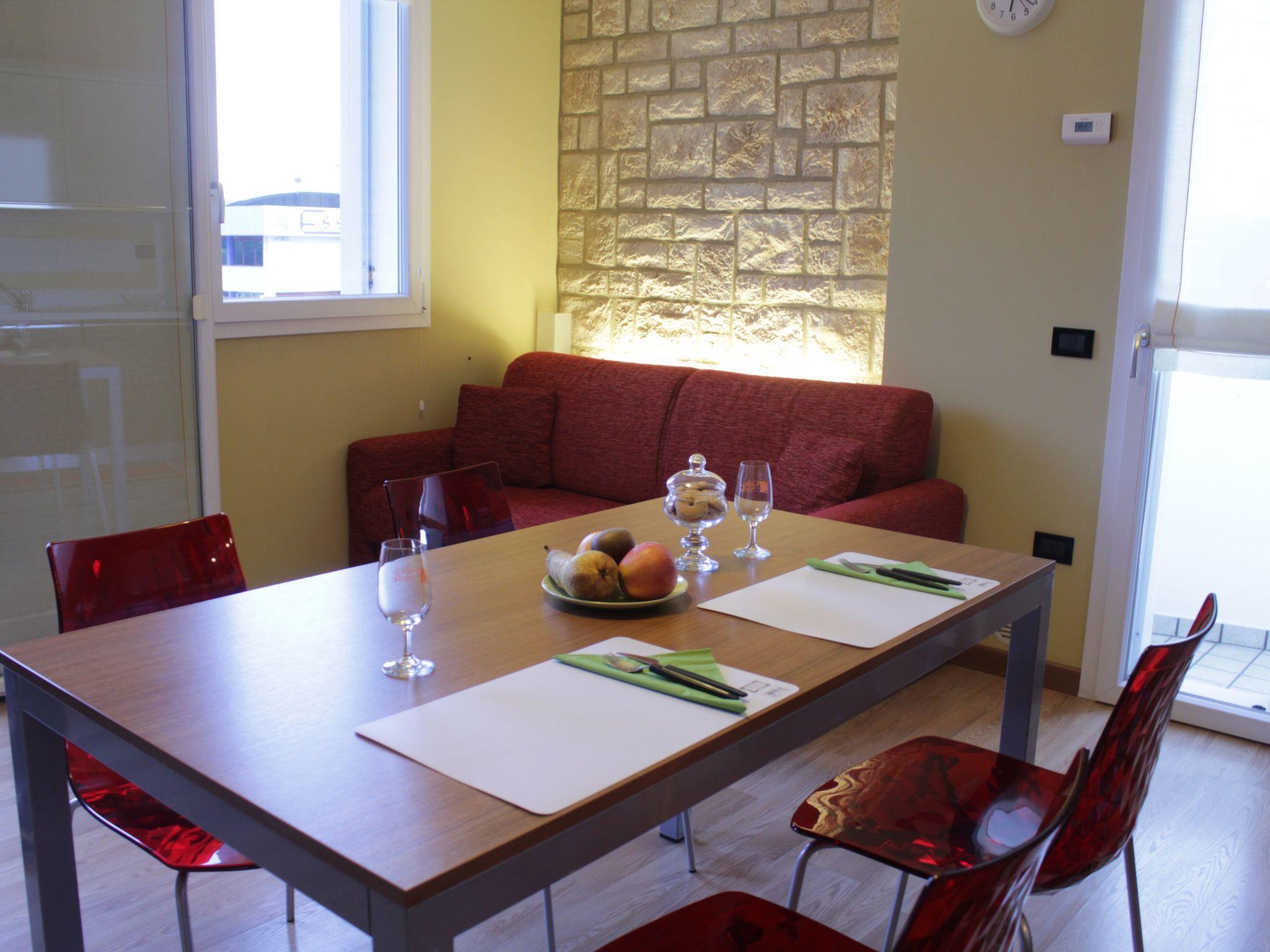 The residence is made of two-rooms soundproof flats fully independent one from another, provided with a small garden or a balcony, air conditioning system, strongbox, kitchen, sofa bed, satellite TV, hairdryer, fax machine service, room cleaning service, electronic card locking system for the flat and for the wide and covered garage.