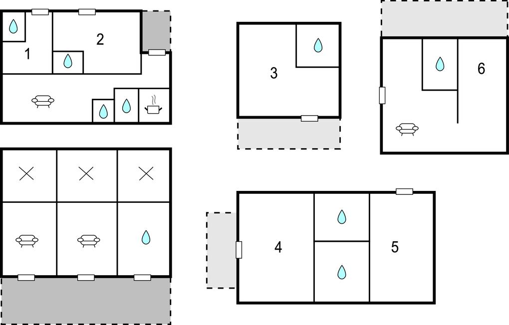 Soveværelse 20m2 (nr. 1) - 1 Soveplads. (Enkeltseng(e)). 2 Sovepladser. (Dobbeltseng(e)).