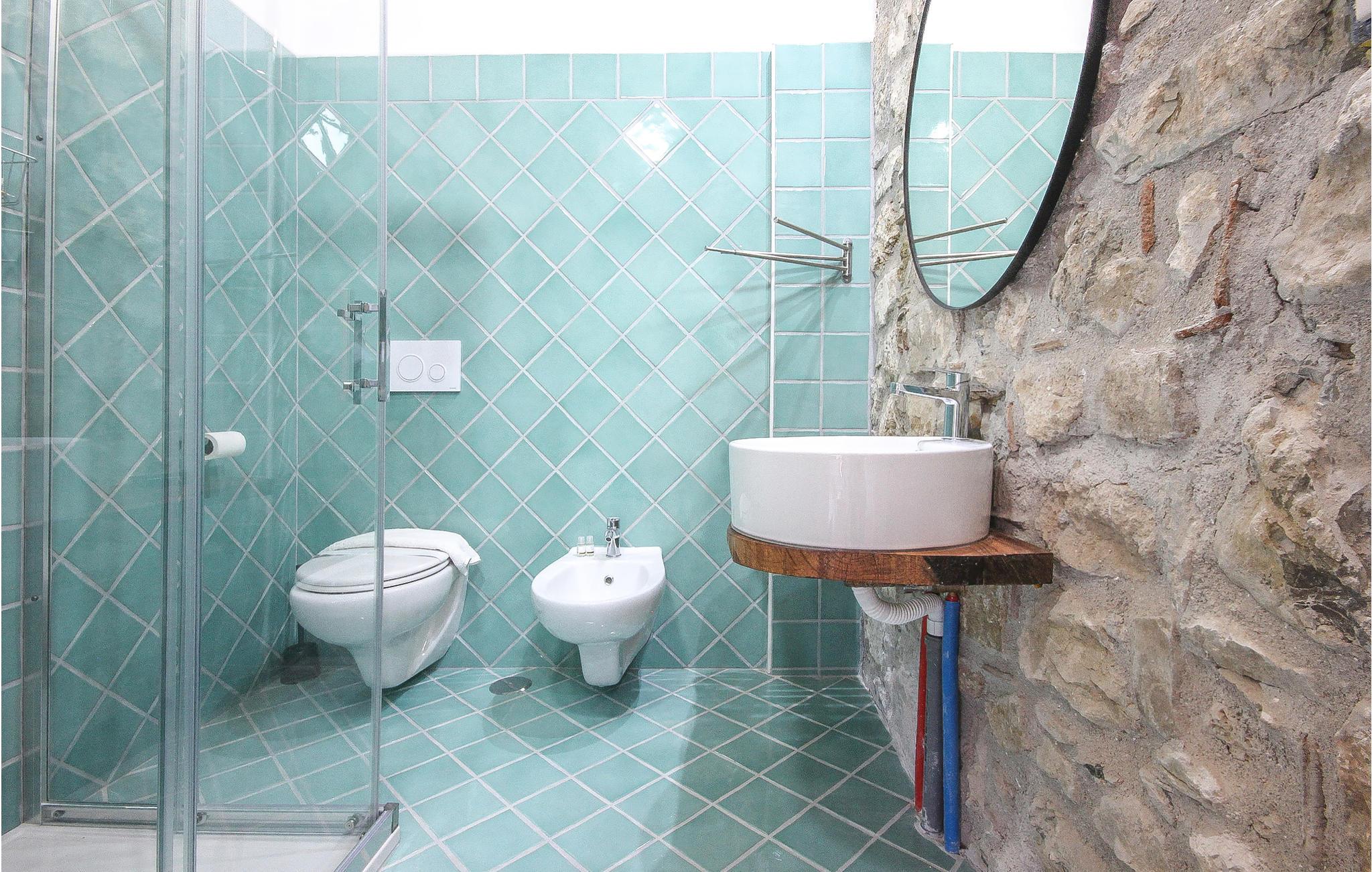Badeværelse (nr. 1) - WC. Varmt og koldt vand. Bruser