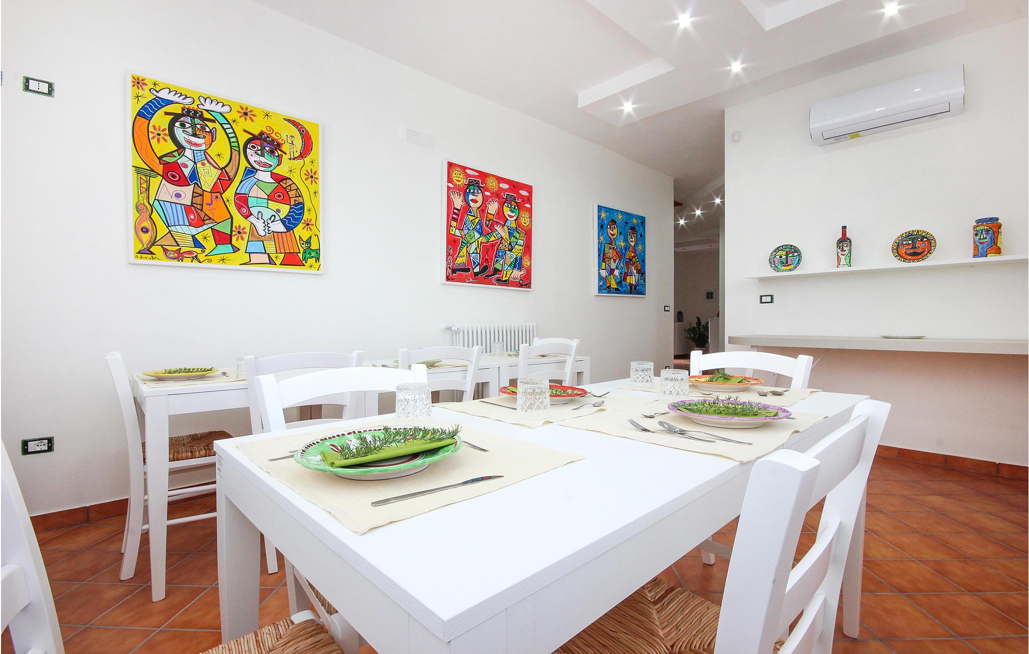 Her er den oplagte bolig til en ferie med flere familier og venner, som ønsker gode rammer til at samles og være hver for sig. Ejendommen består af en hovedbygning og tre udhuse. Interiøret er lyst og klassisk tidløst og giver jer mulighed for at slappe af om natten og tilbringe tid sammen om dagen. Flere terrasser står til rådighed fordelt på forskellige niveauer. I kan også tilberede lækre ferieretter på murstensgrillen og nyde maden på den overdækkede terrasse. Der er forskellige borde og siddepladser overalt på grunden, så I kan finde mange steder, hvor I kan nyde udsigten.