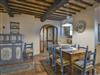 The entrance is on the ground floor and offers access to a spacious living room, from which there is also access to a furnished veranda overlooking the countryside. With a piano, satellite TV, DVD player, fireplace and dining area. On the same floor there is also a bathroom with shower, while a staircase leads to a separate gallery with a double bed. On another level is a second living room with fireplace and dining table, as well as a fully equipped kitchen (electric cooker, oven, microwave, dishwasher, refrigerator with freezer, toaster, kettle, coffee maker, blender, juicer and pizza oven) and a laundry room with washing machine and dryer.