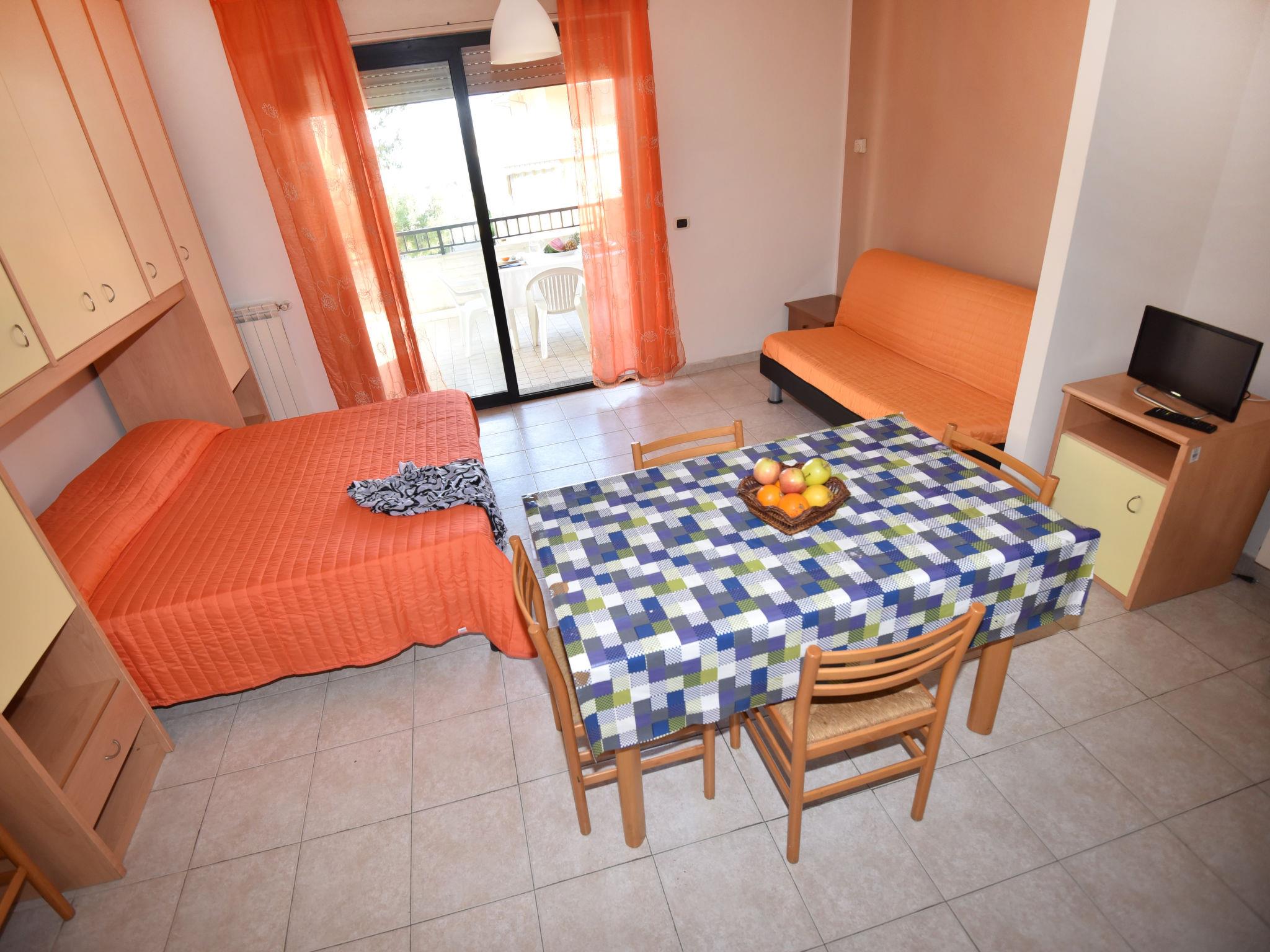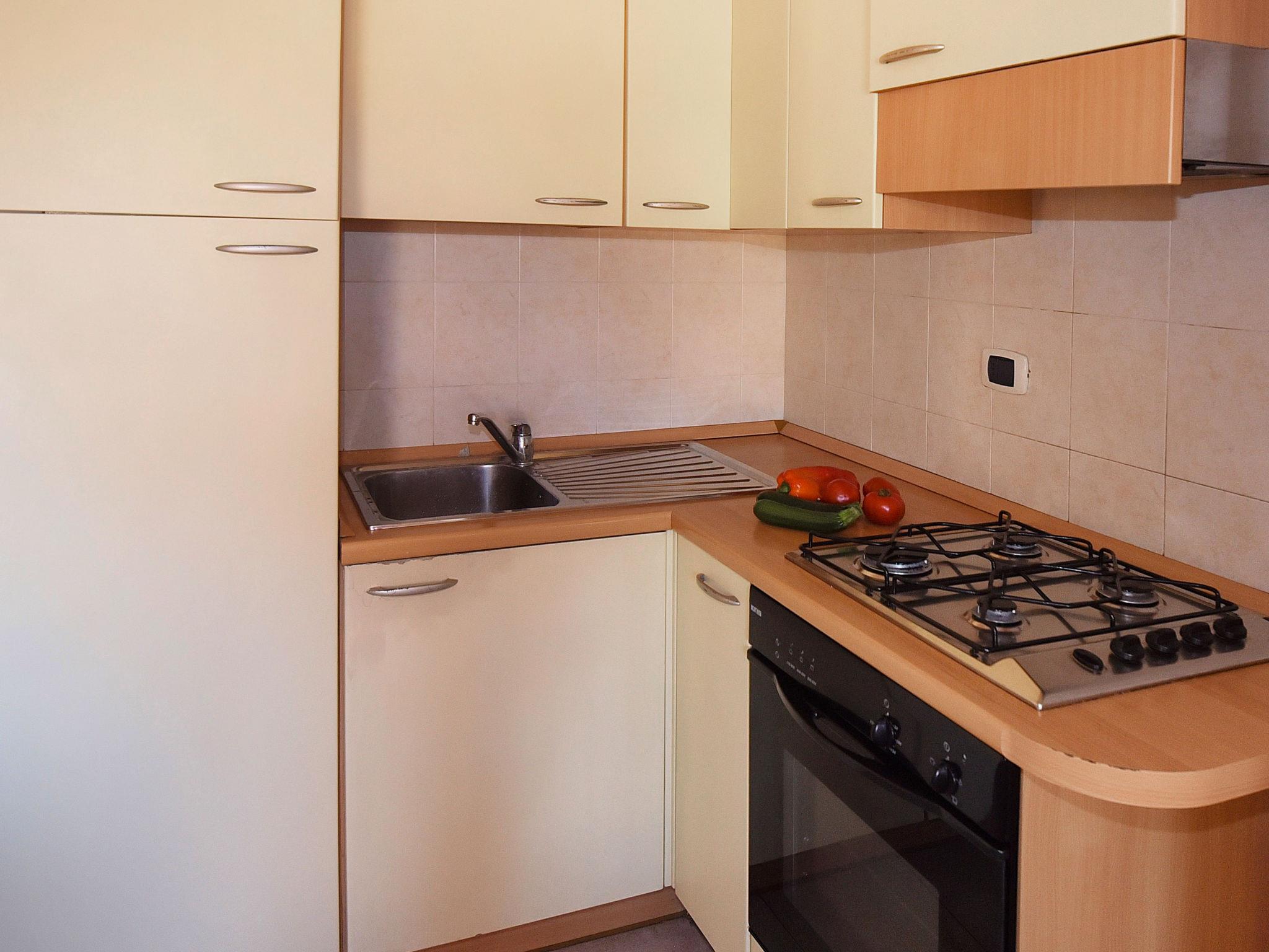 1-room studio 30 m2. Practical furnishings: living/dining room with 1 sofabed, 1 double bed and TV. Exit to the terrace. Kitchenette (4 hot plates, oven, freezer). Shower/bidet/WC. Balcony. Balcony furniture. View of the sea. Facilities: washing machine. Internet (WiFi, free). Maximum 1 pet/ dog allowed. IT067040B4QJRTH8OS