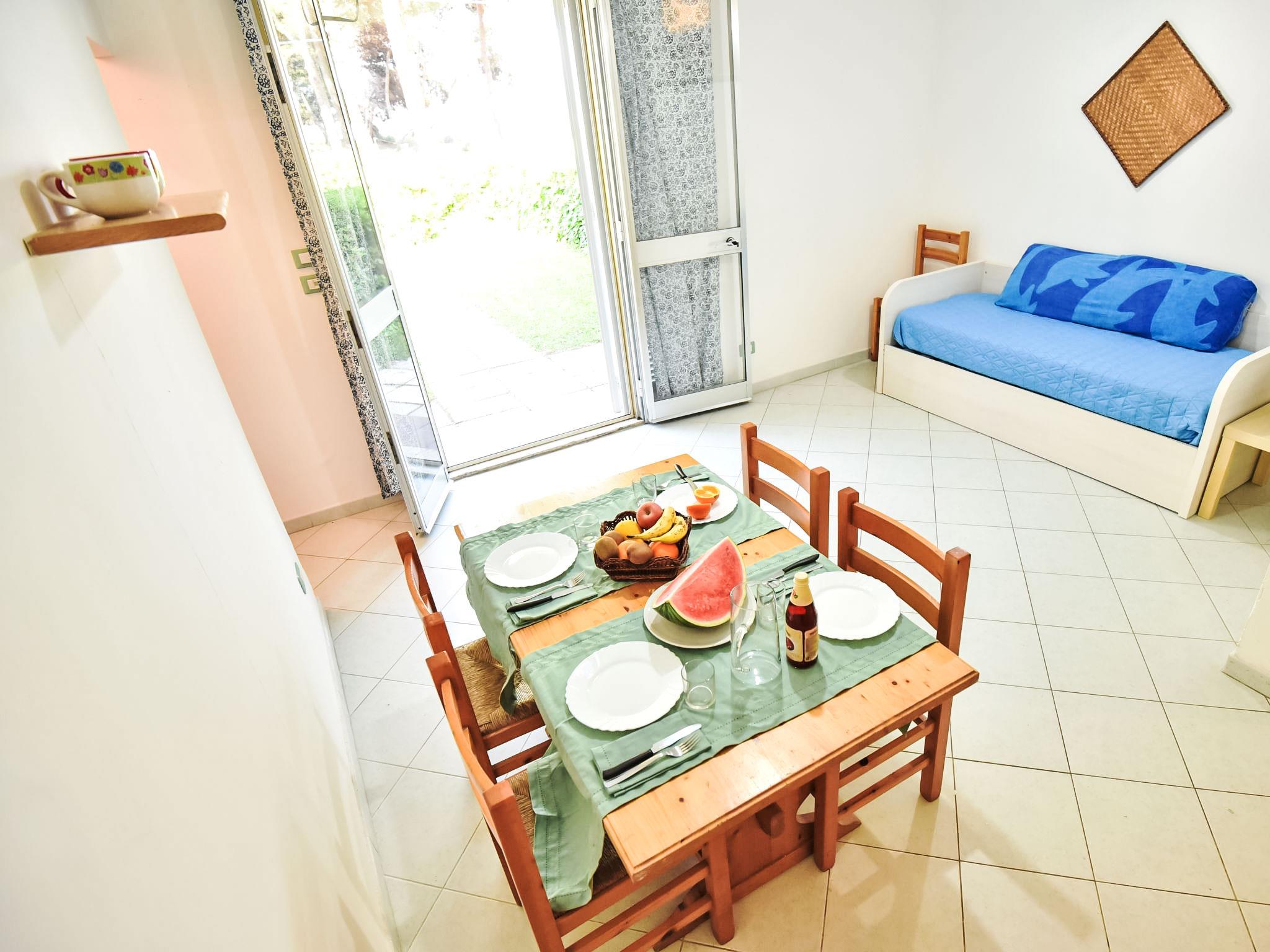 2-room apartment 45 m2, on the ground floor. Simple and practical furnishings: living/sleeping room with 1 sofabed, 1 pull-out bed and TV. 1 double bedroom. Small kitchen (4 hot plates, oven, freezer). Shower/bidet/WC. Garden. Terrace furniture. Facilities: washing machine. Internet (WiFi, free). Maximum 1 pet/ dog allowed. IT067040B4QJRTH8OS