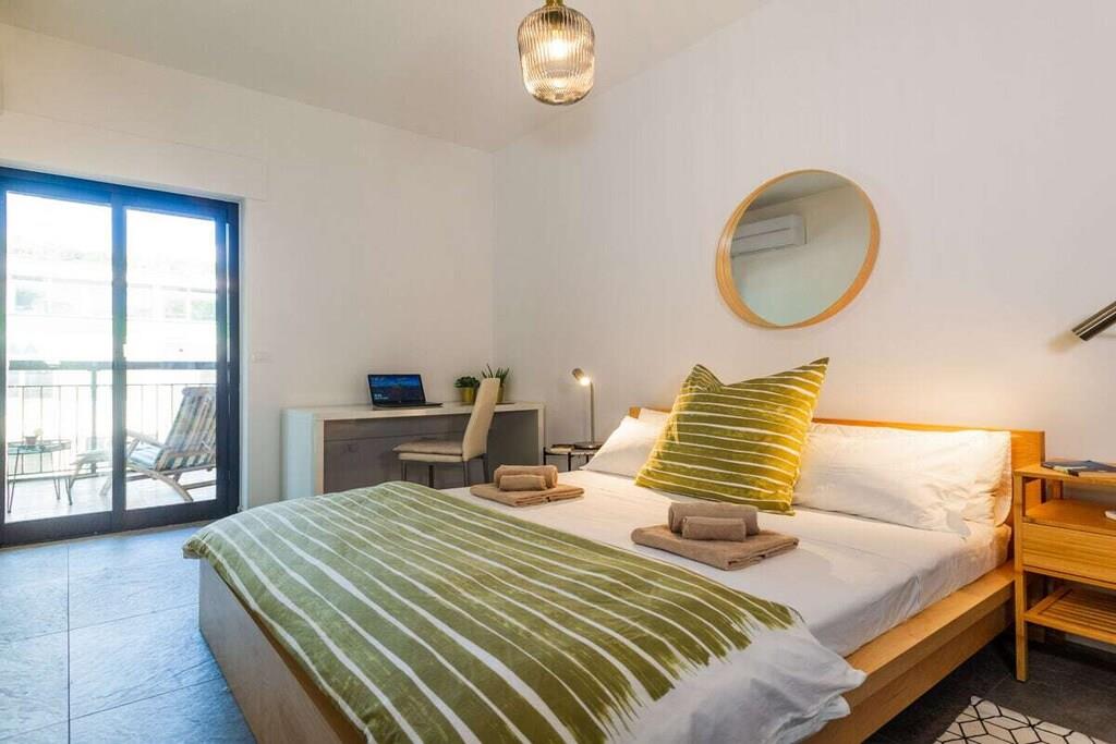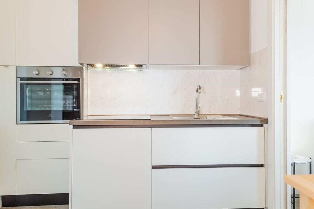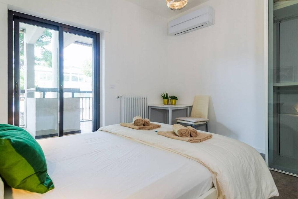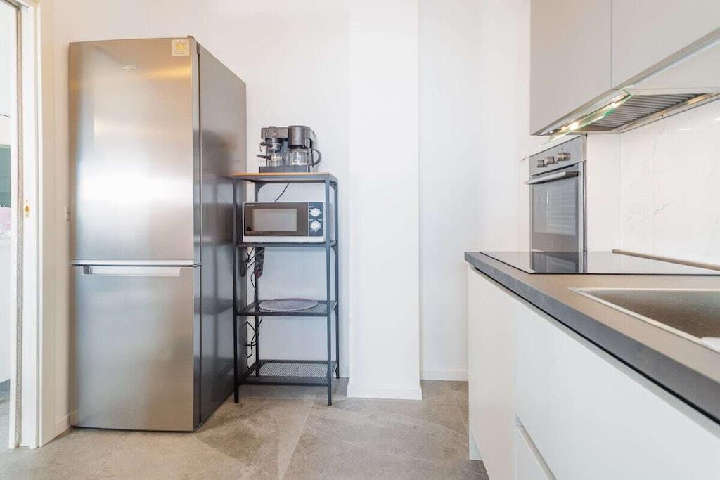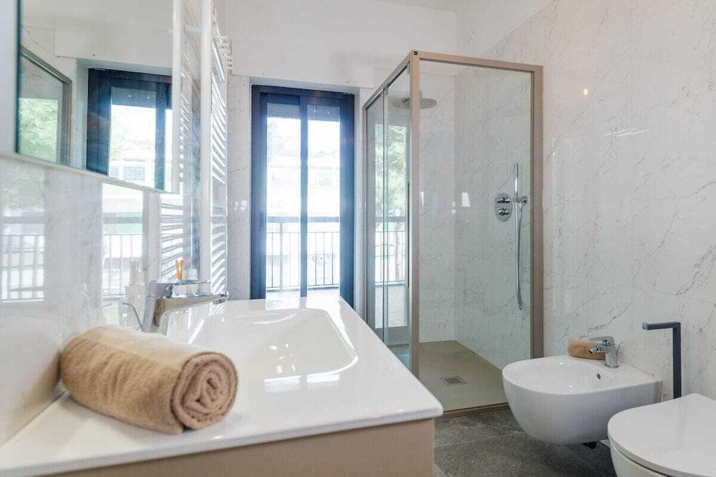 Sol, betagende udsigt, komfort og charme. Dette er blot nogle af de exceptionelle træk ved denne ferielejlighed ved havet i Silvi Marina, der har fået tilnavnet Adriaterhavets Perle på grund af sin charmerende beliggenhed ved foden af Abruzzo-bjergene, dens blidt skrånende sandstrand og den livlige aktivitet året rundt langs den maleriske strandpromenade. Denne eksklusive, komfortable ferielejlighed ligger på anden sal i en lille ejerlejlighed med kun tre enheder. Rummelige altaner omkranser de nyindrettede værelser på begge sider med udsigt over den beskyttede strand og havet på den ene side og den fyrretræsbeklædte promenade med udsigt over de frodige olivenlunde og vinmarker på den anden side. Lejligheden er tilgængelig via elevator eller trappe og åbner ud til en gang, der giver direkte adgang til de to soveværelser, badeværelset og opholdsstuen. De to soveværelser er møbleret med henholdsvis kingsize (200x180) og queensize (200x140) dobbeltsenge, store garderobeskabe og et skrivebord. De tilbyder direkte adgang til den rummelige sydvestvendte balkon med komfortable liggestole. En sovesofa af høj kvalitet (200x160) i stuen fuldender indkvarteringen for op til 6 personer. Morgenfri personer kan nyde solopgangen over havet på balkonen ud for stue- og spisestuen og hurtigt servere morgenmad via den korte gåtur fra det fuldt udstyrede køkken. Et induktionskomfur, ovn, mikrobølgeovn, opvaskemaskine og køleskab med et stort frostrum giver selv den mest ambitiøse hjemmekok alle muligheder. Stille klimaanlæg understøttet af en gaskedel garanterer behagelige temperaturer i opholds- og soveområderne, både sommer og vinter.