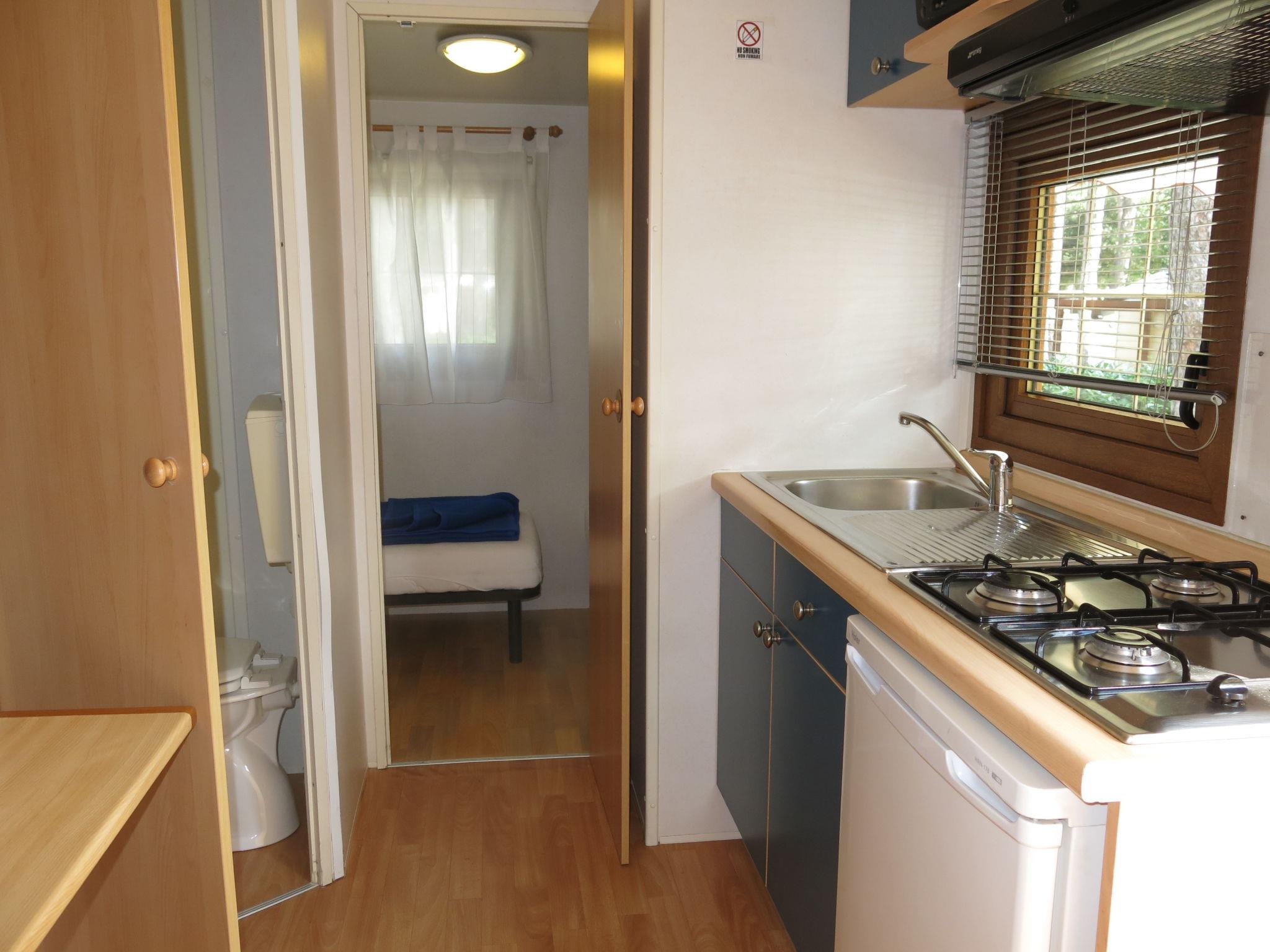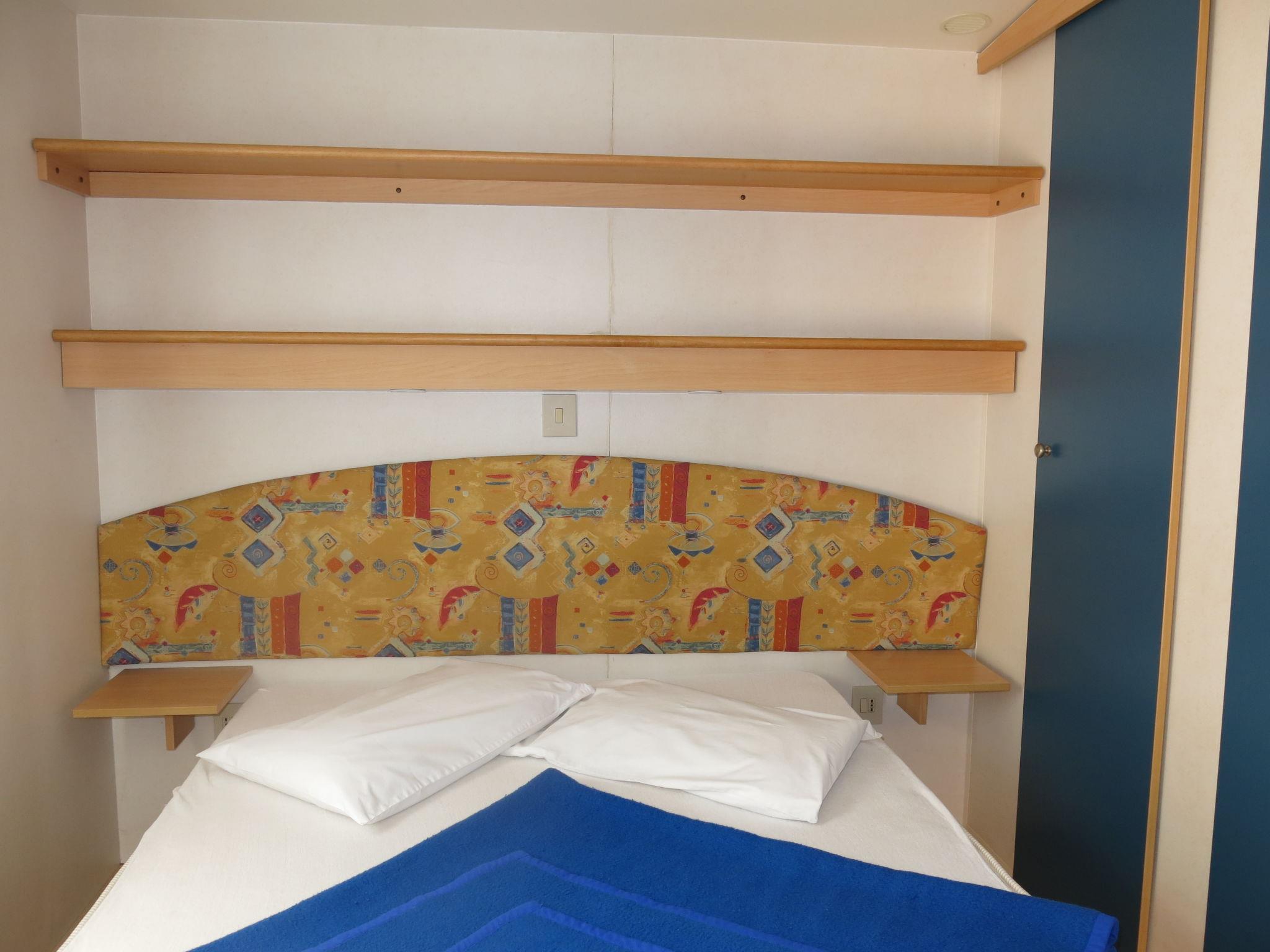 "Baia Comfort", 3-room mobile home 22 m2. Practical furnishings: living/dining room with dining table and digital TV. 1 room with 1 french bed (140 cm), separate WC. 1 room with 2 beds (70 cm). Kitchenette (4 gas rings). Shower/WC. Air-conditioning, forced-air heating (extra). Terrace roofed. Terrace furniture. Parking (1 car). Please note: non-smokers only. Maximum 2 small pets/ dogs allowed. IT032001B169XD3QUG