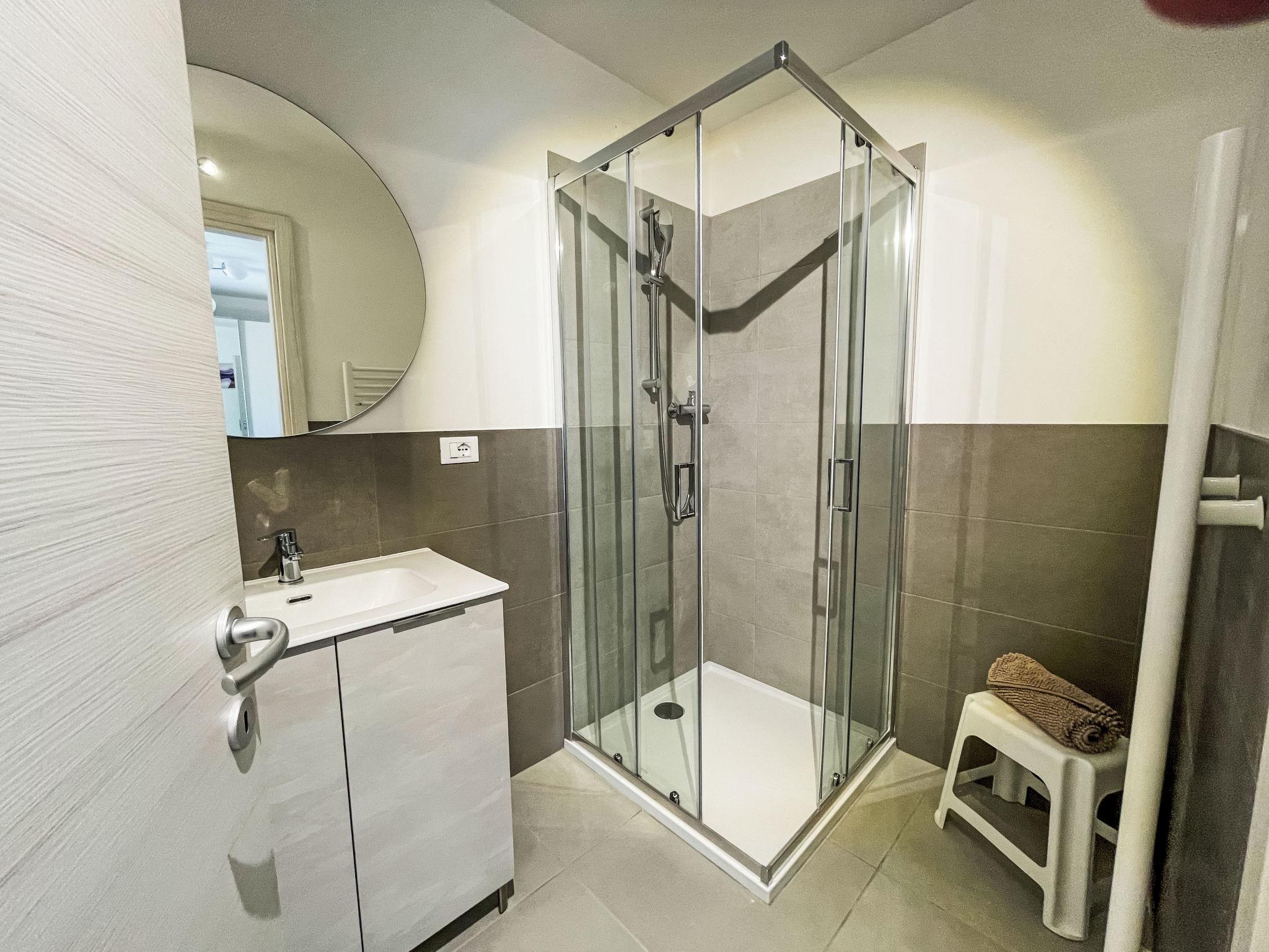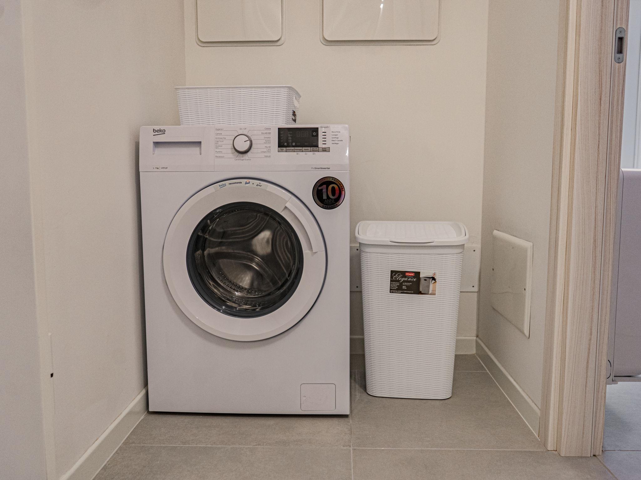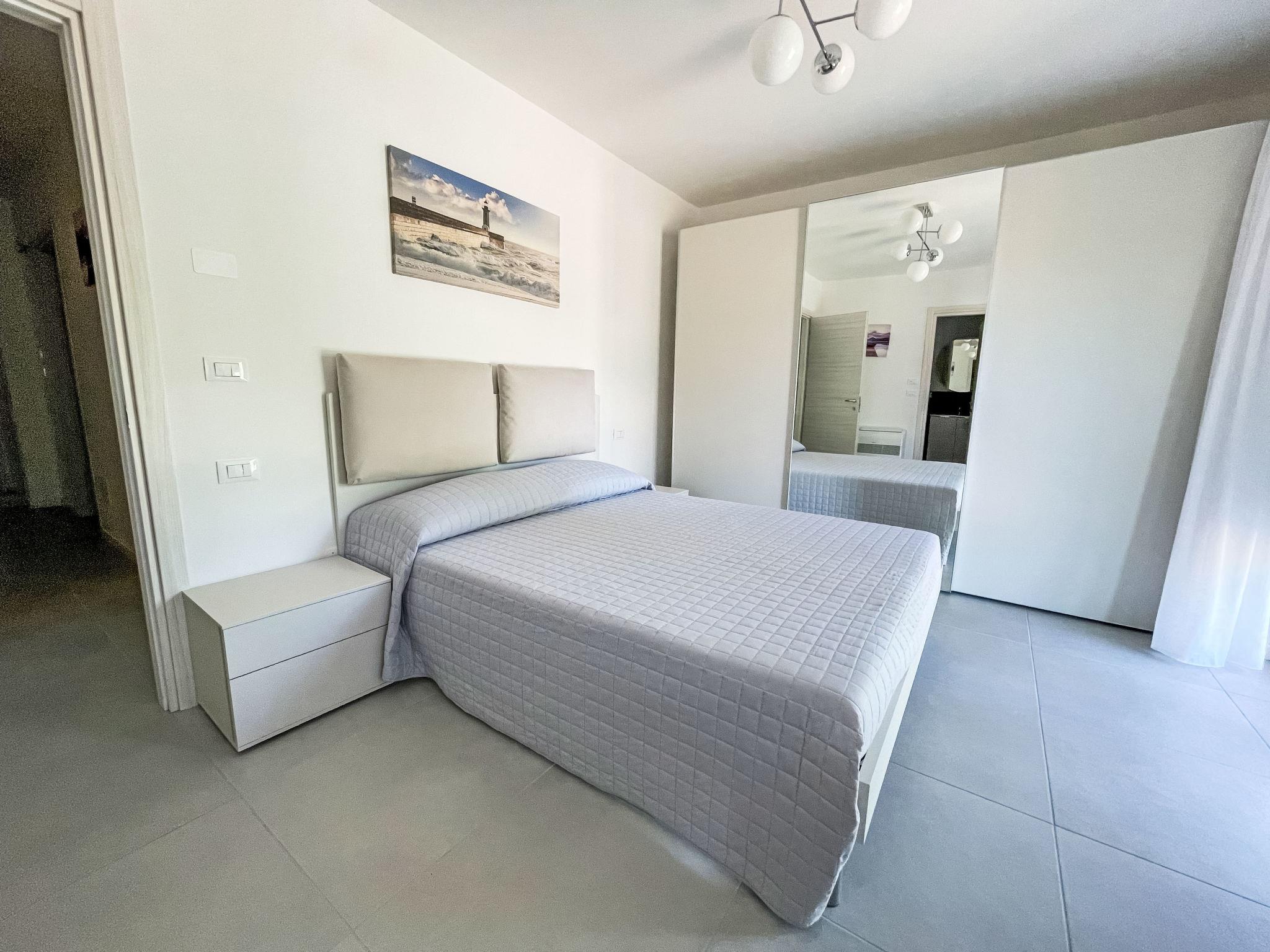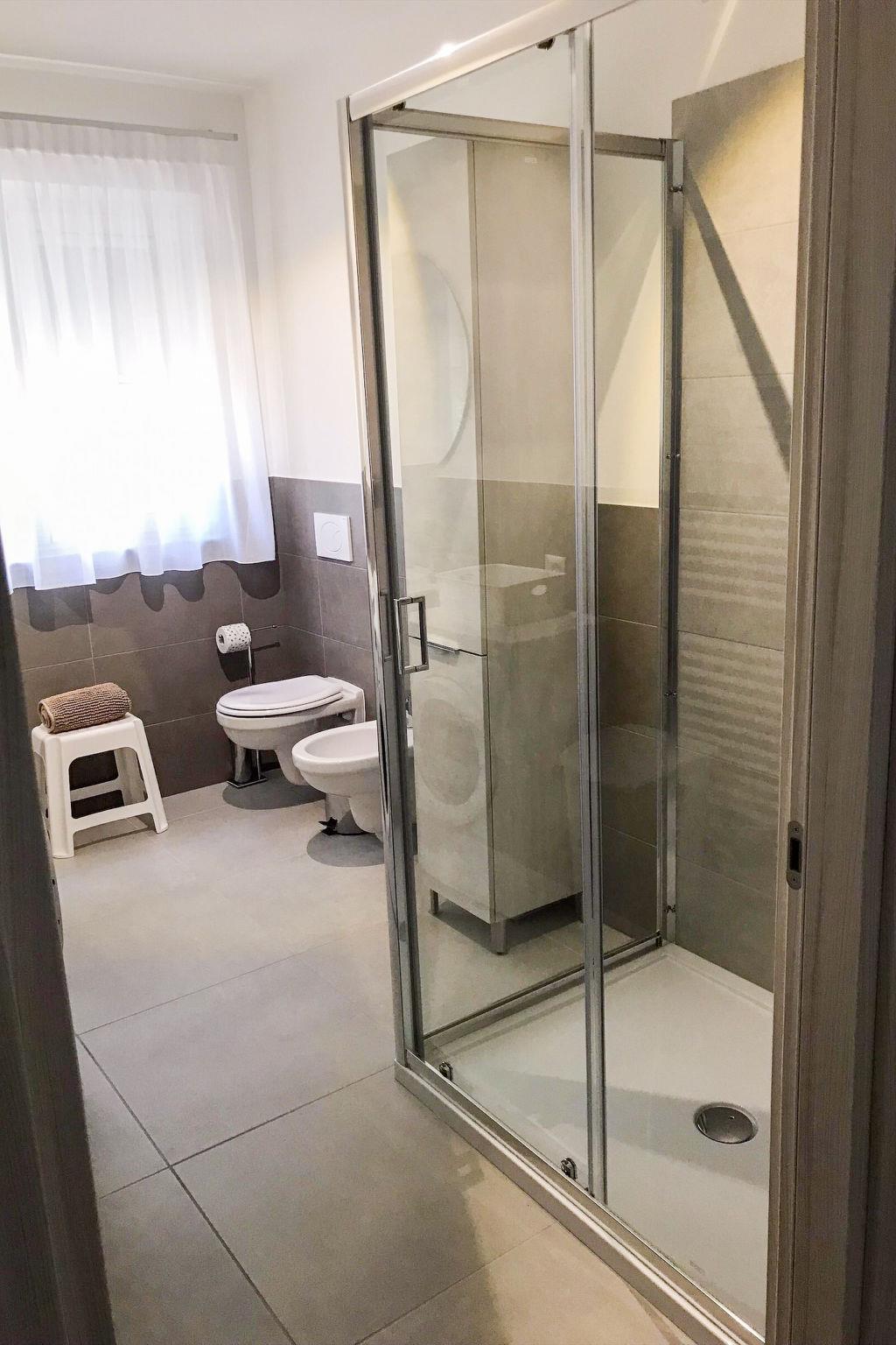 "Residence Mare Azzurro, App. Pineta", 3-room apartment 85 m2 on 1st floor. Spacious and bright, modern furnishings: living/sleeping room with 1 double sofabed, dining table and satellite TV. 1 double bedroom with shower/WC. 1 room with 2 beds. Kitchenette (oven, dishwasher, 4 gas rings, microwave, freezer, electric coffee machine). Shower/bidet/WC. Air-conditioning, forced-air heating. 2 small balconies. Facilities: washing machine, baby cot for up to 2 year olds (extra). Internet (WiFi, extra). Parking (1 car) at the house. Please note: non-smokers only. This flat is located in the new small residence with a total of 6 flats, approx. 50 metres from Camping Village Mare Pineta. Lift in the residence. IT032001B42GHHLKOF