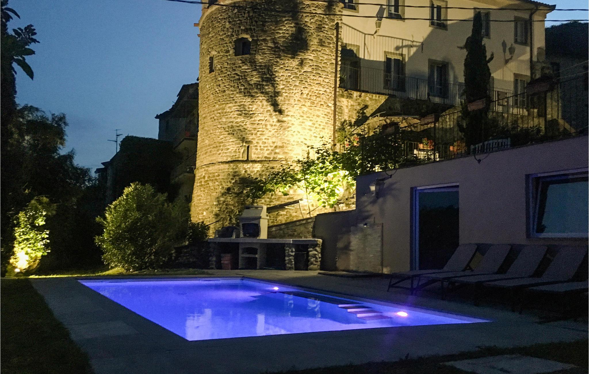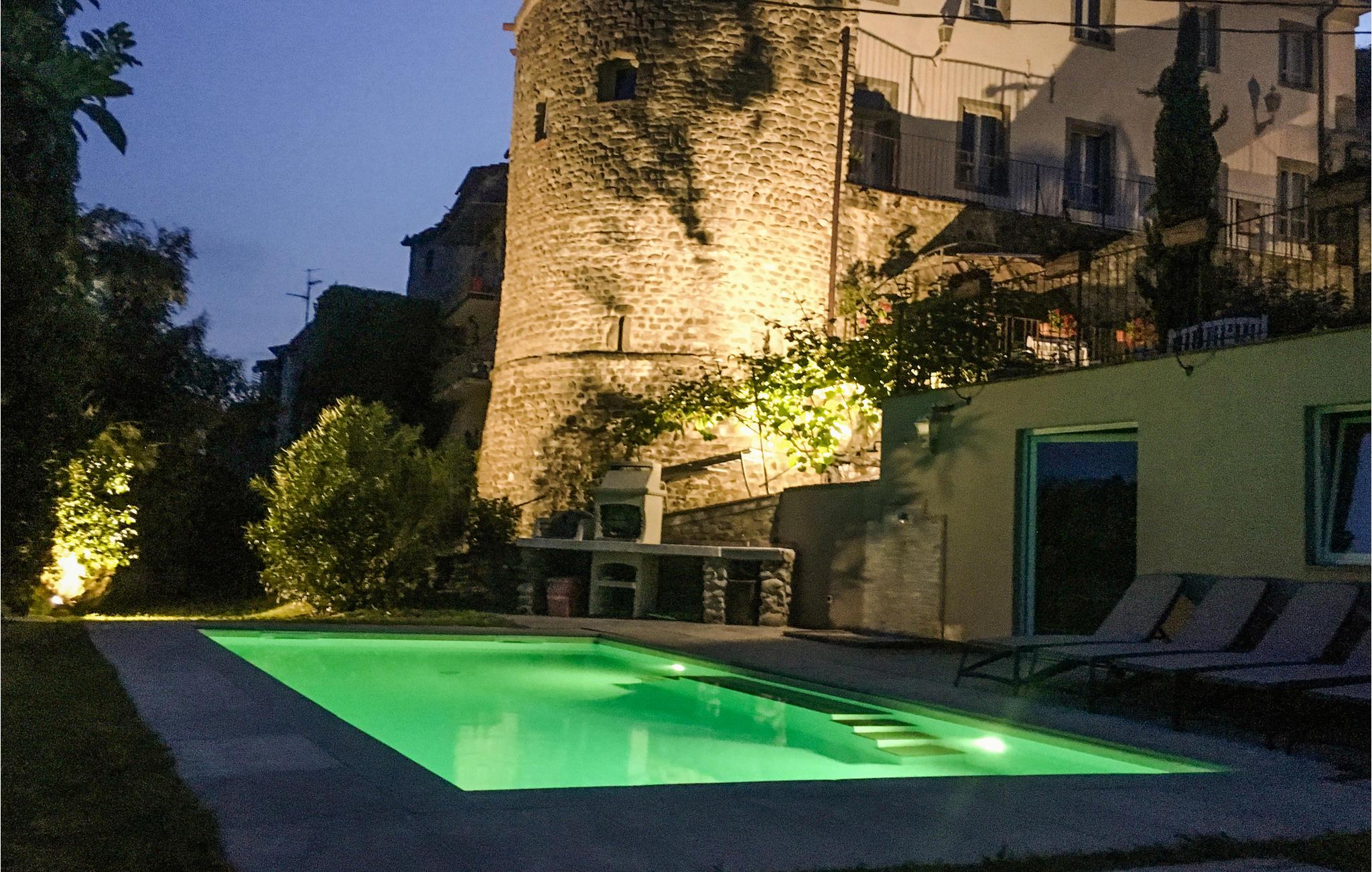 Dette vidunderlige, originale feriehus i flere etager byder velkommen midt i et landskab af skovklædte bakker. Originale elementer fra det gamle hus er bevaret uden at gå på kompromis med moderne faciliteter, så komfort og historisk atmosfære går sammen til en æstetisk helhed. Med sine mange værelser tilbyder huset de ideelle rammer for et afslappende ophold for op til flere familier.