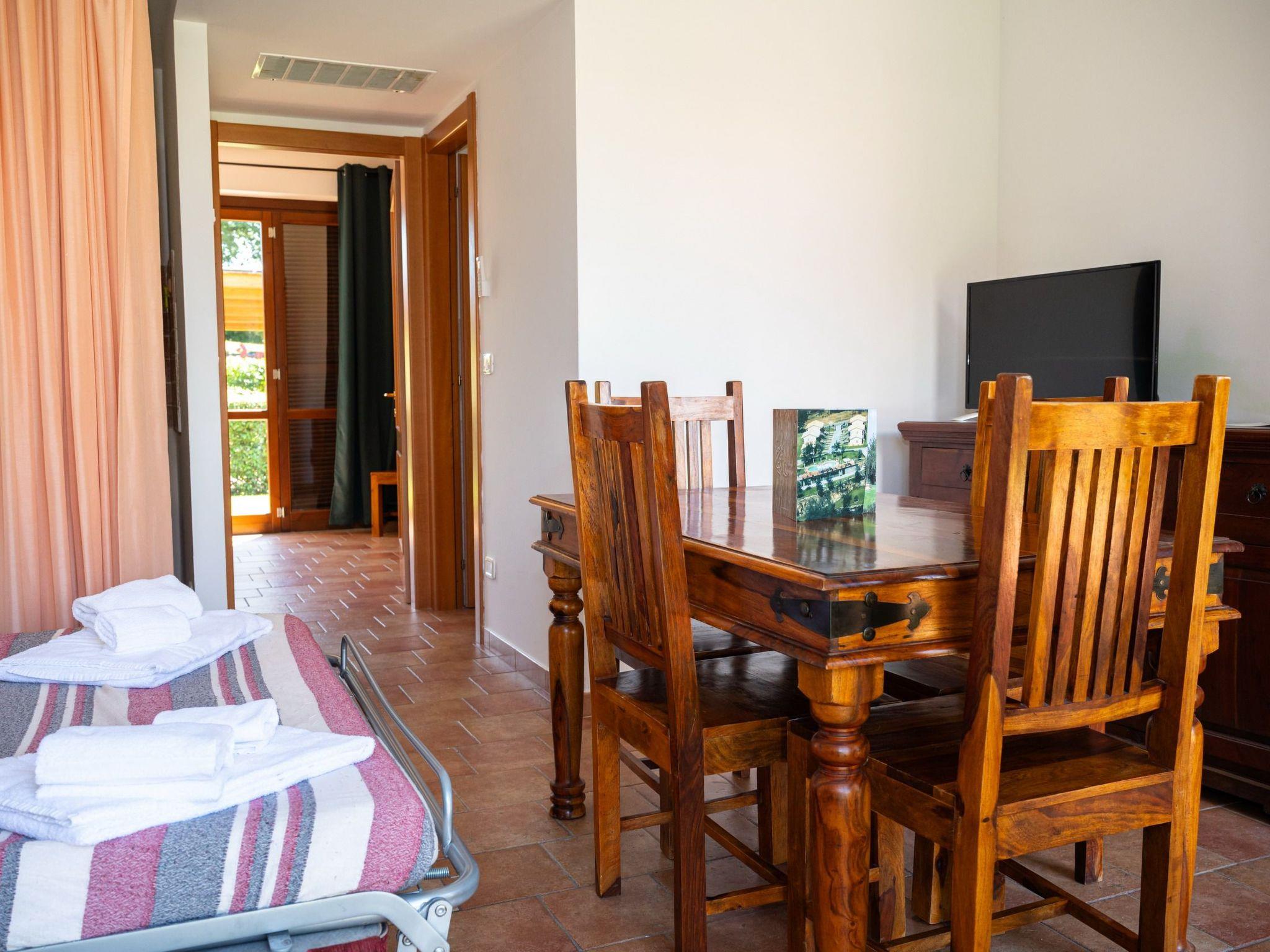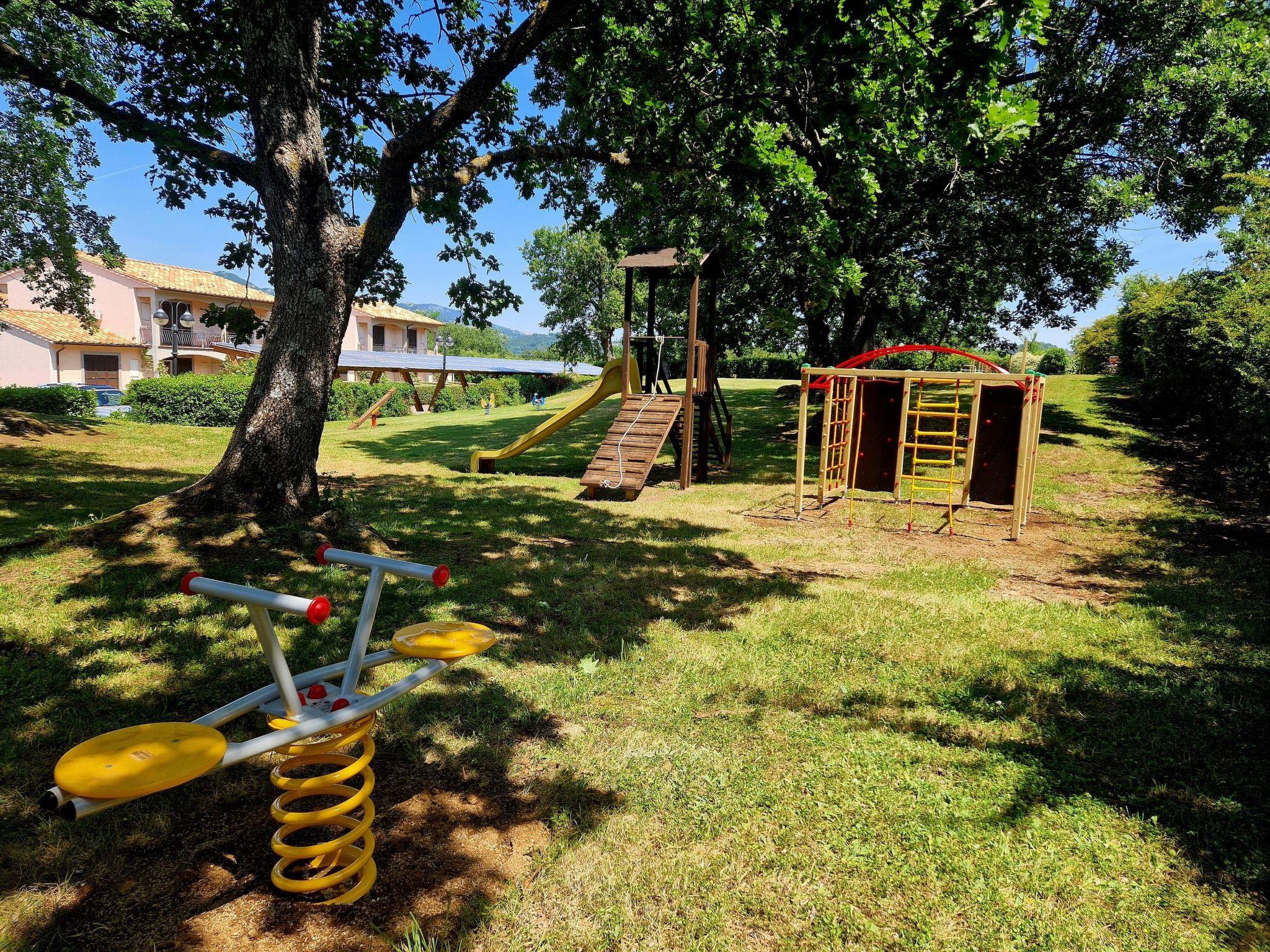 All'complex extends over a two-hectare park, embraced by oak woods, which promises moments of serenity and contact with nature. For your relaxation and enjoyment, there is a large swimming pool for adults (20x8 metres), a children's pool, a playground, a'area barbecue e un parcheggio custodito per 80 auto. Il centro benessere all'inside the complex offers a Turkish bath, a Jacuzzi, and a massage room with chromotherapy, guaranteeing a'esperienza rilassante e rigenerante.