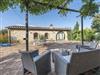 Directly in front of the house, with direct access from the living room, is the covered terrace with table and chairs.