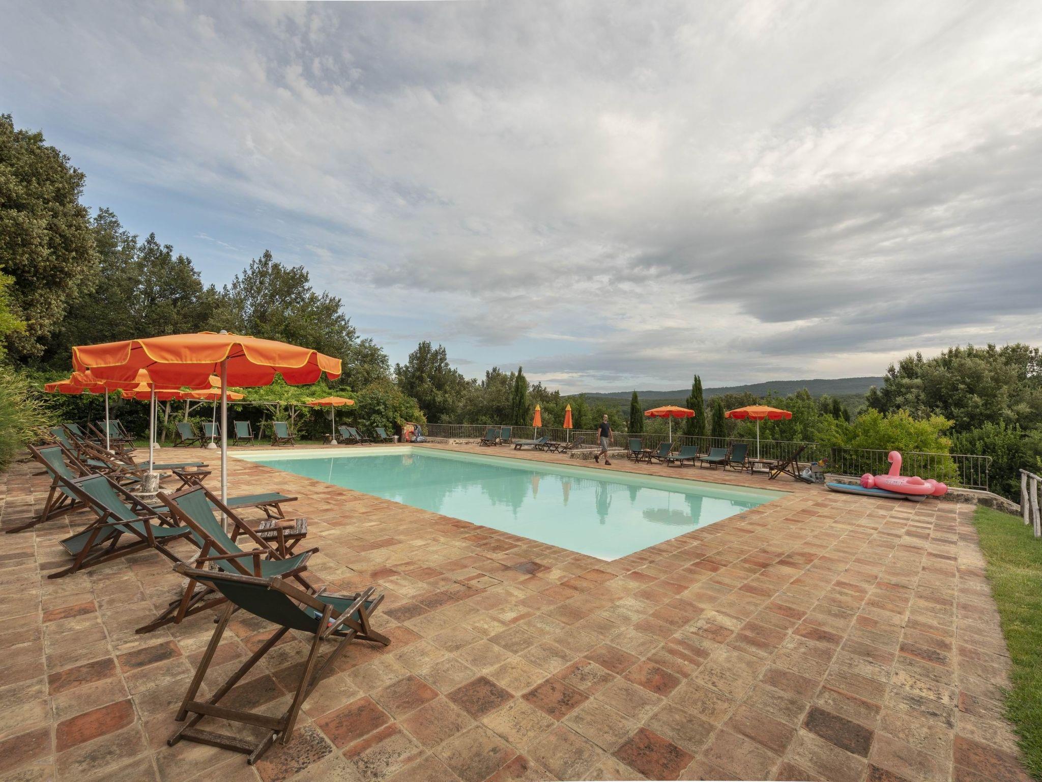Even the outdoor spaces have been designed to offer guests maximum comfort: a large swimming pool (16x8, open from May to October, 1 to 1.50 m deep), surrounded by a tiled solarium with terracotta floors, equipped with parasols and deckchairs; the bocce court, barbecue area and covered parking area have been skilfully adapted to the rustic setting. Communal washing machine available.