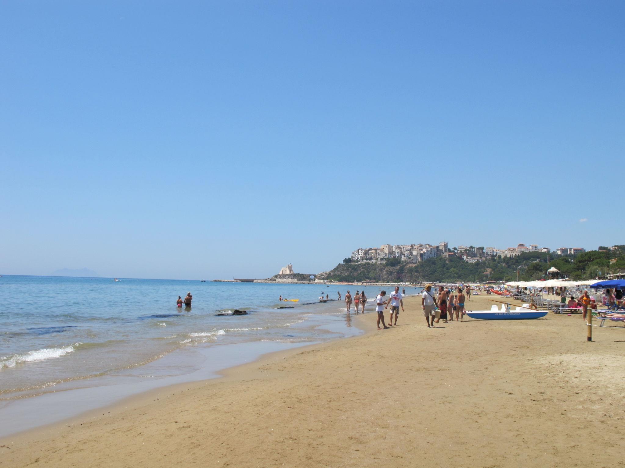 Sperlonga: Cosy, comfortable resort "Costa di Kair ed Din". 67 apartments in the property. 700 m from the centre of Sperlonga, in a sunny, elevated position on a slope, 1.6 km from the sea, 1.6 km from the beach. For shared use: large garden with plants and flowers, swimming pool (20 x 8 m, depth 80 - 300 cm, seasonal availability: 30.May. - 25.Sep. pool opening hours: 10:00-14:00 and 15:00-19:00). WC in the pool area, outdoor shower, tennis, floodlit (extra), children's playground (slide, swing). In the complex: reception, bar, WiFi, washing machine (for shared use, extra). Stepped path to the house. Parking. Shop 700 m, grocery, supermarket, bus stop 1 km, railway station "Formia (Roma-Napoli)" 19 km, ferry "Isole Pontine" 19 km, sandy beach 2 km. Nearby attractions: Gaeta 12 km, Terracina 17 km, Itri 14 km, San Felice Circeo 32 km. Please note: Loading and unloading of baggage is possible at the holiday house. The photograph shows a typical example. Obligation to wear bathing caps.