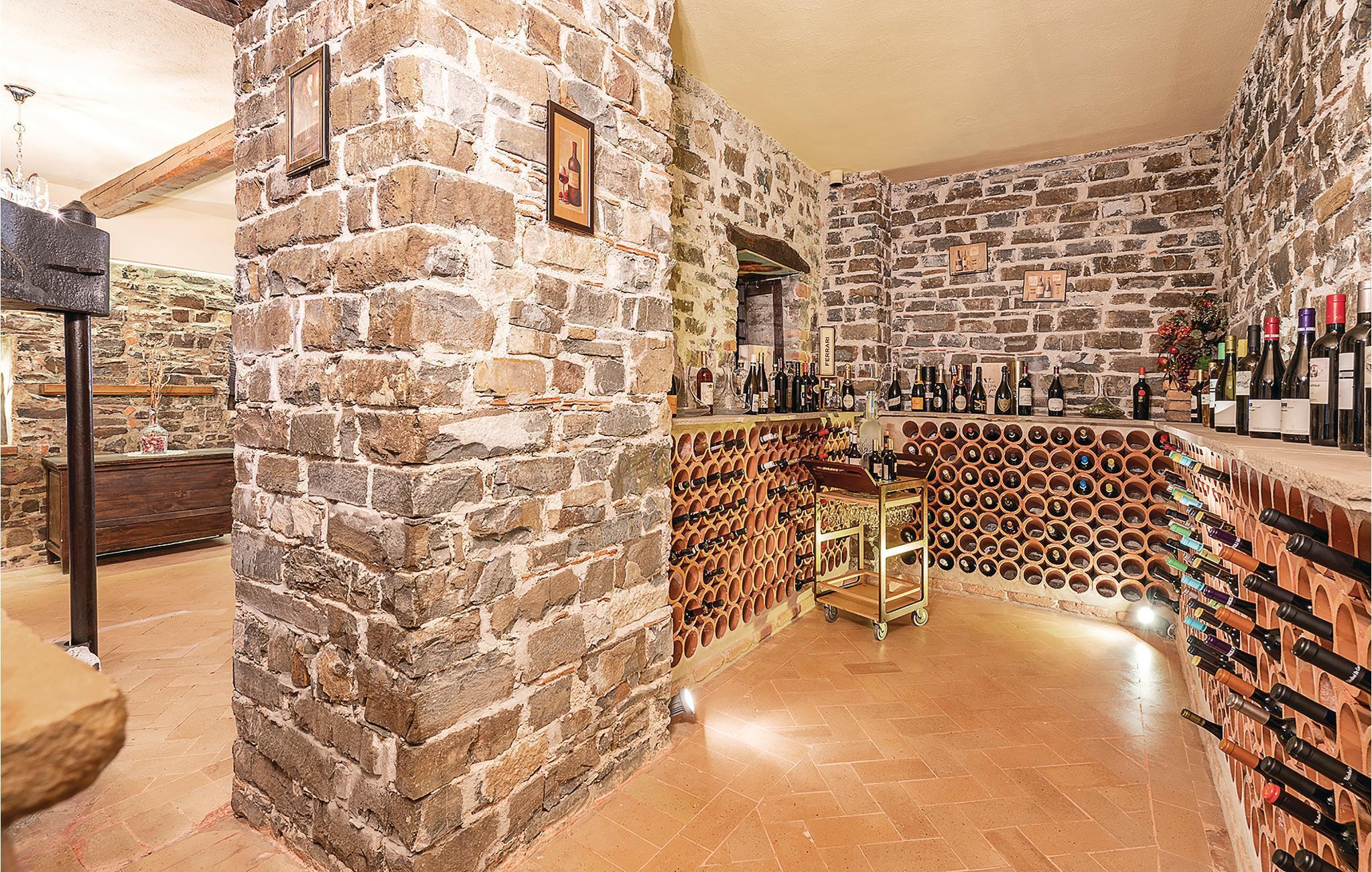 På grunden, ca. 30 m fra huset, er der en udendørs pool til fælles brug med gæsterne i de andre 6 huse. Villaen er på to niveauer. I stueetagen er der en stor spisestue med stenvægge og buer og en gammel stenmøllesten, der tidligere blev brugt til at fremstille olivenolie. Vinkælderen beriget med lokale vine og likører og en opholdsstue med pejs er især værdsat. Solterrasser og udendørs områder udstyret til afslapning.