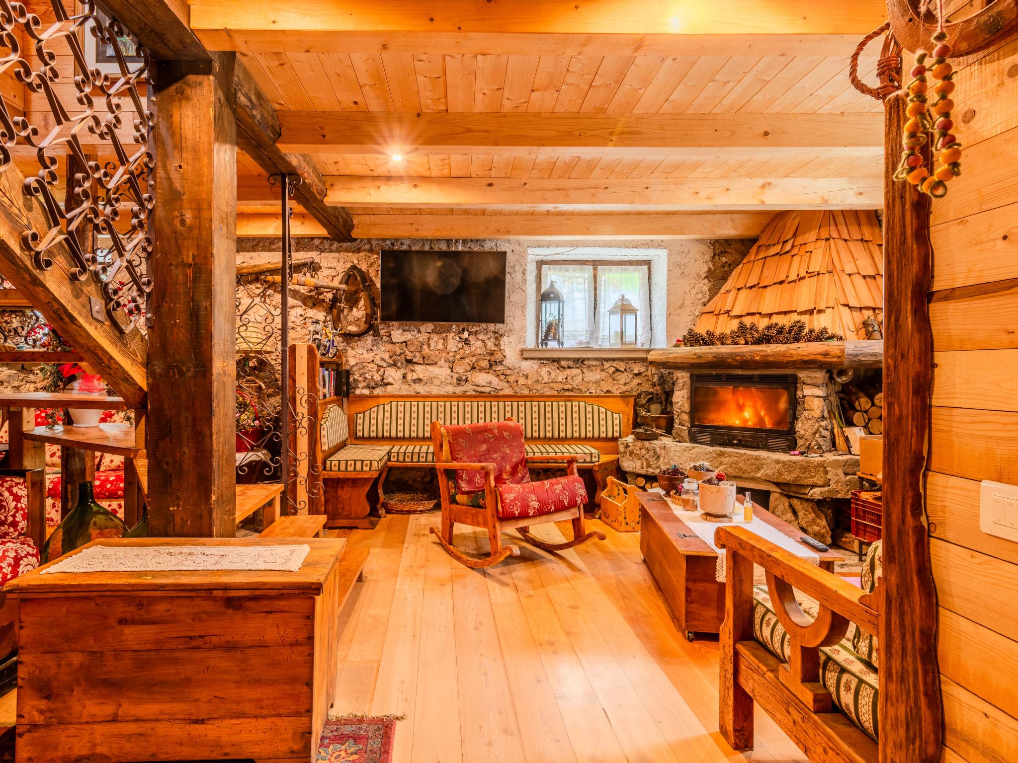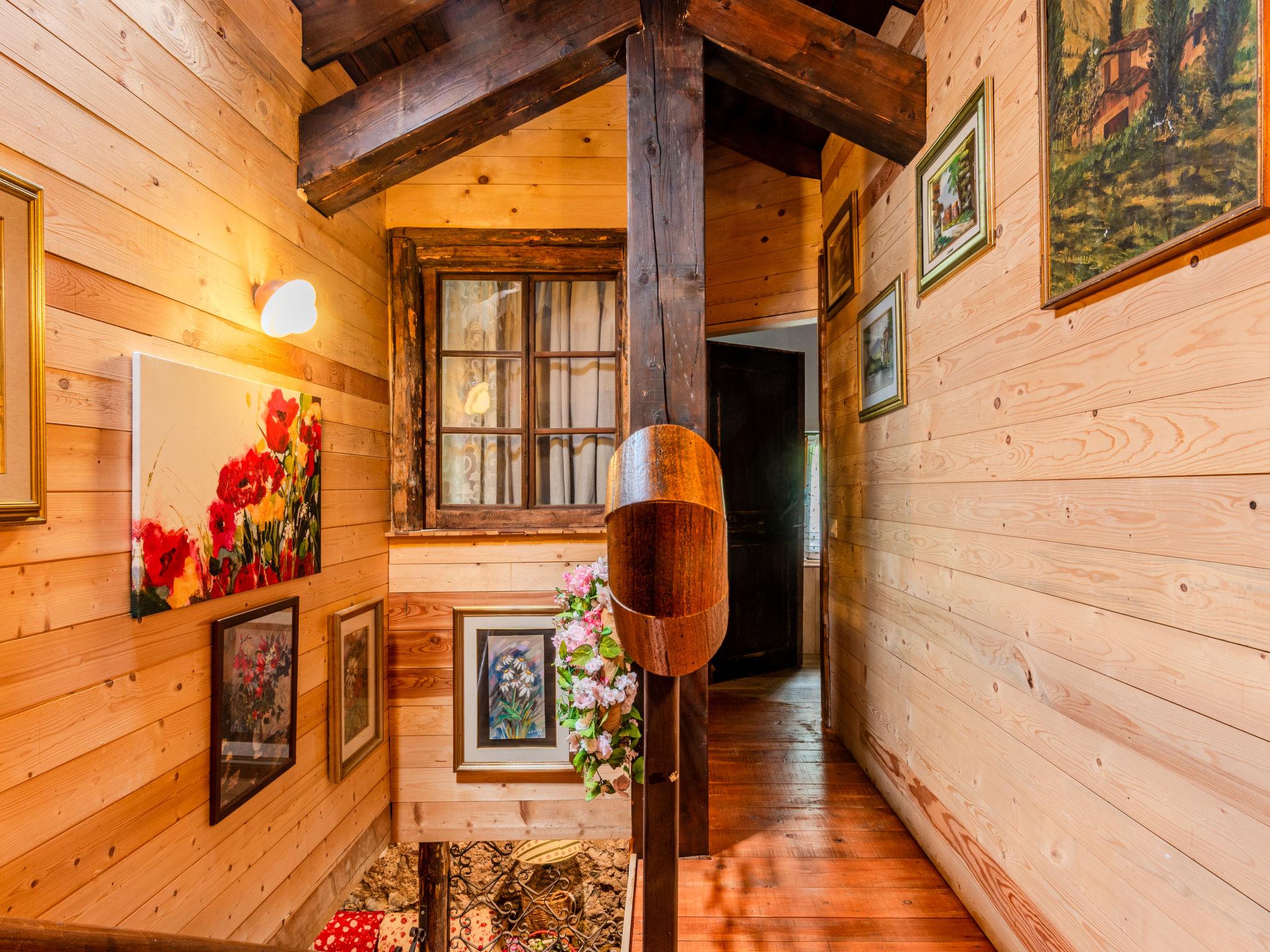 CERANA 1 km from TRE VILLE: Very cosy, rustic chalet "Baita Ballardini", 2 storeys, detached, surrounded by trees and meadows. In the district of Cerana, 2 km from the centre of Ragoli, in a secluded, sunny position on top of a hill, 20 m from the edge of the forest, 25 m from the lake, 22 km from the skiing area, 2 km from the river, in the woods, south-east facing position. For shared use: natural state property, lawn for sunbathing, beautiful garden to relax. In the house: storage room for bicycles, storage room for skis, burglar alarm system, laundry (extra). Linen change weekly (suppl. charge extra). Towel change weekly (suppl. charge extra). Room cleaning weekly on request (extra). House maid on request (extra). Cook on request. Bread roll service and breakfast possible on request (extra). Storeroom available. Parking (for 3 cars) at the house. Grocery 1 km, supermarket 1 km, restaurant 1 km, bar 1 km, pedestrian zone 1 km, bicycle rental 1 km, bus stop 1 km, railway station "Trento" 55 km, rocky beach "Fiume Sarche" 2 km, lake di Garda 35 km. Walking paths from the house 10 m, cycle lane 1 km, slopes 22 km, ski rental 22 km. Nearby attractions: Bolbenolandia Ski Family Park 7 km, Caderzone Golf Club and Therme 17 km, Palestra di Roccia Preore 5.1 km, Valle del Chiese 22 km, Stazione dei Bus di Tione 5.7 km, Città di Trento 45 km. Well-known ski regions can easily be reached: Pista da Scii di Bolbeno 7 km, Madonna di Campiglio 35 km, Pinzolo 30 km. Well-known lakes can easily be reached: Lago di Garda 30 km, Lago di Molveno 20 km. Hiking paths: Cycle Lane Madonna di Campiglio-Riva D.G 3 km, Sentieri Ferrati delle Falesie 9 km. Please note: guarded residence. The owner lives on the same property. Owner uses some rooms in the house.
