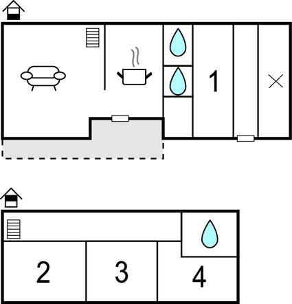 Opholdsstue/køkken - 2 Sovepladser. (Sofa, madras eller lignende).