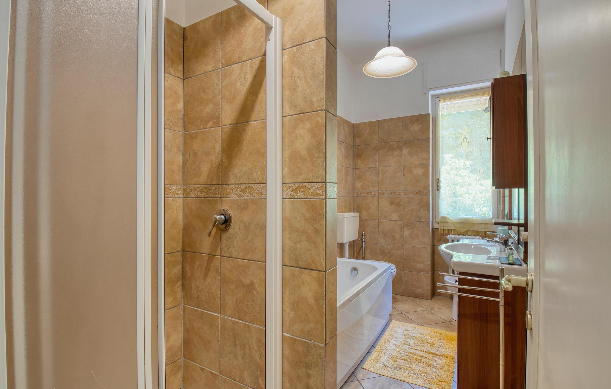 Badeværelse (nr. 1) - WC. Varmt og koldt vand. Bruser og badekar