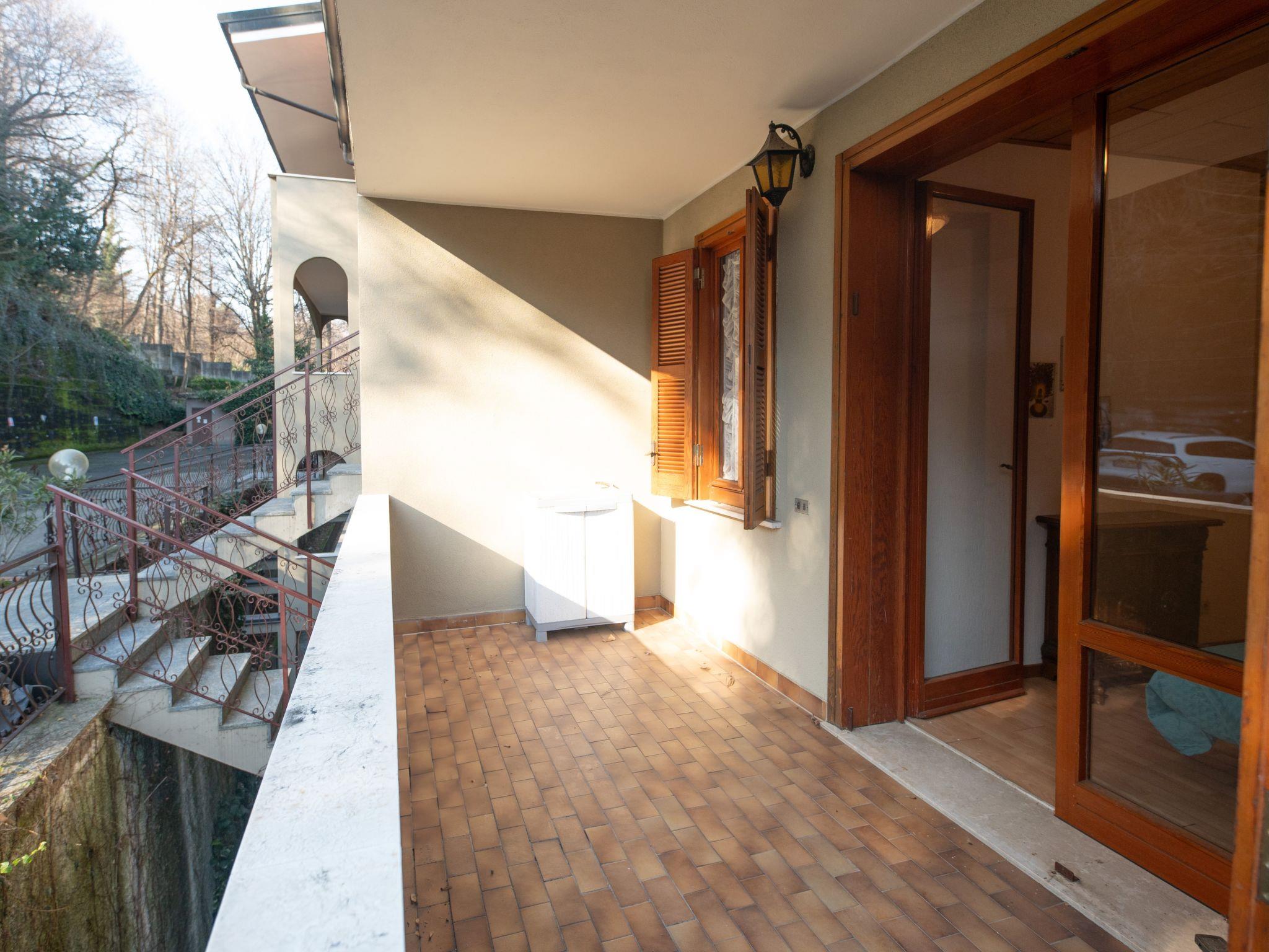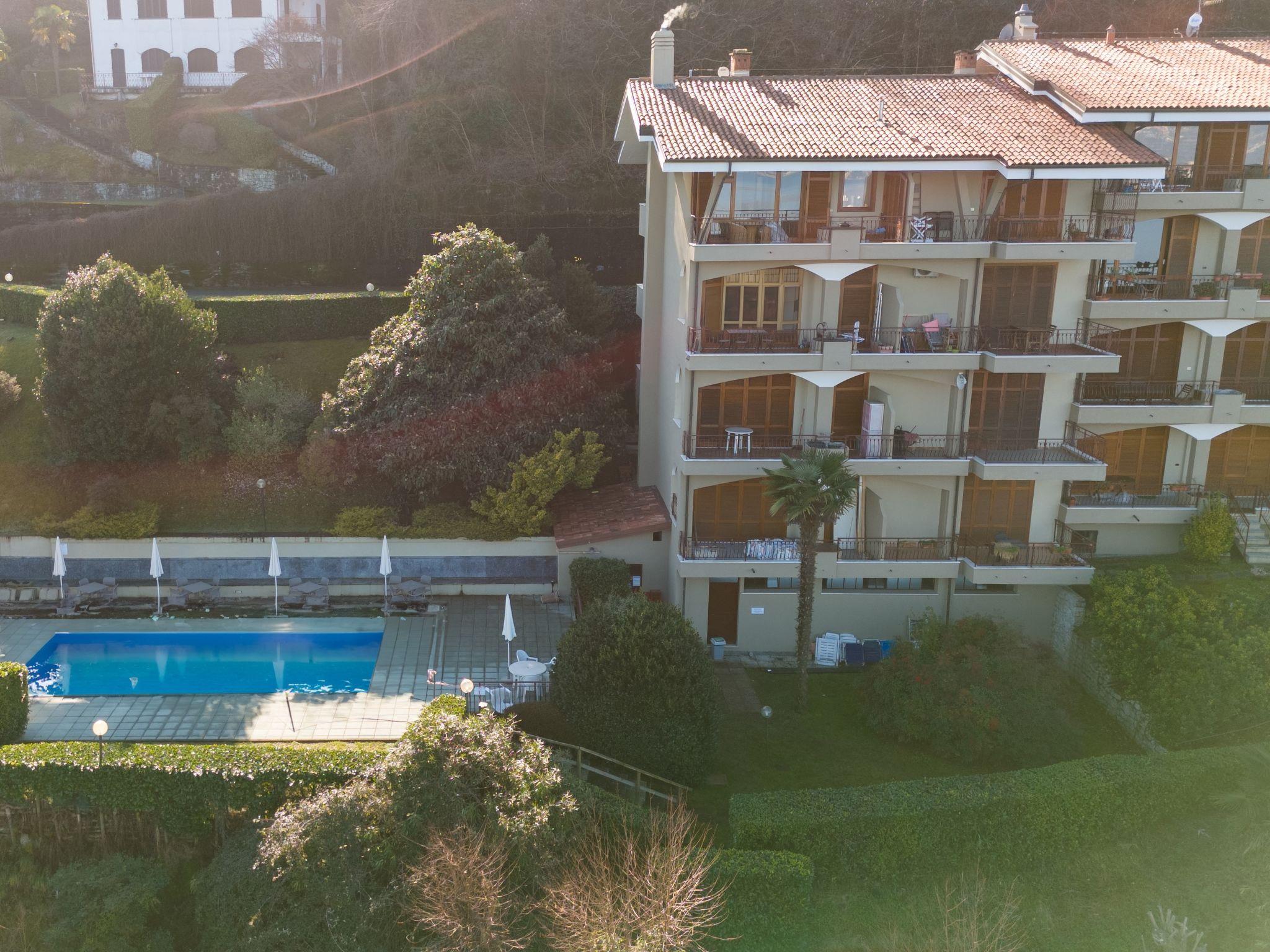 Apartment block "Endine", 4 storeys. 2.5 km from the centre of Stresa, in an elevated position on a slope, 2 km from the lake, 2 km from the beach, in a cul-de-sac. For shared use: swimming pool (12 x 6 m, seasonal availability: 01.Jun. - 15.Sep.). Outdoor shower. Supermarket 3 km, restaurant 2.5 km, bar 2.5 km, bus stop 2.5 km, railway station "Stresa" 3.7 km. Golf course (18 hole) 7 km. Please note: car recommended. Railway line 30 m from the property.