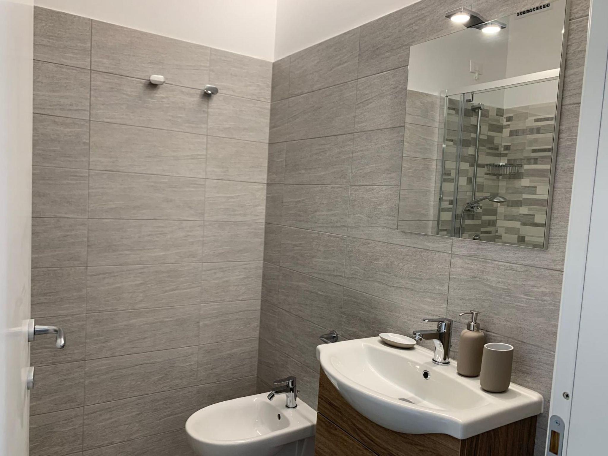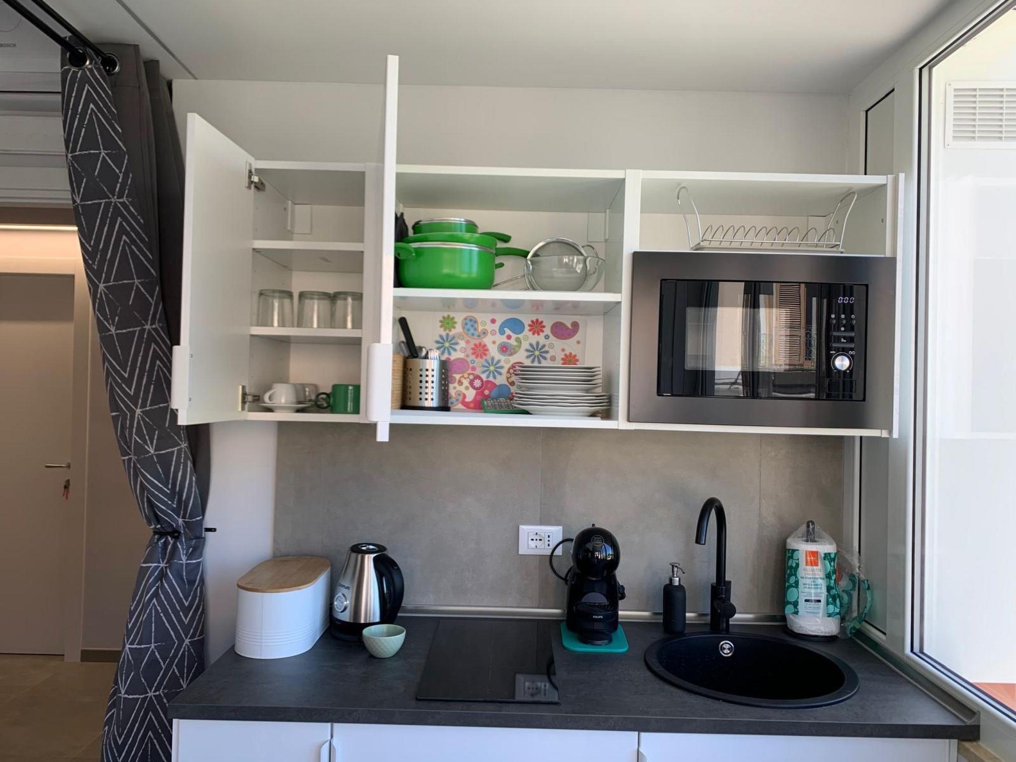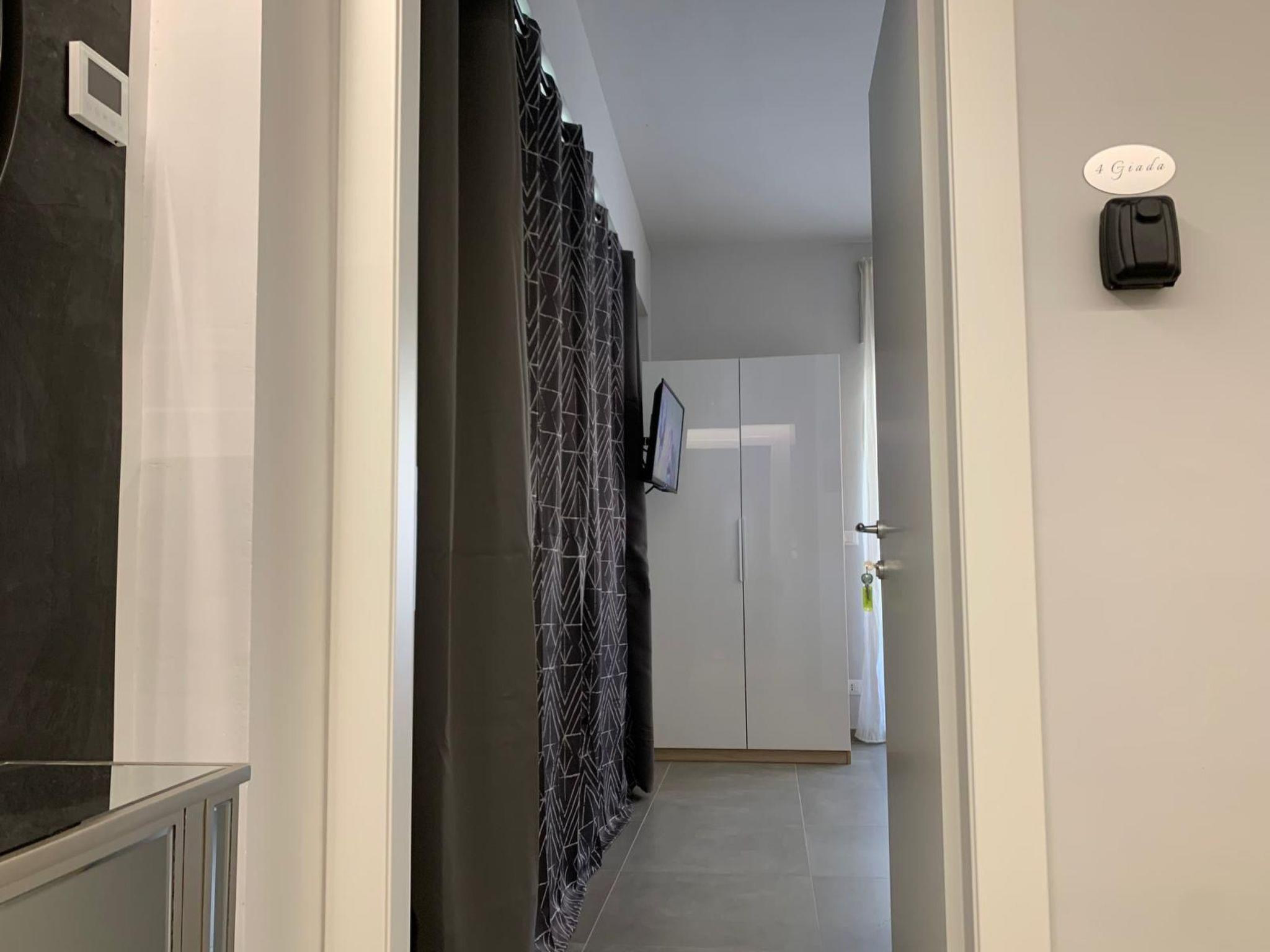 The interior of Residence Armonia features modern accommodation that perfectly combines elegance and functionality. The accommodation, decorated with wood and aluminium essentials, is equipped with every comfort: a dining area, a practical kitchenette with induction hob, microwave oven, refrigerator with freezer, coffee pod machine, kettle, utensils, as well as a furnished balcony. A double room with wardrobe, bedside tables, flat-screen TV, desk, a private bathroom, bed linen and towels complete the offer, ensuring maximum comfort with underfloor heating, air conditioning and free WiFi.