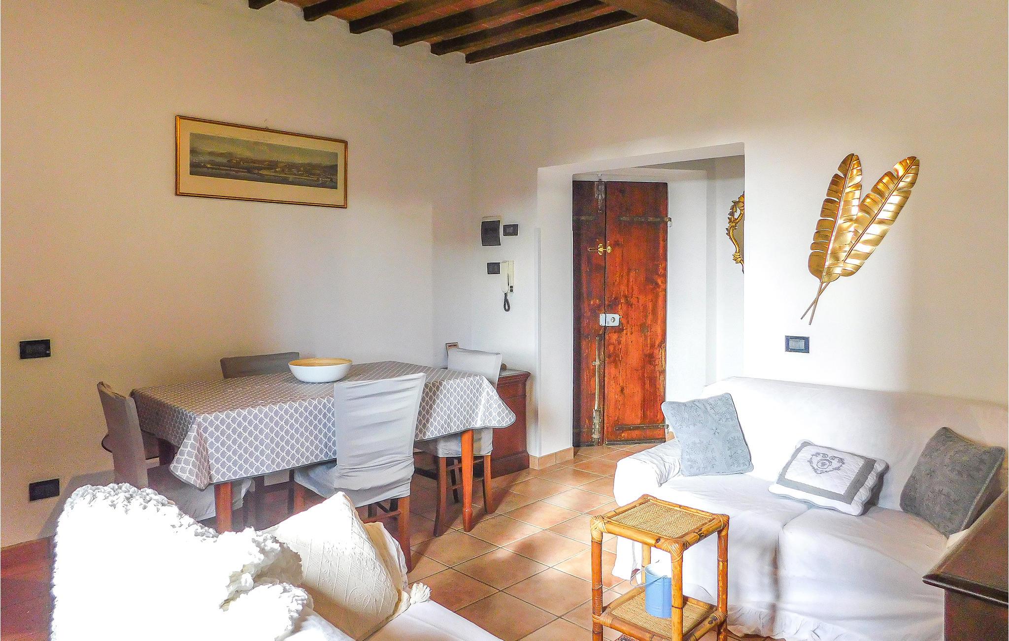 I de gamle gyder og stenhuse føler man sig nogle gange som om, man er blevet transporteret til en anden tid. Det gamle Aldobrandesca-slot i landsbyen bidrager også til den historiske atmosfære. Fra balkonen på anden sal kan I se ud over byens tage med de grønne bakker i baggrunden og falde ind i en unik stemning. I vil føle jer hjemme i lejlighedens hyggelige, autentiske indretning.