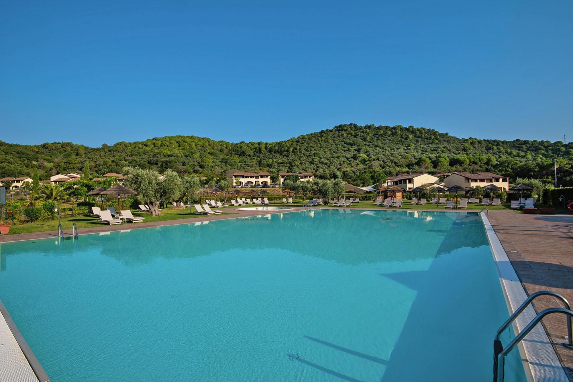 I udkanten af skoven og på kanten af en bakke: lejligheder i rækkehuse i to etager, omgivet af rummelige, velplejede haver. En fantastisk stor fælles pool er også en del af komplekset. De rummelige lejligheder er komfortabelt indrettet i toscansk stil, på balkonen eller terrassen kan du spise udenfor. Poolområdet med separat børnepool er omgivet af græsplæner, liggestole og parasoller - bare perfekt til afslapning! For sportsentusiaster er der en tennisbane (mod betaling), en volleyballbane og et fitnessrum. En poolbar og restaurant (åben fra midten af maj til slutningen af september) med terrasse giver forfriskninger og god mad. Et ideelt udgangspunkt for en badeferie og for at udforske de smukke omgivelser. Suvereto ligger på en bakke nord for dalen af floden Cornia, mindre end 15 kilometer fra havet. Oplev den velbevarede middelalderlige gamle bydel, over hvilken resterne af et middelalderborgkompleks hæver sig. Detaljer: Forbrugsbaserede energiomkostninger, sengelinned, håndklæder, slutrengøring Aktiviteter i nærheden: Besøg Campiglia Marittima, stedet med sin velbevarede middelalderby tiltrækker mange besøgende. Grundet den gode beliggenhed på en lille bakke, har du en fantastisk udsigt over Middelhavet. Prøv også de friske produkter fra Toscana - de mange gårde i de omkringliggende landsbyer giver regionen lækre specialiteter og rigtig god olivenolie fra vores egen produktion Mobilitet: Nogle huse er velegnede til bevægelseshæmmede efter anmodning