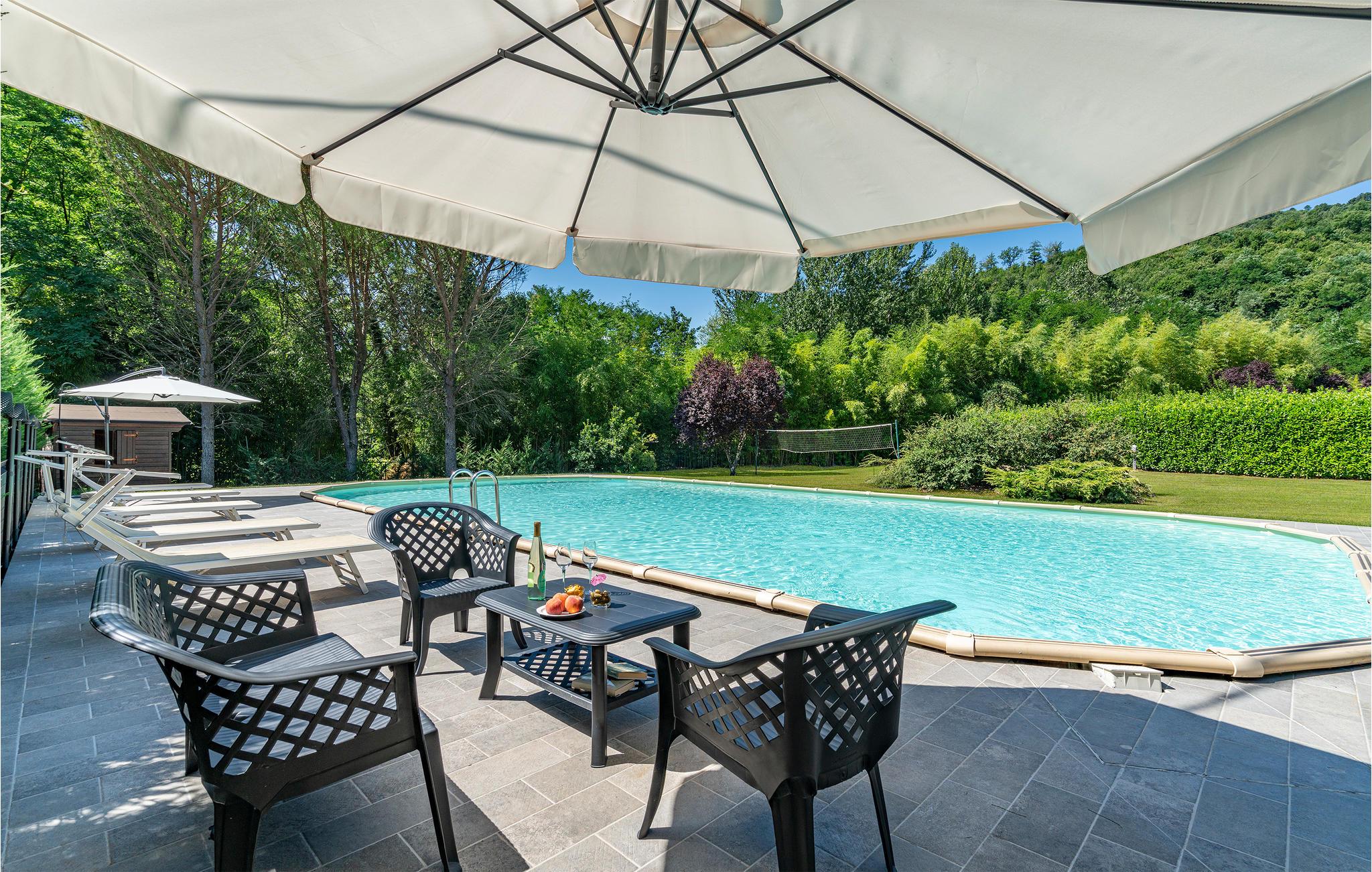 I nærheden af Talla (1,5 km) venter dette feriehus i en romantisk sidedal af Casentino. Den store stue med åben pejs og tilstødende kogehjørne ligger på første sal, og i stuen ligger soveværelserne med badeværelse (dobbeltsoveværelse med bruser). Indretningen er i rustik stil. Især børn kan glæde sig til husets særlige fordele. På den store, private grund er der en privat pool med solrig plæne, forskellige siddepladser, volleyballbane, bordtennis og masser af plads til sjov og leg. Igennem en port kommer I til møllebækken, der er en ren eventyrlegeplads i naturen. Ejeren bor i møllehuset på nabogrunden, hvor også feriehuset ITA894 ligger. Udflugtsmål i nærheden er borgene og bebyggelserne af Casentino, og I kann tage på vandringer igennem Casentino-naturparken og til Pratomagno (1.600 m). Arezzo 25 km, Firenze 80 km, Talla med butikker, ristorante, bar 1,5 km.
