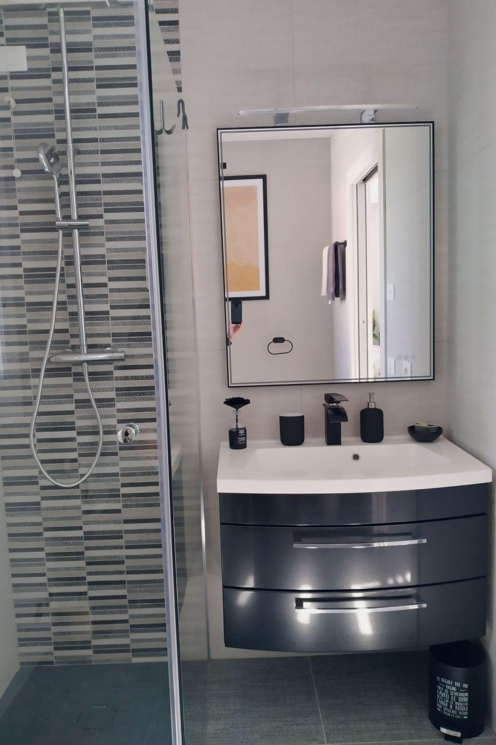 Internally, LVI Retreat is spread over two floors with a total of 66 m², plus a 19 m² balcony and a spacious 45 m² panoramic terrace. On the second floor, guests will find a fully equipped kitchen with a refrigerator, freezer, oven, induction hob, microwave, coffee machine, dishwasher and a table with four chairs. The cosy and well-appointed living room is furnished with a two-seater sofa, an armchair, a coffee table and a TV, perfect for relaxing moments. Sliding doors in the living room lead to the balcony, which offers a beautiful view of the valley and is furnished with a bistro table and chairs.