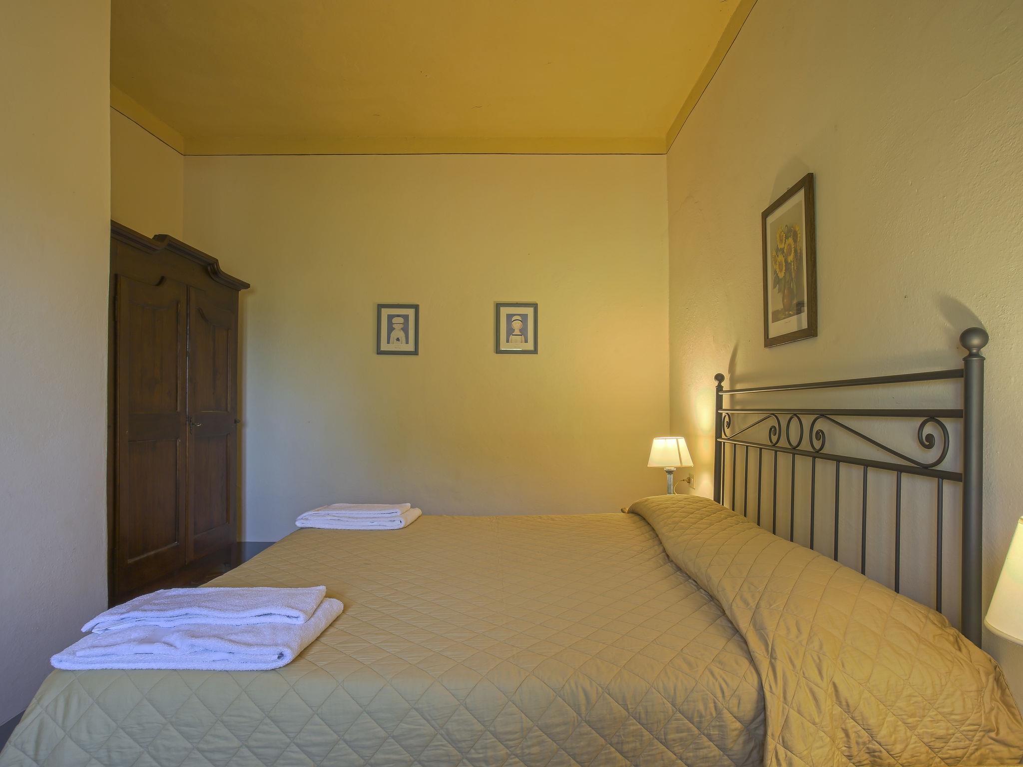 Agriturismo on a vinyard "Campiglia", surrounded by fields and vineyards. 6 apartments in the property. 2 km from the centre of Tavarnelle, 30 km from the centre of Firenze, 40 km from the centre of Siena, in a sunny, elevated position, 90 km from the sea, 90 km from the beach, in the countryside. For shared use: property 20 ha, well-kept garden (not fenced) with lawn and trees, lawn for sunbathing 1'000 m2, swimming pool fenced (15 x 7 m, depth 110 - 140 cm, seasonal availability: 25.Apr. - 31.Oct.). Outdoor shower, patio, garden furniture, barbecue, pool maintenance by the owner/gardener. In the house: washing machine (for shared use). 300 m long motor access (via unmade road). Parking on the premises. Shop 1 km, grocery 1 km, supermarket 1 km, restaurant 1 km, bar 1 km, bakery 1 km, 20 minute walk to the centre, bus stop 2 km, railway station "Barberino Zambra" 10 km, sandy beach "Cecina Mare" 90 km. Golf course (9 hole) 20 km, tennis 1 km, fishing possibilities 5 km. Nearby attractions: San Gimignano 22 km, Certaldo 15 km, Volterra 52 km, Montalcino 85 km. Please note: suitable for families, baby equipment (included). Groups of teenagers on request only. Local sale of farm products. The owner lives on the same property. All houses/apartments are individually designed/furnished.