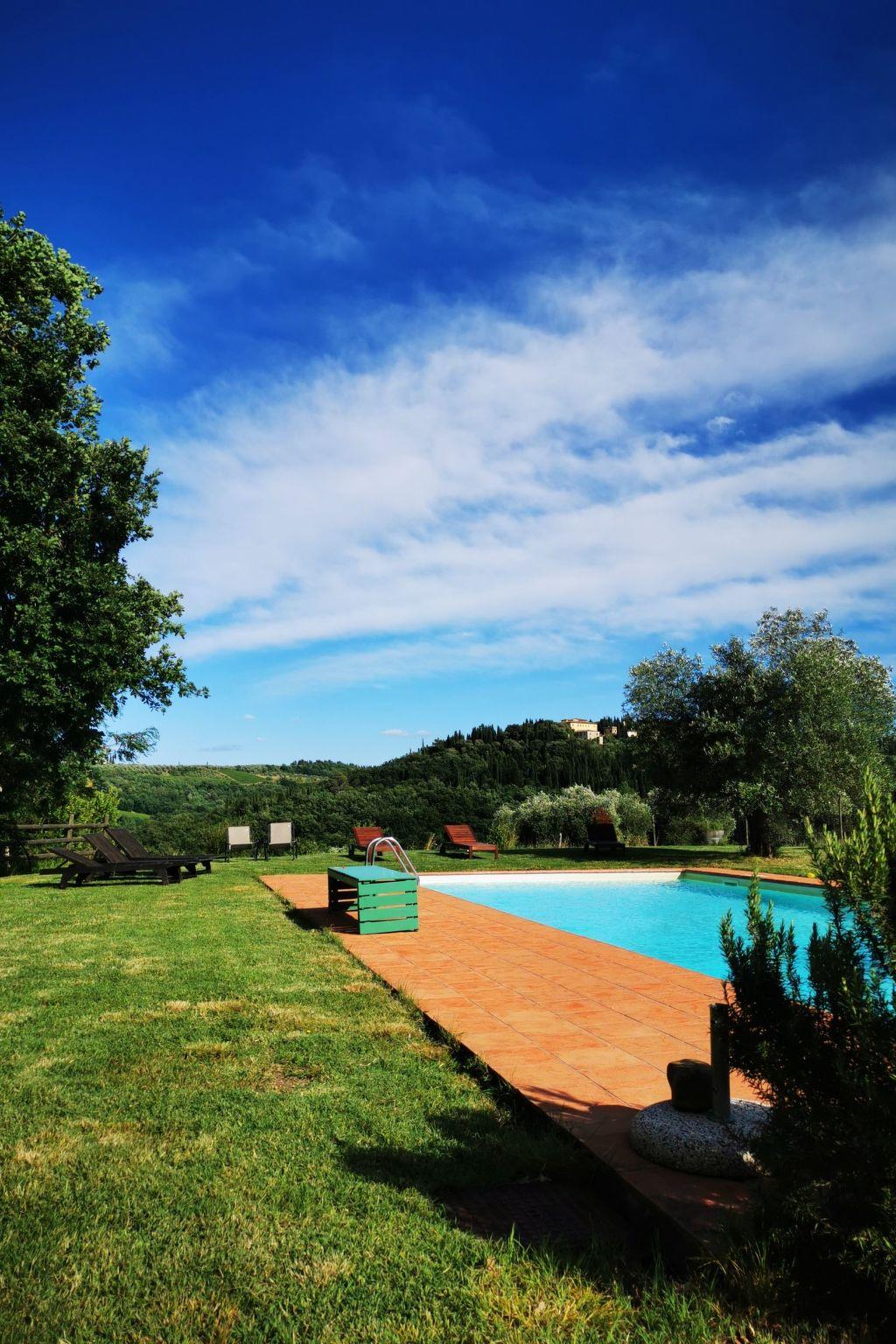 Fallocchio is a spacious house divided into five large apartments with one or two bedrooms, kitchenette, living room, bathroom with bath and shower. In the restoration of the house, the beamed ceilings and large rooms have been preserved. On the ground floor there is a large and well-equipped kitchen with fireplace available for communal use. The house is surrounded by a garden with a covered patio and barbeque and views across the surrounding valleys.ERTA and FALLOCCHIO share a swimming pool with panoramic views.