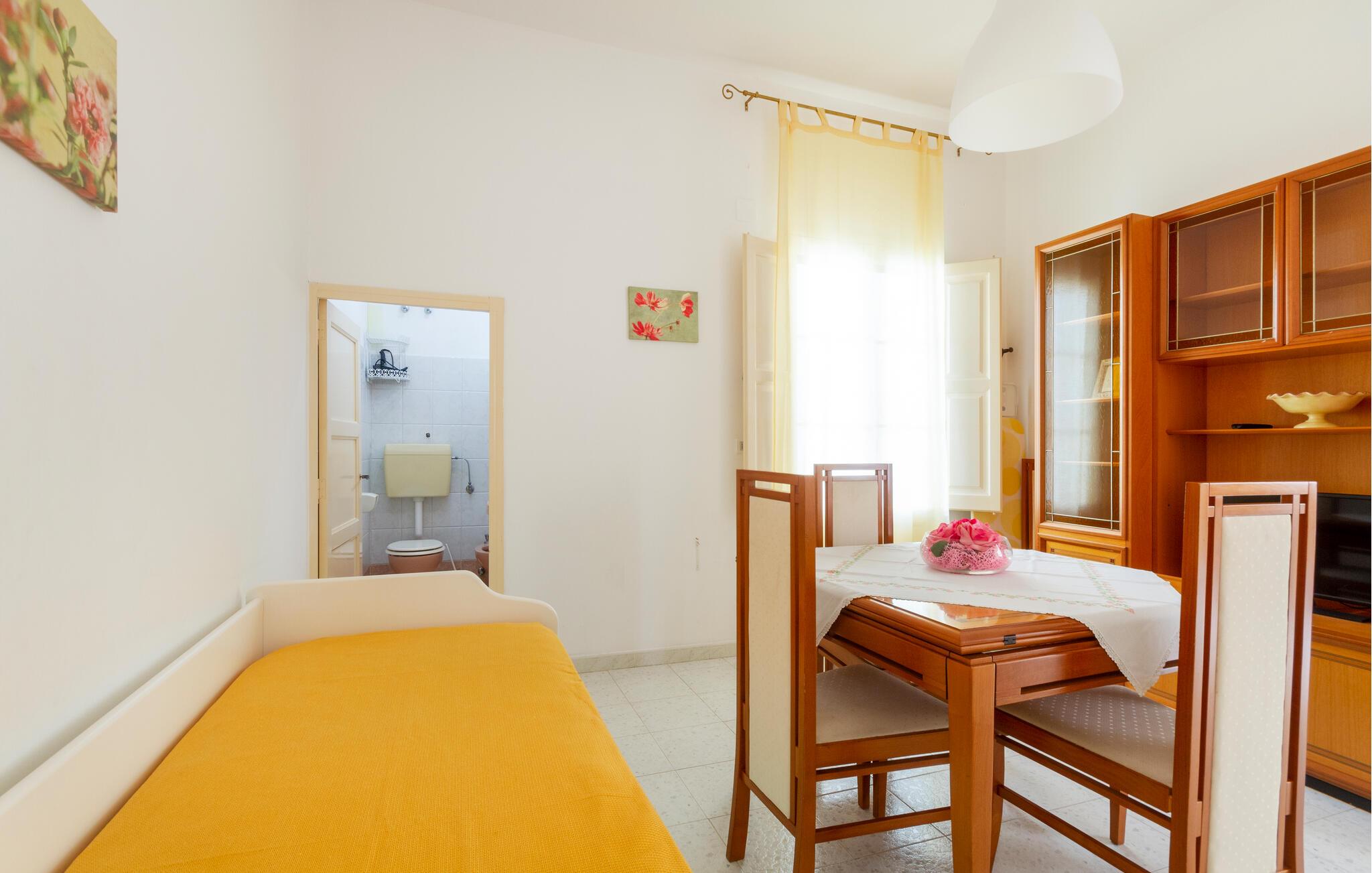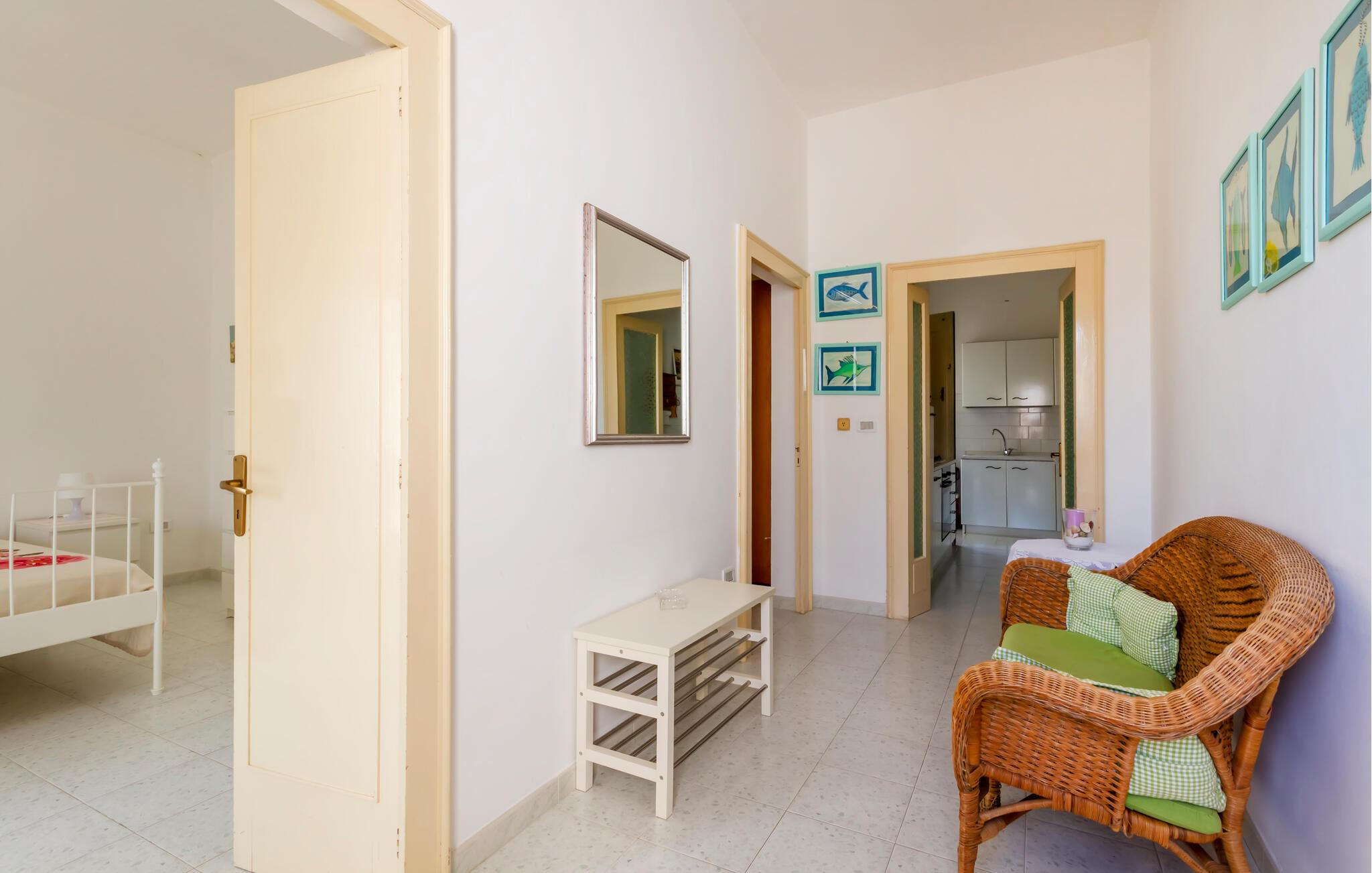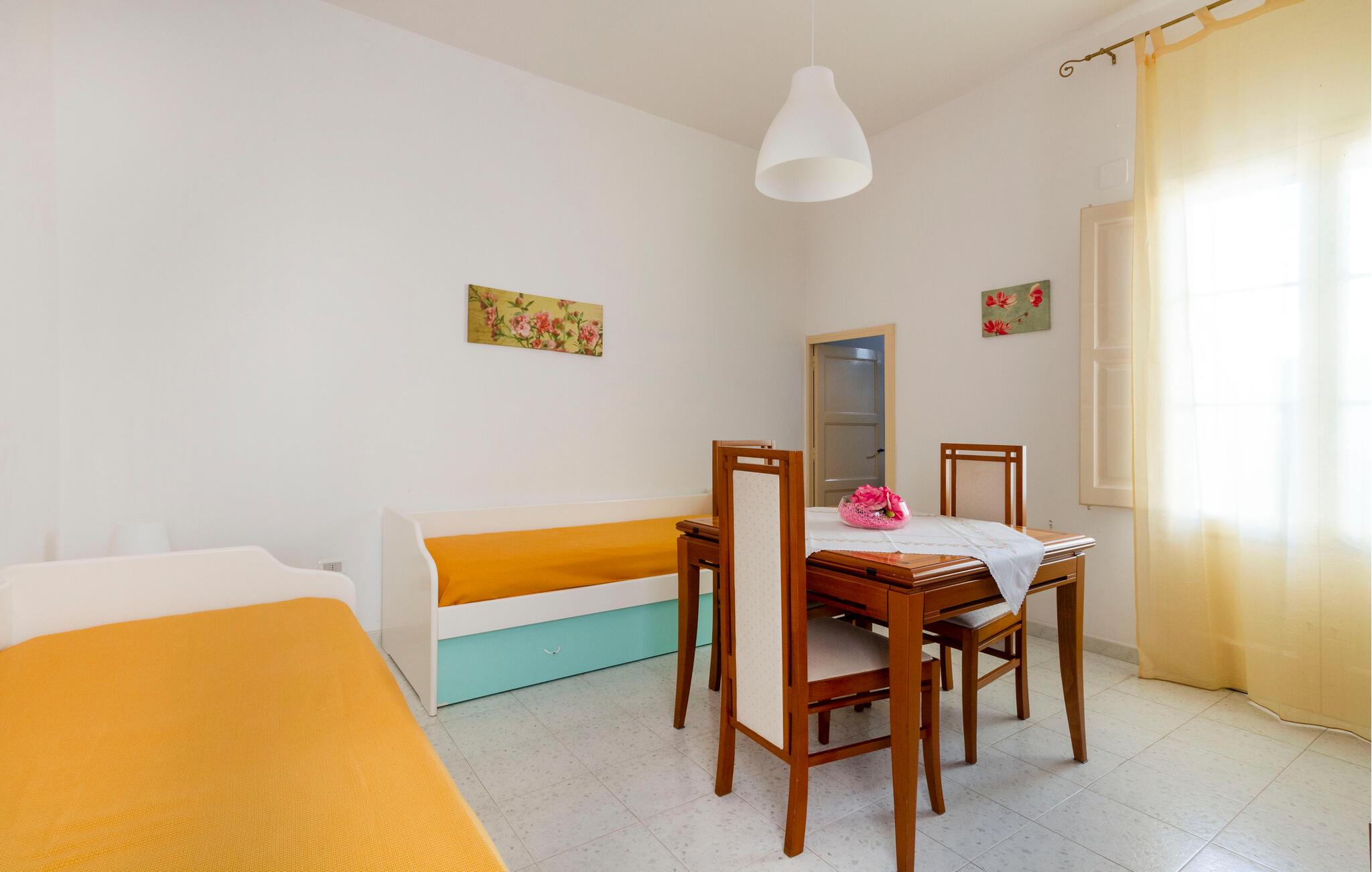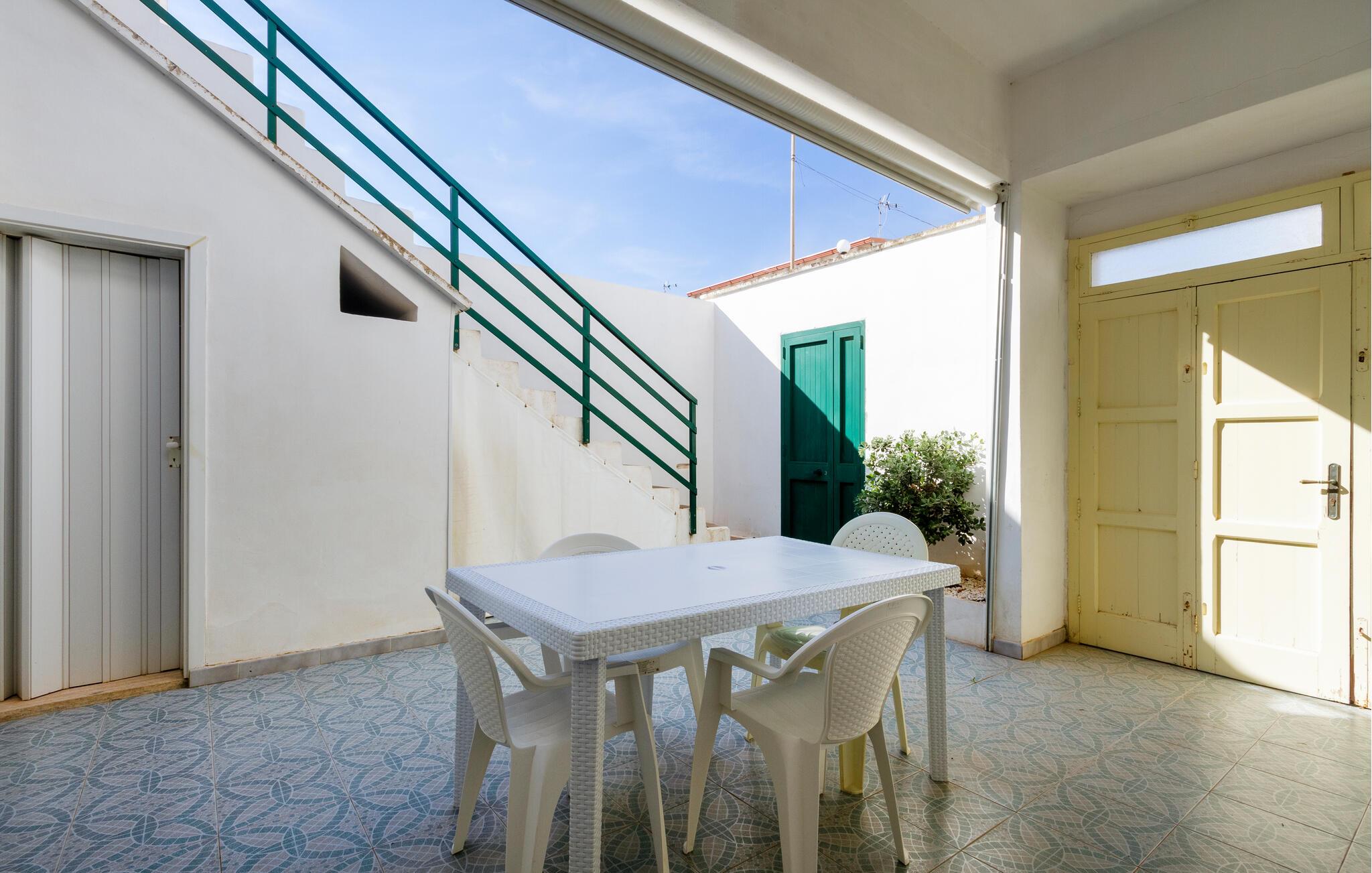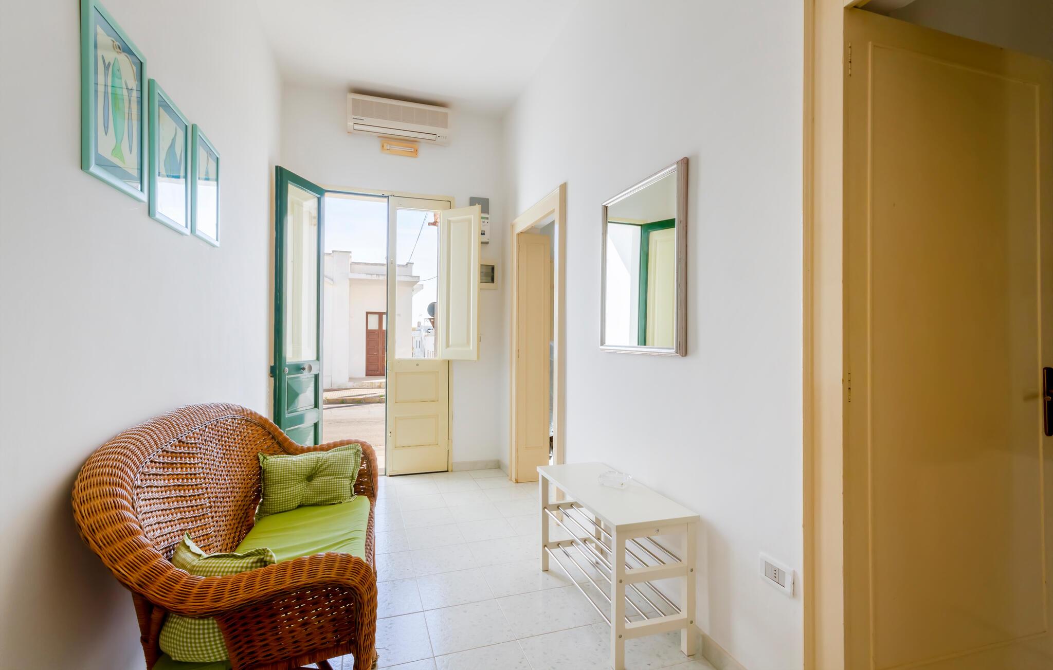 I bor i et dejligt område i Taviano, der bare venter på at blive opdaget. Stranden er kun få minutters gang væk, så fyld dagene op med friske dukkerter og gåture langs vandet. Spadsér gennem de charmerende gader i byen, bestil bord på en restaurant og nyd den rolige atmosfære, der hersker her.