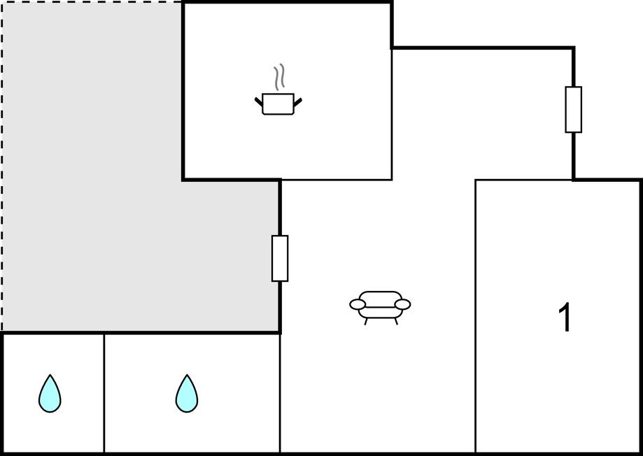 Tekøkken - 1 Soveplads. (Sofa, madras eller lignende).