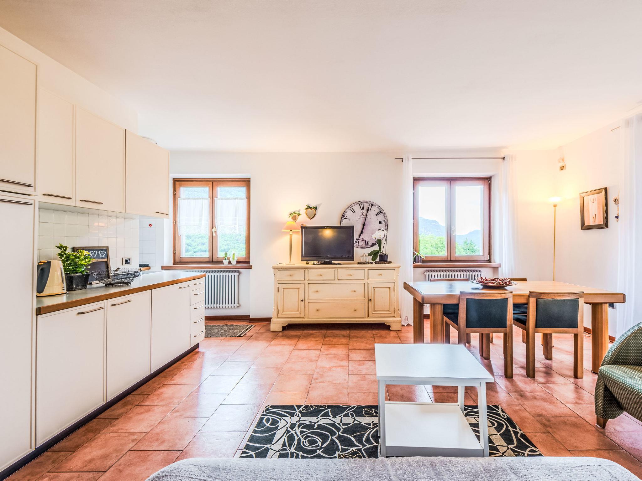 Villa Banale 2 km from Comano Terme: Cosy, rustic house terraced. 2 apartments in the property. In the centre of Villa Banale, 2 km from the centre of Comano Terme, excellent location: right in the centre but still quiet, in a cul-de-sac, in the countryside. In the house: storage room for bicycles, storage room for skis. Linen change weekly (suppl. charge extra). Towel change weekly (suppl. charge extra). Room cleaning weekly on request (extra). Parking (for 2 cars) at the house. Grocery, supermarket, restaurant 100 m, bar 200 m, 1 minute walk to the centre, bus stop 100 m, thermal baths "Comano Terme" 2 km. Tennis 8 km, slopes 14 km, ski bus stop 100 m, cross country ski track 5 km, ice rink 5 km, children's playground 1 km. Well-known ski regions can easily be reached: Bolbenolandia 14 km, Pinzolo - Madonna di Campiglio 23 km, Andalo 26 km. Well-known lakes can easily be reached: Lago di Molveno 21 km, Lago di Garda 25 km. Please note: the owner lives in the same residence.