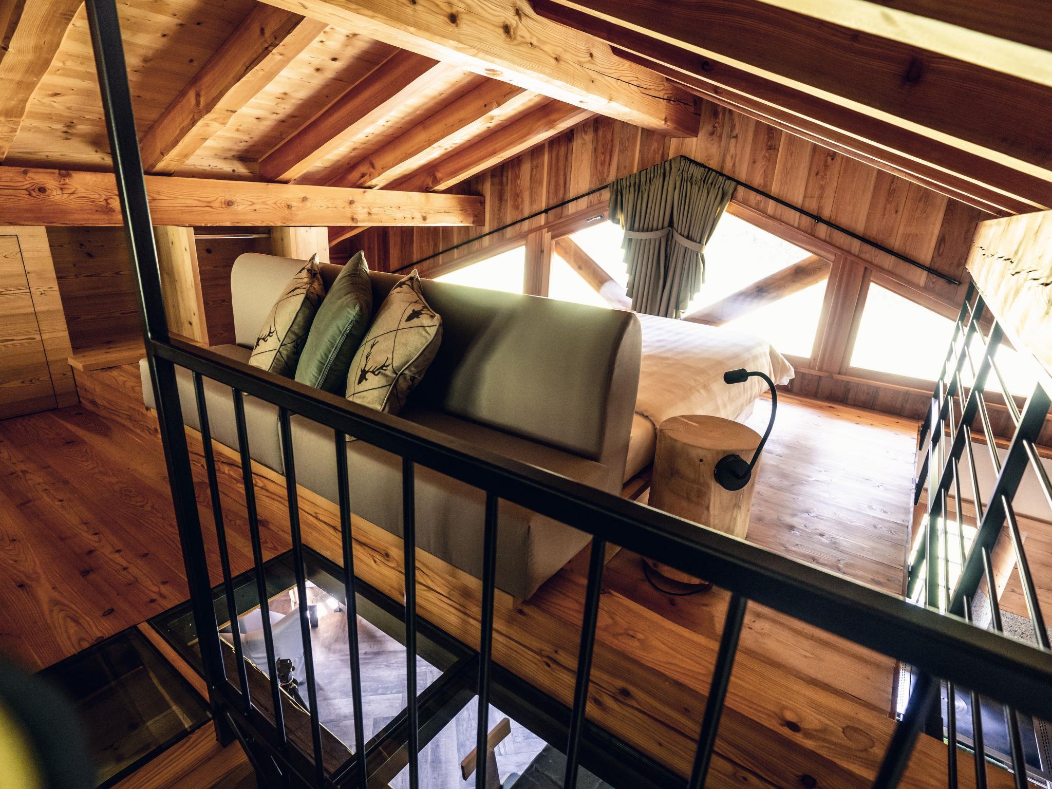 3-room chalet 74 m2. Spacious and bright, partly with sloping ceilings, modern and wooden furniture furnishings: living/dining room with dining table and satellite TV (flat screen), wood-burning stove. Exit to the garden. 1 double bedroom. Kitchenette (oven, 4 gas rings, toaster, kettle) with wood-burning stove. Shower/bidet/WC. Wood heating. Upper floor: open large gallery with sloping ceilings with 1 french bed (140 cm), 1 double bed (220 cm). Parquet floors. Very beautiful panoramic view of the mountains, the valley, the garden, the forest and Dolomiti di Brenta. Facilities: hair dryer, logs (free). Please note: suitable for families. Non-smokers only. Maximum 1 pet/ dog allowed. Private entrance, fire extinguisher. IT022228C24YGAOYCC